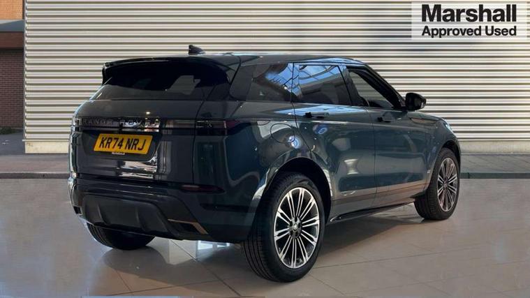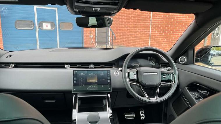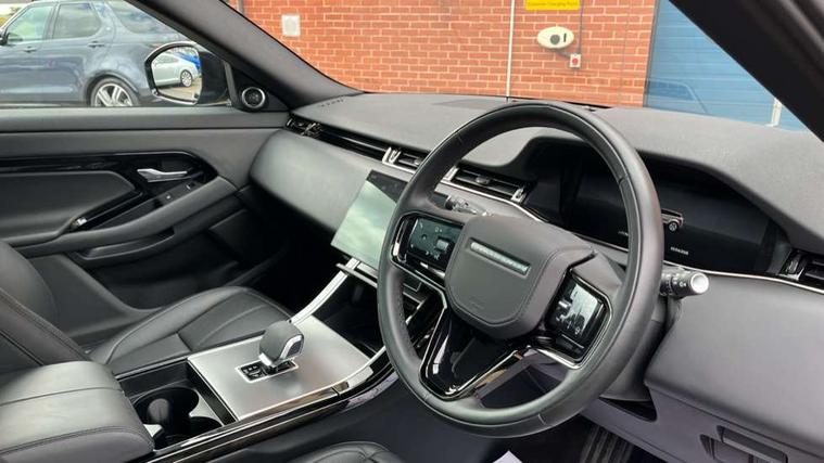 11.4" touch screen, Adaptive cruise control, Android Auto, Apple car play, Blind spot assist, Bluetooth connectivity, Brake pad wear indicator warning light, Driver condition monitor, eCall emergency system, Eco mode, Electronic power assisted steering (EPAS), Front and rear parking aid, InControl remote, Interactive driver display, Land Rover InControl apps, Lane keep assist, Pivi pro connected includes diamond pivi variant, smart settings, connected navigation pro, nuance speech licence, Powered tailgate/boot lid, Rear collision monitor, Rear traffic monitor, Traffic sign recognition with adaptive speed limiter, Voice control system, Wireless device charging, All terrain progress control, Diesel exhaust fluid (DEF) large tank, Efficient Driveline, Large fuel tank, Passive suspension, Terrain Response 2, Digital Audio Broadcast radio-DAB, Steering wheel mounted controls, Acoustic laminated windscreen, Auto headlights, Automatic headlight levelling, Electric windows with one touch open/close and anti trap, Flush deployable exterior door handles, Front and rear recovery eyes, Heated rear window with timer, Heated washer jets, Heated windscreen, Pixel LED headlights with signature DRL and LED tail Lights, Power fold, auto-dimming, heated door mirrors with approach lights and auto dimming driver side, Rain sensing windscreen wipers, Rear animated directional indicators, Rear fog lights, Rear side wing doors, Rear wiper, Side repeater indicators in mirror, Tailgate spoiler, Third brake light, Winter wiper park position, 14 way driver memory electric front seats with 2 way manual headrests + 4 way lumbar support, bolsters, 40:20:40 split folding rear seats with centre headrest and armrest, Ambient interior lighting, Bright metal pedals, Carpet mats, Chrome tread plates with range rover branding Includes stainless steel loadspace scuff plate with etched graphic, Customer configurable single point entry, Electrically adjustable steering column with memory function and easy entry/exit, Front and rear cupholders, Heated steering wheel, Isofix system on outer rear seats, Overhead lighting console, Overhead stowage for sunglasses, Passive front head restraints, Rear air vents, Rear head restraints, Satin chrome gearshift paddles, Single passenger seat, Sunvisors with illuminated vanity mirrors, Twin sliding front centre armrest, Online pack with data plan - Evoque, Power socket pack 2 - Evoque, 3 rear 3 point seatbelts, Anti-lock braking system (ABS), Brake hold function, Customer configurable autolock, DSC - Dynamic Stability Control, Electronic brake force distribution, Electronic parking brake, Electronic traction control, Emergency braking, Front and rear seatbelt reminder, Hill descent control, Hill launch assist, Low traction launch, Occupant protection assist, Passenger seat occupant detector, Power operated child locks, Roll stability control, Six airbags - Driver and passenger airbags/driver knee airbag/front side airbag and curtain airbags, Torque vectoring brake, Tyre pressure monitoring system, Alarm, Immobiliser, Intrusion sensor, Keyless entry, Locking wheel nuts,