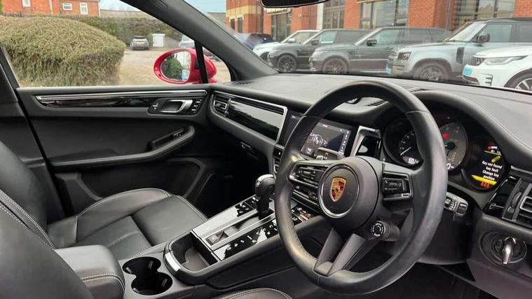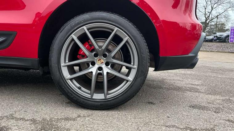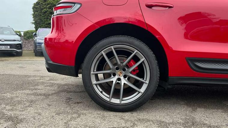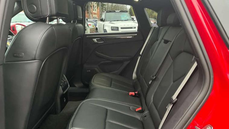 Analogue clock on dashboard, Automatic start/stop system, Automatic tailgate, Digital boost pressure gauge on colour display of instrument cluster, eCall emergency call system, Instrument cluster with high resolution 4.8-inch TFT display, gear indicator for PDK, service interval display, external temperature indicator, fuel gauge, Off-road button, On board computer, Porsche Communication Management (PCM) including online navigation module, mobile phone preparation, audio interfaces and voice control system, Sports button in centre console, 7-Speed Porsche Doppelkupplung (PDK) with automatic mode and manual controls (gearshift paddles) on steering wheel, Direct fuel injection (DFI), Gasoline particulate filter, Steel spring suspension, VarioCam Plus variable valve timing and switchable valve lift, 2 USB sockets in rear centre console, Apple CarPlay with Siri voice recognition, Connect Plus including online navigation, LTE communication module with SIM card reader, wireless internet access, Porsche Car Connect services, DAB Digital radio, Porsche Vehicle Traking System Plus (PVTS Plus), Two USB C charging and connectivity ports in the front centre console storage compartment, Active radiator grille shutters, Automatic headlight activation including welcome home lighting, Bumper system with high strength cross members and two deformation elements + One threaded fixture point for towing eye contained in onboard tool kit, Dynamic cornering lights, speed-sensitive headlight and dynamic range control, adverse weather function, four-point LED daytime running lights, Electric front and rear windows with remote closing function + anti trap + one touch, Electrically folding and heated exterior mirrors, Front light modules with LED position lights and direction indicators, Front windscreen wipers with two speeds, intermittent wipe and rain sensor, Front with integrated cooling air intakes, Fully galvanised body, Heated rear window with automatic switch off, High level 3rd LED brake light integrated into roof spoiler, Loading edge protection in aluminium, Rear side wing doors, Rear window wiper with intermittent function and washer jet, Roof spoiler in high gloss black, Towbar preparation, 3 adjustable rear headrests, 3 rear seats, 4 way adjustable front head restraints, 40:20:40 split folding rear bench seat, Cloth hook b-pillar, Fold up centre console armrest with fore/aft adjustment, Front and rear bottle holders in door panels, Front passenger seat, Glove compartment, Isofix fastening system for child seats on outer rear seats, Luggage compartment cover, Particle/pollen filter with active carbon filter, Rear armrest with 2 cupholders, Storage bin in centre console, Storage compartment in side of luggage compartment and storage compartment in spare wheel recess, Storage pocket in front and rear doors, Two integrated cup holders in front with variable diameter, Two socket 12V power outlets in front console and luggage compartment, Uncovered storage compartment in centre console, Ambient comfort lighting pack - Macan, Lower exterior trim package in black - Macan, 3-point automatic seatbelts with front and outer rear seats pretensioners and force limiter + manually height adjustable seatbelt + reminder warning, 6-piston aluminium monobloc fixed caliper brakes at front, internally vented brake discs, Auto hold function, Brake discs with 360 mm diameter at front and 330 mm at rear, Child locks on rear doors, Curtain airbags along entire roof frame and side windows from A pillar to the C pillar, Electronic parking brake, Front passenger airbag deactivation facility for installation of child seats indicator in overhead console, Front side airbags integrated into seat, Full size driver and passenger airbags, Multi-Collision braking, Porsche hill control (PHC), PTM(Porsche Traction Management) and All-wheel drive with map-controlled multi-plate clutch, Roll over sensor for curtain airbag and seatbelt pretensioners, Side impact protection in doors, Tyre pressure monitoring system, Vehicle stability system, Porsche stability management (PSM) including ABS, ASR, ABD, MSR and trailer stability management, Vented discs brake with combination floating calipers at rear, Alarm system with ultrasonic interior surveillance, Engine immobiliser with key transponder, Remote control central locking, Accent trims with silver coloured finish,