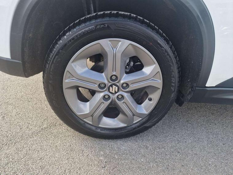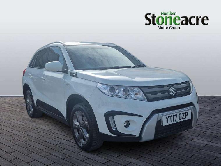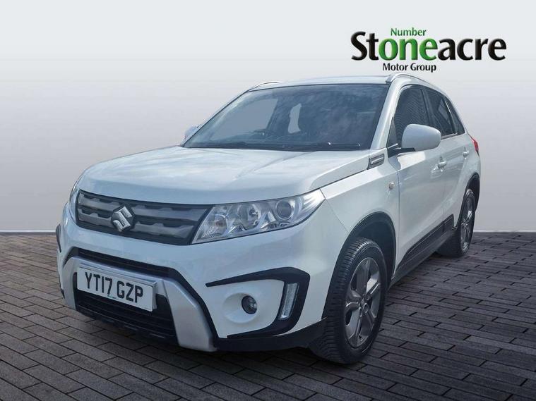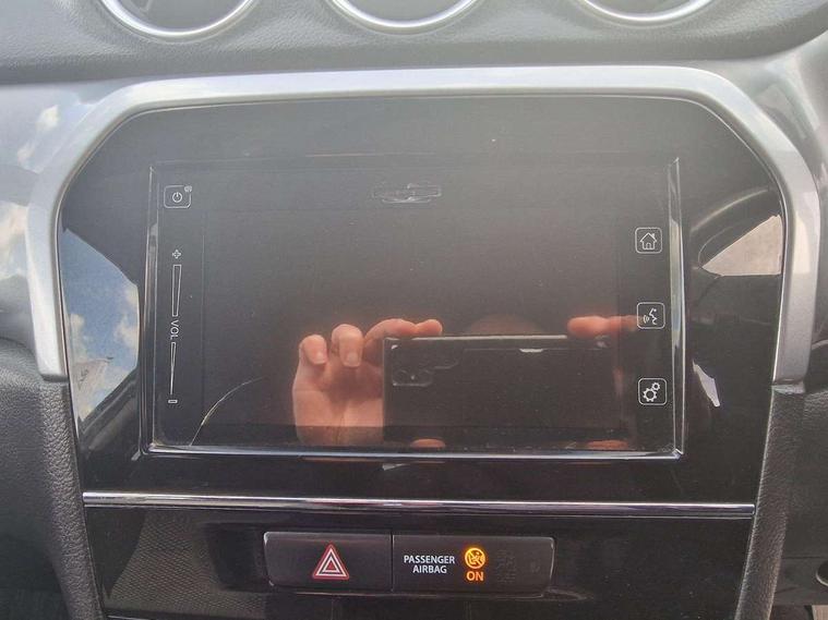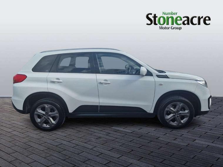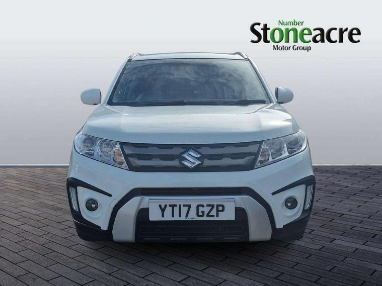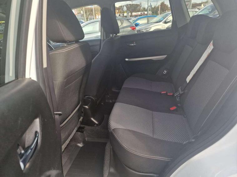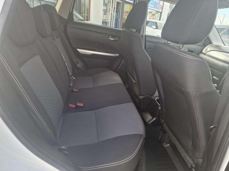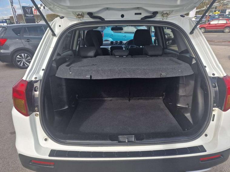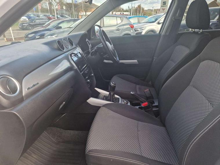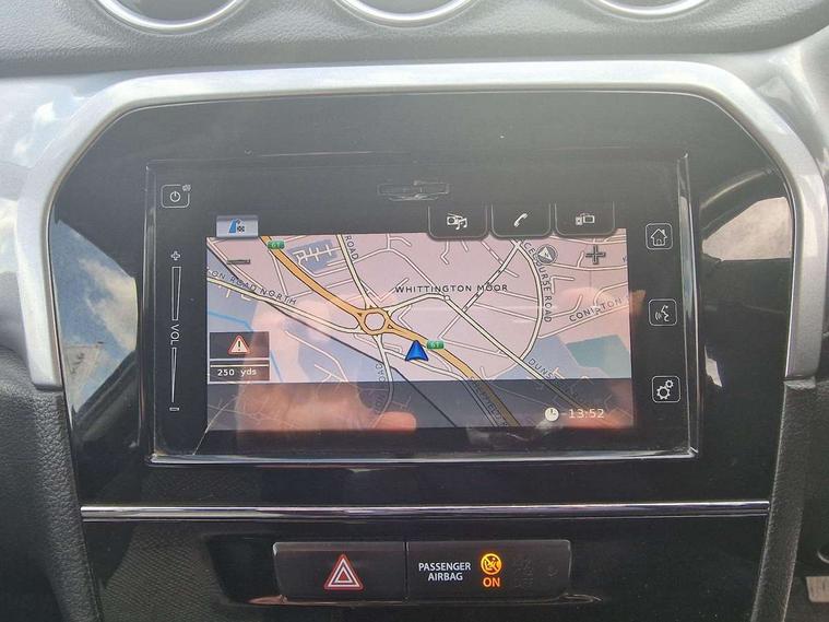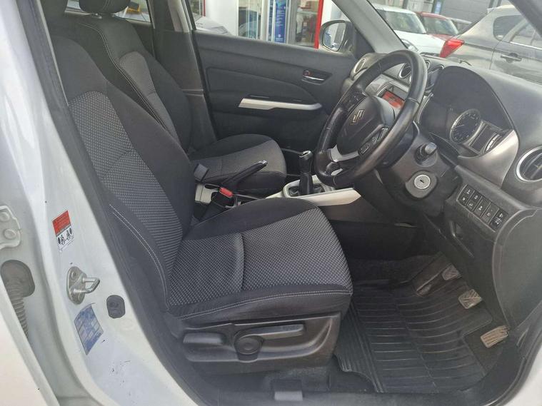 Bluetooth hands free telephone connection, Cruise control + speed limiter, Information display, Lights on warning, PAS, Rear parking camera, Satellite navigation system, Service indicator, 4 speakers, DAB Digital radio, Steering wheel mounted audio controls, USB connection, Body colour door mirrors and handles, Body coloured bumpers, Electric adjustable heated door mirrors, Electric front+rear windows, Front and rear intermittent wipers, Front fog lamps, Front skid plate - silver, Headlamp levelling, LED daytime running lights, Rear privacy glass, Rear skid plate - silver, Silver roof rails, Wheel arch extensions, 12V socket in centre console and luggage area, 3 rear headrests, 3 spoke leather covered steering wheel, 60/40 split folding rear seat, Automatic air conditioning, Centre console storage, Child seat tether anchorage points x3, Chrome interior door handles, Cloth upholstery, Driver/front passenger seat height adjustment, Driver/passenger sunvisors with ticket holders + illuminated vanity mirrors, Front and rear bottle holders, Front cupholders x 2, Front footwell lights, Front headrests, Front map light, Front/rear assist grips, Glovebox light, Isofix child seat preparation, Luggage area lamp, Luggage cover, Luggage hooks, Passenger seat back pocket, Pollen filter, Removable boot floor, Tilt/telescopic adjustable steering wheel, Top tether anchor plate for isofix child seat, Rugged pack - Vitara, 3 point ELR front seat belts, 3 point rear seatbelts, ABS+EBD+Brake assist, Childproof rear door locks, Curtain airbags, Driver/Front Passenger airbags, Drivers knee airbag, ESP, Front and rear seatbelt reminder, Front passenger airbag deactivation, Front seatbelt pretensioners with force limiters, Height adjustable front seatbelts, Hill descent control, Hill hold control, Side airbags, Tyre pressure monitor, Alarm, Deadlocks, Immobiliser, Light - on and Key in reminder, Locking wheel nuts, Remote central door locking, 17" Silver alloy wheels, Tyre repair kit,