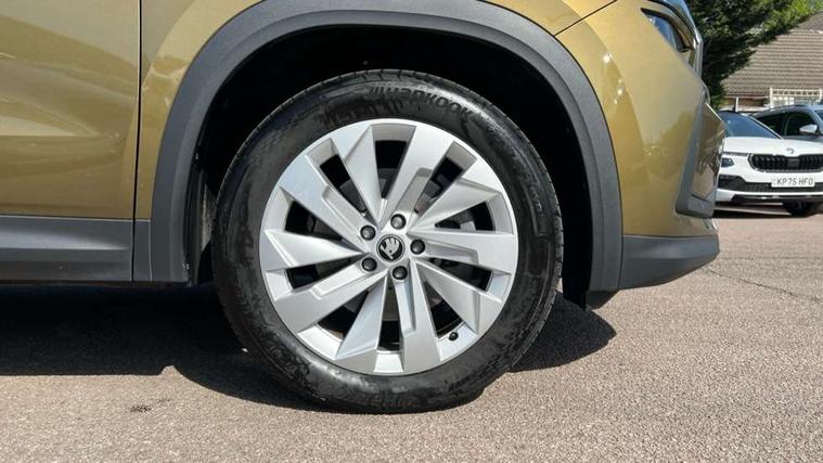 13" satellite navigation touchscreen display, Blind spot detection with door exit warning, Bluetooth system, ChatGPT functionality, Driver alert - Fatigue and drowsiness monitor, Dry display cleaner, Emergency call, Front and rear parking sensors, Front cross traffic assist, Lane assist, PAS, Rear traffic assist, Tailgate unlocking from outside, Traffic sign recognition, USB C Port x 2 in front centre console, Virtual Cockpit - 10.25" digital display, Voice control system, Wireless charging for two smartphones (15W) with cooling function, Wireless SmartLink for Apple CarPlay and Android Auto, Stop/start function, 2x USB-C in the rear, DAB Digital radio, Aero front windscreen wipers with intermittent function, Auto dimming rear view mirror, AWL (all weather lighting) and all weather light with cornering function, Black wheel arch surrounds, Body colour bumpers, Body colour door mirrors and handles, Cornering light and poor weather light, Electric folding /adjustable/separted heated/folding door mirrors, auto dimming with boarding sports and memory function, Electric front and rear windows, Exterior black decorative trims, Heat insulating glass in windshield, Heated rear window, Ice scraper in fuel tank cap, Invisible tailpipe, LED daytime running lights, LED third brake light in rear spoiler, Light assistant with automatic headlight control and coming home feature, Logo projection in door mirrors, Privacy glass, Rear roof spoiler, Rear side wing doors, Rear window wiper, Red decorative strip between rear LED lights, Safety reflectors on front and rear doors, Unique dark chrome design logo on alloy wheels, Window control switches with black trim, Windscreen wipers with rain sensor, Without engine designation, 1.5l bottle holder points in all door, 1x centre rear reading light, 2 seat bench in 3rd row, 3 configurable smart dials with 32mm coloured display, 3 seat bench in 2nd row, 4 foldable roof handles with rear coat hooks, Ambient interior lighting - Dashboard, front-door stowage compartments, front and rear door panels and footwell lighting, Automatic gear selector on steering column, Chrome interior door handles, Driver/front passenger reading lights, Fabric headlining, Fixed bench 40:60:40 split folding backrests, Front and rear floor mats, Front centre armrest with jumbo box storage compartment, cup holder and 12V socket, Height adjustable front headrests, Isofix child seat fittings in outer middle row rear seats and front passenger with top tether, Manually adjustable steering column, Pollen filter, Rear centre armrest with cupholders, Rear seat boot backrest release, Single front passenger seat, Skoda lettering on steering wheel, Storage pocket including mobile phone pockets on the backs of the front seats, Sunvisors with illuminated vanity mirrors, Three rear height adjustable headrests, Ticket holder on A Pillar, Tri zone climate control, Umbrella in door panel x1 made from sustainable materials, Upper and lower glovebox with card holder and coin compartment, USB C port by rear view mirror for charging only (15W), Exterior styling pack - Kodiaq, Auto door release and activation of warning lights in the event of an accident, Driver and front passenger airbag with knee airbag and front passenger airbag deactivation, Electric child locks, Electronic parking brake, ESC (incl. ABS+EMD+MSR+ASR+EDL+HBA+DSR+RBS+ESBS+MCB+TSA+XDS), Front assist with braking reaction to vehicles, pedestrians and cyclists, Front disc brakes, Fuel cut off safety device, Height adjustable front 3 point seatbelts + pretensioners, Hill hold assist, Junction assist with automatic emergency braking, Rear disc brakes, Safety vest holder in door, Seat belt reminder for all seats, Three point rear seat belts, Two tone horn, Tyre pressure monitor, Anti-theft wheel bolts, Immobiliser, Remote central locking with 2 keys,