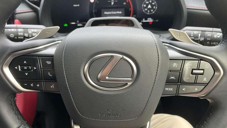 12.3" Digital instrument binnacle, Active Noise Control, Bluetooth connectivity, Cloud navigation, Digital speedometer with high-definition, e-Call (emergency call), Electric power steering, Emergency driving stop system, EV mode, Extended Lexus safety system+ 3 includes blind spot monitor, safe exit assist, camera washer and rear cross traffic alert, Front and rear parking sensors with intelligent clearance sensor, Front and rear smart entry, Lane change flasher function, Lexus link connected services, Lexus safety systems+ 3 includes dynamic radar cruise control, pre collision system day and night, lane tracing assist, road sign assist, Multi info display, Pre-collision system with driver monitor, Push button start, Rear pedestrian detection, Rear view camera, Tachometer/Hybrid system indicator, Tailgate electric lift and close, Tailgate height memory function, Trip meter, Wireless Apple CarPlay and wired Android Auto, Wireless Smartphone charger, Predictive efficient drive, Vehicle dynamic integrated management (VDIM), Vehicle Stability Control (VSC), 1 USB (Type-C) charging ports in bottom of the instrument panel, 1 USB (Type-C) multimedia communication ports in bottom of the instrument panel, 1 USB (Type-C) ports inside front console box, 2 USB (Type-C) ports for charging in rear, 6 speaker audio system, AM/FM and DAB radio, Lexus Link Connect with 9.8" Touchscreen, Rear side monitor, Steering wheel mounted controls, Acoustic glass windscreen, Active brake lights, Auto dimming interior rear view mirror, Auto headlights, Automatic rear flashing hazard lights, Black film door belt moulding, Black outer mirror cover with black ornament, Black resin rocker panel, Black stainless steel moulding side windows frame, Black wheel arches, Chrome plated rear badge LBX, Electric adjustable/heated/auto folding door mirrors, Front and rear electric windows, Full body colour bumpers, Glass breaking sensor, Jet Black bumper and grille garnish, LED 3rd brake light, LED daytime running lights, LED front indicators, LED rear fog light, LED rear lights, Manual levelling headlights, Metallic paint, One touch electric front/rear windows, Power back door without kick function, Privacy UV glass, rear doors and tailgate, Rain sensing wipers, Rear bumper with hidden exhaust, Rear side wing doors, Rear wiper, Roof spoiler, Shark fin antenna, Side indicator lights integrated into door mirrors, Silver plated unified grille, Single bulb LED headlights with auto high beam, Trailer sway control, Wet arm wipers, 12V accessory connector in front console box, 12V socket in front and rear, 2 way manually adjustable front headrests, 2 way manually adjustable rear headrests, 3 bench rear seats in 2nd row, 3 rear headrests, 3 spoke leather trimmed steering wheel, 6 way adjustable front passenger seat, 60/40 split folding rear seat, 8 way electrically adjustable front seats, Aluminium scuff plates, Armrest with sliding cup holder, Automatic air recirculation control, Black roof lining, Black steering wheel and gearshift knob, Centre armrest with storage, Clean air filter with pollen removal and deodoriser, Cup holder in centre console, Driver and passenger door pocket, Driver's lumbar support, Driving position memory for 3 users (seat, steering wheel & door mirrors), Dual zone automatic air conditioning, Front centre console in Wood grain finish, Front headrests, Glovebox, Heated front seats, Humidity sensor for climate control, Illuminated entry system (cabin, footwell, console and door handles), Leather gear lever, LED light in luggage compartment, Luggage cover manually folding, Manually multi adjustable steering column, Memory function for driver seat, Multi colour ambient lighting, Nanoe-X Technology, Organ type accelerator pedal, Red interior accents, Remote climate control, Semi-aniline leather upholstery, Sequential shift and paddles, Single passenger seat, Sport front seats, Storage tray under audio panel and lower tray, Synthetic leather steering wheel, Tahara door panel finish, Tahara upholstered knee pads on front centre console, Touch Sensor Buttons on Steering Wheel, Tsuyasumi interior ornamentaion, Under deck storage, Vibrant edition floor mats, 2 x Isofix child rear seat restraints, 3 point ELR (Emergency Locking Retractor) front seat belt with pretensioners, 3x3 point rear seat belts, ABS/EBD, Active Traction Control (TRC), Adjustable seatbelt anchor points, AVAS - Acoustic Vehicle Alerting System, Dark rose seatbelt, Driver and front passenger side airbags, Driver and front passenger single stage airbags, Driver and passenger seatbelt not fastened - visual and audible warning, Driver knee airbag, E-Latch electric door release, Electronic parking brake, Electronically controlled braking regeneration, ESP, Front and rear curtain shield airbags, Front centre airbag, Front wheel brake - 15inch discs, Hill assist control, Manual rear child locks, Passenger airbag cut-off switch, Rear wheel brake - 15inch discs, Tyre pressure monitoring system, Alarm/anti-theft (with siren and 2 sensors), Auto door locking when driving, Double door lock, E-latch door lock system, Engine immobiliser, Intrusion sensor, Smart keyless entry, Thatcham approved locking wheel nuts, Tilt sensors, Two motion door lock with double lock, VIN etching, Wireless door lock, Double line Tatami stitch door trim ornament, Double line Tatami stitch with double stitch on bolsters, Rear quarter panel in Vibrant edition film, Satin paint door inlays, 18" Matt black alloy wheels, Tyre repair kit,
