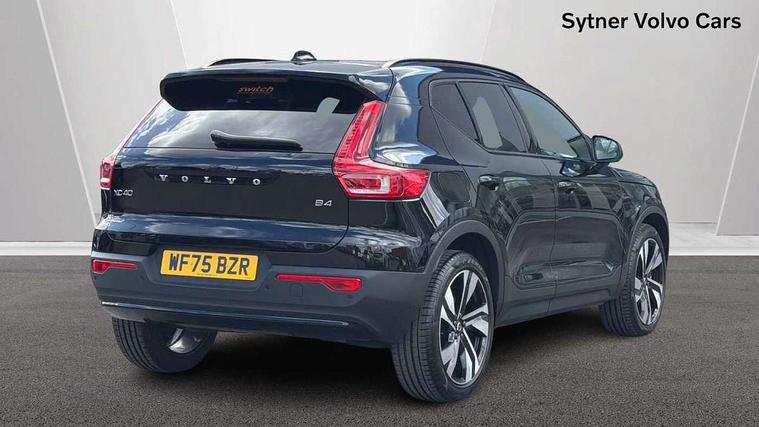 12.3" Progressive Driver Display, 9" centre console portrait touch screen, Adjustable steering wheel force, Android auto (Wired), Apple carplay (wired), Bluetooth handsfree system, Driver alert control, Driver assistance (pilot assist and adaptive cruise control), Driver awareness - Blind spot information system with steer assist, cross traffic alert with autobrake and rear collision warning and mitigation, E-call, Front and rear parking sensors, Front park assist, Google automotive services - Enabled entertainment apps, navigation with google maps, voice recognition with google assistant, Hands free power tailgate, Intelligent speed assistance, Lane keeping aid, Oncoming Lane Mitigation, Speed sensitive steering, Volvo cars services with app - Driving journal, engine remote start, remote door locking/unlocking and vehicle dashboard, Wireless/Inductive Mobile Phone Charging, Automatic transmission with start/stop and manual change functions, Dynamic chassis, DAB Digital radio, Steering wheel mounted remote controls, Adaptive brake lights with high level LED brake lights, Auto dimming feature for exterior door mirrors, Auto dimming interior mirror, Auto folding and heated power door mirrors, Automatic headlamp levelling, Automatic LED Headlights + Active high beam incorporating daytime running lights, Front aluminium tread plates, Front and rear electric windows, High gloss black front and rear skid plate, High gloss black front bumper deco, High gloss black mesh front grille with high gloss black surround, High gloss black window trim, Home safe and approach lighting, Integrated roof rails in high gloss black, LED front fog lights, Puddle lights, Rain sensor with automatic windscreen wiper activation, Rear side wing doors, Rear wiper, Roof antenna, Roof spoiler, Visible VIN plate, 12V socket in front tunnel console and luggage compartment, 2-Zone electronic climate control with CleanZone air quality system and pollen filter, 3 seat bench in 2nd row, 3 Spoke tailored steering wheel with chrome trim, 60/40 versatile split folding rear seat, Centre console cupholders and storage, Charcoal carpet and floor mats, Charcoal headlining, Connect suede textile/microtech upholstery, Flexible load floor and grocery bag holder, Front headrests, Front seat cushion extensions, Glovebox bag hook, Heated front seats, Height adjustable passenger seat, Height/reach adjustable steering column, High gloss centre tunnel deco, High level illumination - Front door pocket, front side step (under door), tailgate, instrument panel, front door inlay, rear courtesy&reading lights, Integrated waste bin, Isofix attachments on outer rear seats, Load cover, Load protection net, Mid level illumination - Front footwell, luggage & glovebox compartment, front cabin courtesy & reading lights, illuminated vanity mirrors+ticket holder, Multi directional lumbar support for driver and passenger seat, Power driver seat with memory + exterior mirrors memory, Rear armrest with cupholders, Rear headrests, Single front passenger seat, Underfloor luggage compartment storage, Climate pack without heated front seats - XC40, 3x3 point rear seatbelts, City safety with steering support with Pedestrian + cyclist + front collision warning with full auto brake and rear auto brake, Driver and passenger airbags, Drivers knee airbag, Electronic parking brake with auto hold, First aid kit, Front and outer rear seatbelt reminder and pretensioners, Front seats SIPS airbags, Hill descent control - Off-road drive mode, Hill start assist, IC (Inflatable Curtains) - Full Length, Passenger airbag cut-off device, Power child locks on rear doors, Road sign information display, Run off Road Protection, SIPS (Side Impact Protection System), Slippery road and hazard light alert, Stability and Traction Control with Spin control, Engine Drag Control and Corner Traction Control, Tyre pressure monitoring system, Vehicle deceleration control with Anti-lock Brake System, Electronic Brake Distribution and Emergency Brake Assist, Warning triangle, WHIPS whiplash protection system - front, 2 x Key integrated remote control central locking including with deadlocking system and auto open/close windows, Anti-theft alarm including immobiliser/volume sensor + level sensor, Keyless drive includes keyless entry and keyless start, Locking wheel nuts,