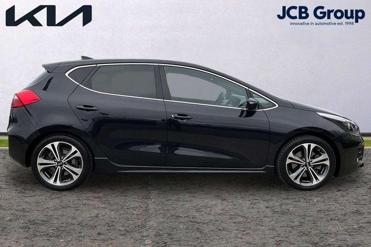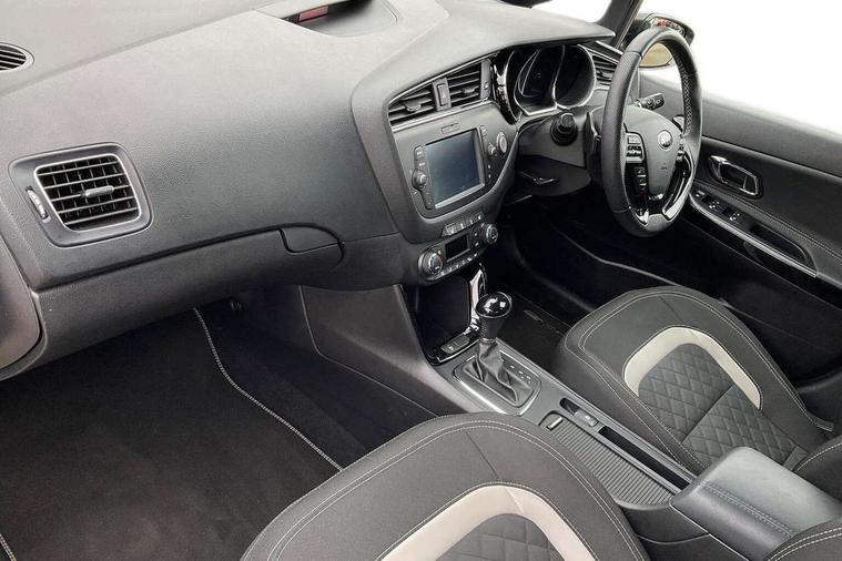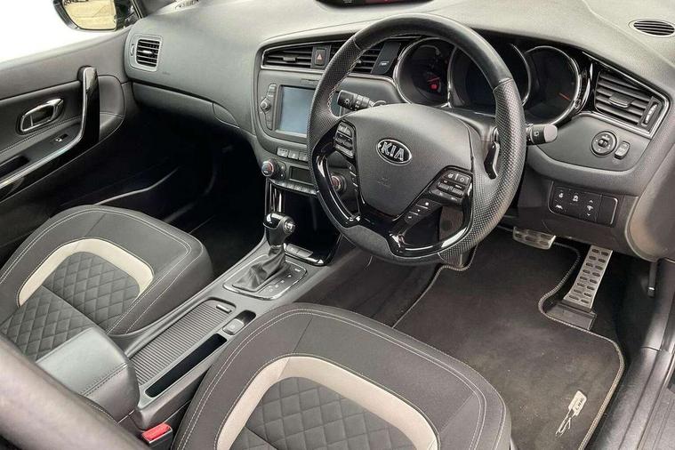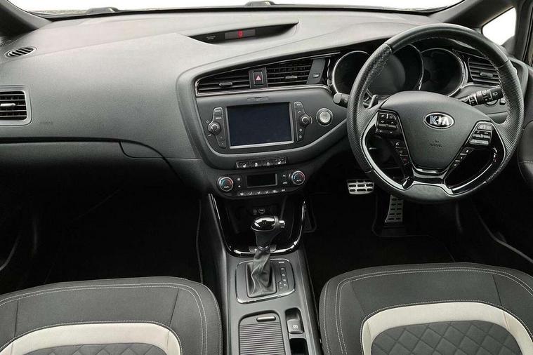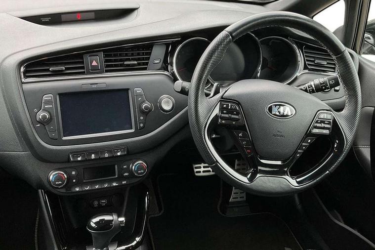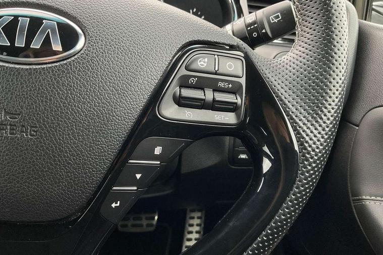 7" touchscreen full map navigation system with TomTom Connected Services, Bluetooth connectivity with voice control, Cruise control + speed limiter, Digital clock with date indicator, Electric power steering, Emergency stop signalling system, Flex Steer variable steering settings, Instrument cluster in chrome, Internal fuel flap release, Lane departure warning system, Low screen washer fluid warning, Multi function display colour screen, Outside temperature gauge, Rear parking sensor, Rear view camera, Service interval indicator, Smartphone integration with Apple CarPlay and Android auto, Start/stop button with aluminium finish, Trip computer, Diesel particulate filter, Intelligent Stop and Go, 6 speakers, Bluetooth audio streaming, DAB Radio/CD + MP3, Steering wheel mounted audio controls, USB and auxiliary socket, Adaptive front lighting including xenon lights with auto levelling, Auto dimming rear view mirror, Automatic defog system, Automatic headlights, Body colour bumpers, Body colour door handles, Body colour door mirrors, Chrome window surround, Cornering light, Dual projection headlights, Electric adjustable/heated/folding door mirrors, Electric front/rear windows/one touch facility, Follow me home headlights, Front fog lights, Headlight washers, Heated rear window with timer, Illuminated front door handles, LED indicators in door mirrors, LED rear lights, Panoramic sunroof with tilt/slide function and automatic electric roll blinds, Privacy glass, Puddle lights, Rain sensing front wipers, Rear spoiler, Rear wash/wipe, Tinted glass, Wide angle door mirrors, Windscreen wiper de-icer, 12V power socket in front console (x2), 12V socket in luggage compartment, 3 passenger grab handles, 5 height adjustable headrests, 60/40 split folding rear seat, Ambient light, Black headlining, Centre console storage box, Chrome interior door handles, Cupholders in centre console, Driver + front passenger electric lumbar support, Driver and passenger illuminated vanity mirror, Driver's sunvisor with ticket holder, Driver/front passenger seat height adjustment, Dual zone automatic air conditioning, Front map light with sunglasses case, Front seat and rear pockets, Gearshift paddles, Heated front seats, Heated steering wheel, Illuminated air conditioned glovebox, Illuminated front centre console tray, ISOFIX top tethers and lower anchor points, Load area cover, Luggage area lamp, Luggage area underfloor compartment, Luggage net, Rear air vents, Rear centre armrest with cupholders, Rear coat hooks, Rheostat dimmer switch, Sliding front centre armrest, Stainless steel pedals, Stainless Steel Scuff Plates, Storage bins on all doors, Tilt/telescopic adjustable steering wheel, Exterior styling pack - Cee'd GT Line/GT Line S, Interior styling pack - Cee'd GT Line/GT Line S, 3 point seatbelts on all seats, ABS/EBD, Automatic unlocking of doors in case of impact, Curtain airbags, Dual horn, Electronic parking brake, ESC + BAS + VSM + HAC, Fasten seatbelt reminder, Front passenger airbag deactivation, Height adjustable front seatbelts, Hill start assist control (HAC), Rear door child safety locks, Traction control, Twin front and side airbags, Tyre pressure monitoring system, Alarm system, Deadlocks, Immobiliser, Locking wheel nuts, Smart keyless entry, Speed sensitive auto door locking, Black high gloss front console tray garnish & door trim, Faux leather front door trim, 17" Alloy wheels, Temporary spare wheel,