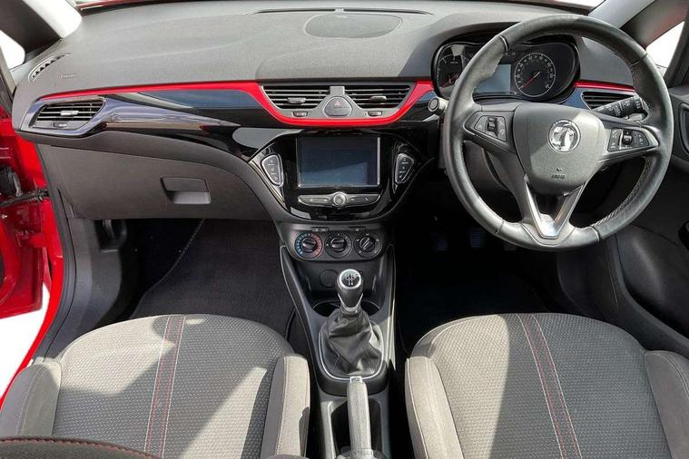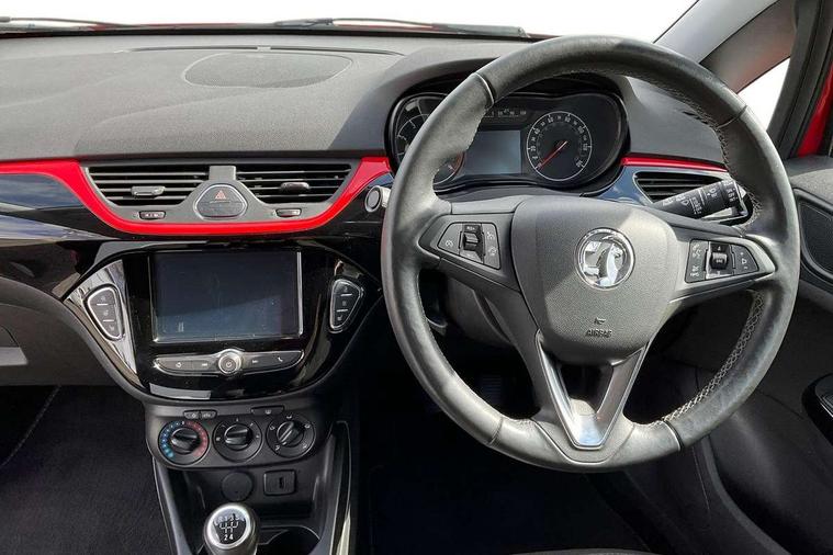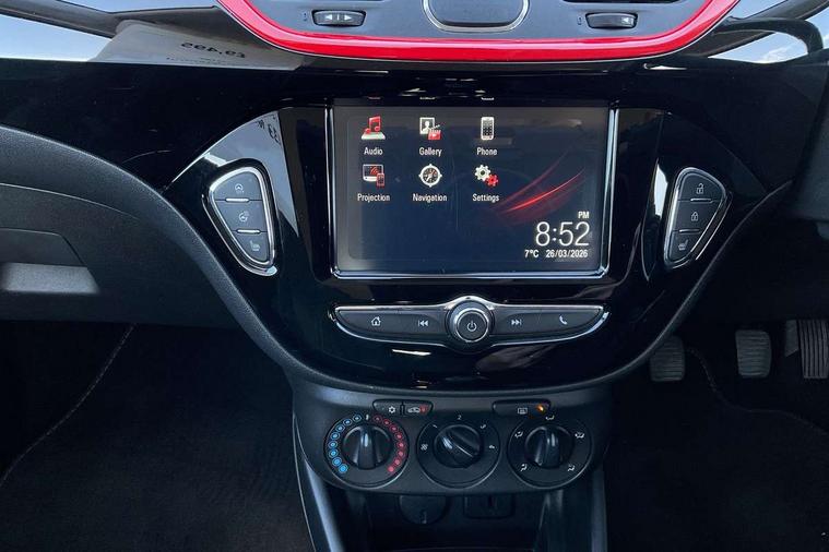 Apple car play/Android Auto, Bluetooth system, Central facia display, Cruise control + speed limiter, Digital fuel gauge with low fuel warning light, Digital water temperature gauge, Electric speed sensitive power steering, Exterior temperature gauge, Lights on audible warning, Navi 4.0 IntelliLink navigation with 7" touchscreen, traffic program, DAB , USB, Bluetooth audio streaming, Apple CarPlay/Android auto, and microphone, Rev counter, Service indicator, Speed warning indicator, Speedometer, Trip computer, White graphics on black background, Front anti roll bar, Sports suspension, Six speakers, Steering wheel mounted audio/cruise controls, Automatically dimming anti dazzle rear view mirror, Black door mirrors, Black foil on B-pillars, Black front grille logo bar, Black roof, Body colour bumpers, Body colour door handles, Chrome front grille, Dark tinted rear windows, Dipping rear view mirror, Door to door illumination, Electric adjustable/manual folding door mirrors (wide angle on driver's side), Electric headlight beam leveling, Electrically operated front windows with safety auto reverse/one touch facility, Front fog lights with black surround, Front fog lights with chrome surrounds, Griffin badges, Halogen headlights, Hazard warning lamps, Headlamp levelling, Heated rear window, Heated windscreen, High level LED centre brake light, Intermittent rear wash/wipe, Laminated windscreen, LED daytime running lights, Mineral black door mirror housings, Rain sensitive windscreen wipers, Rear fog lights, Rear wiper, Side window demist vents, Tinted windows, Two speed windscreen wipers with variable intermittent wipe, Welcome lighting, Windscreen demist vents, 12V electrical accessory socket in front, 3 spoke steering wheel, Air conditioning, Anti submarining ramps in all seats, Centre console with cupholders, Chrome gear knob, Chrome interior door handles, Comfort front seats, Driver's and front passenger's sunvisors, Driver's and front passenger's tiltable assist handles, Driver's and passenger's vanity mirrors with flip up cover, Driver's vanity mirror, Four adjustable facia vents, Front courtesy lights, Front door pockets, Front map reading lights, Front seat belt pre-tensioners with load limiters, Glovebox with lid, Grab handles, Griffin branded floor mats, Heated front seats, Height adjustable driver's seat, Height adjustable front headrests, Height adjustable rear head restraints with adjustable backrest, Illuminated luggage compartment, Instrument panel light dimmer, Interior tailgate handles, Isofix child seat mounting points on outer rear seats, Lace cloth trim, Load restraining lashing points, Luggage compartment cover, Multi function steering wheel, One piece folding rear seat, Pollen filter, Reach + rake adjustable steering column, Rear bottle holder, Rear courtesy lights, Rear reading lights, Reclining front seats, Sports front seats, Storage box on driver's side lower facia, Stowage facility for luggage compartment cover behind rear seats, Twin gas assisted tailgate struts, Two rear tiltable passenger assist handles, Sight and light Pack - Corsa, Winter pack - Corsa, Anti-lock braking system (ABS), Brake assist function, Electronic brake force distribution, Electronic Stability Programme, Energy absorbing steering column, Front and rear seatbelt reminder, Front and rear seatbelt unfastened audible warning and warning light, Front seatbelt force limiters, Gas pressure dampers, Height adjustable front seatbelts, Hill start assist, Manual passenger airbag deactivation function, Pedal release system, Rear child proof door locks, Reinforced passenger safety cell, Side impact protection beams, Six airbags - Driver's dual stage airbag/front passenger's dual stage airbag/front seat side impact airbags/full size curtain airbags, Three 3 point rear seatbelts, Three inertia reel lap/diagonal seatbelts, Traction control, Tyre pressure monitoring system, Electronically protected audio, Engine Immobiliser & Deadlocks, Key left in ignition audible warning, Locking wheel bolts, Remote control central locking, Visible vehicle identification number, Rhutenium facia with chrome effect inserts, 16" 4 twin spoke black alloy wheels, Tyre inflation kit,