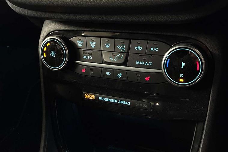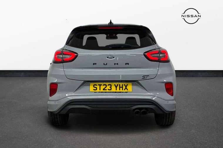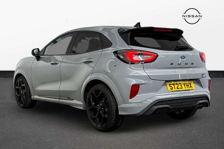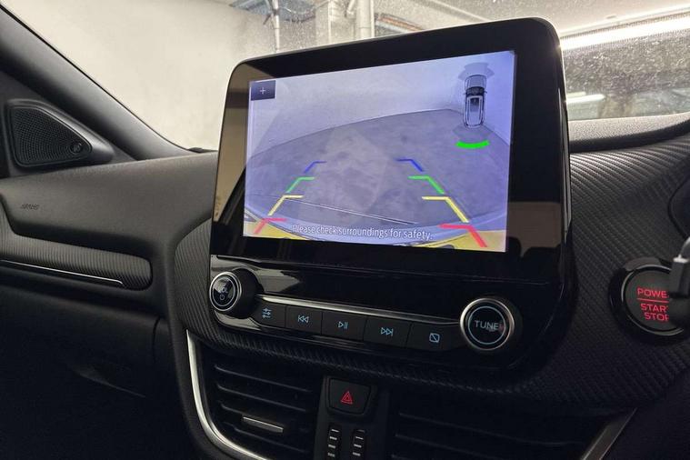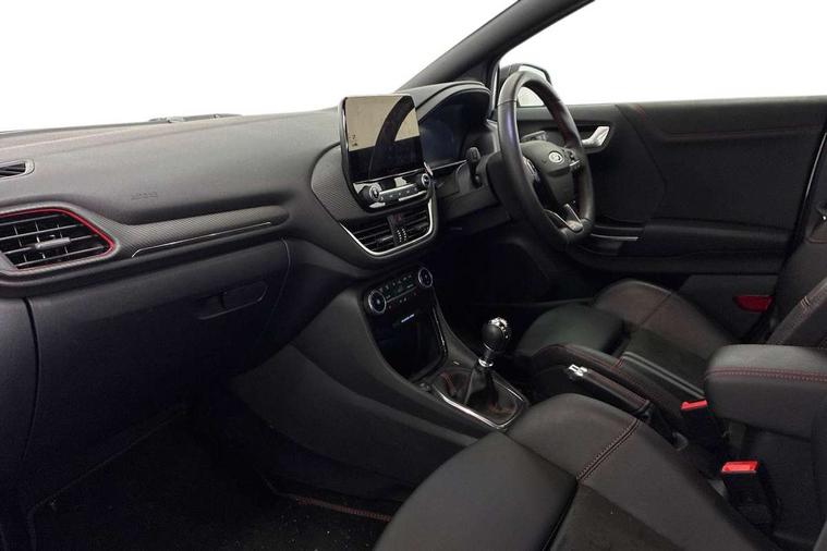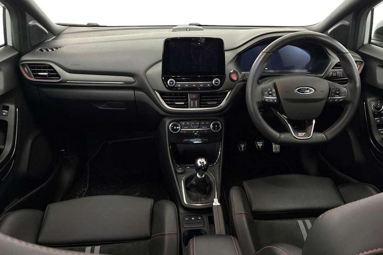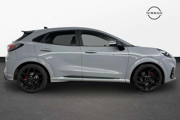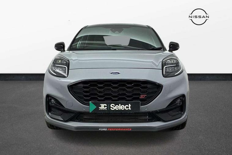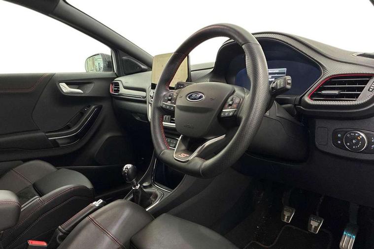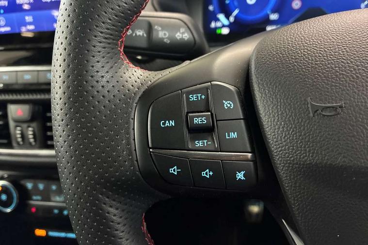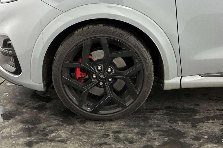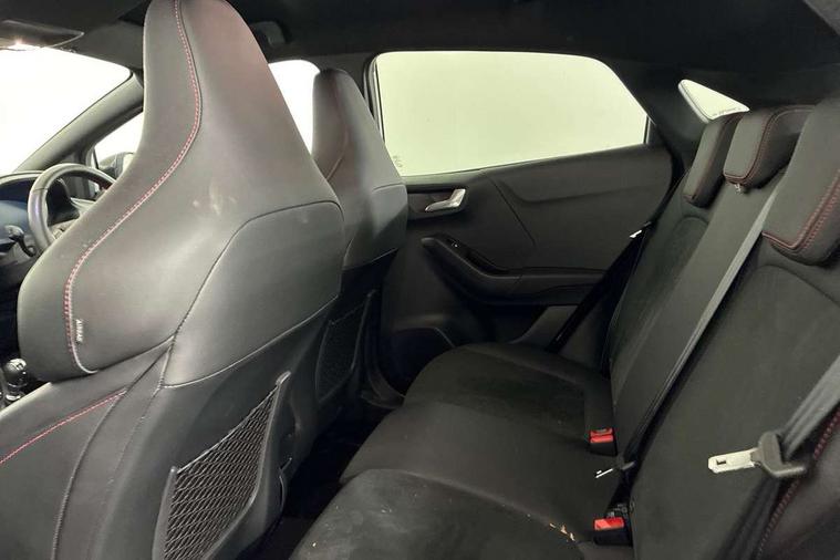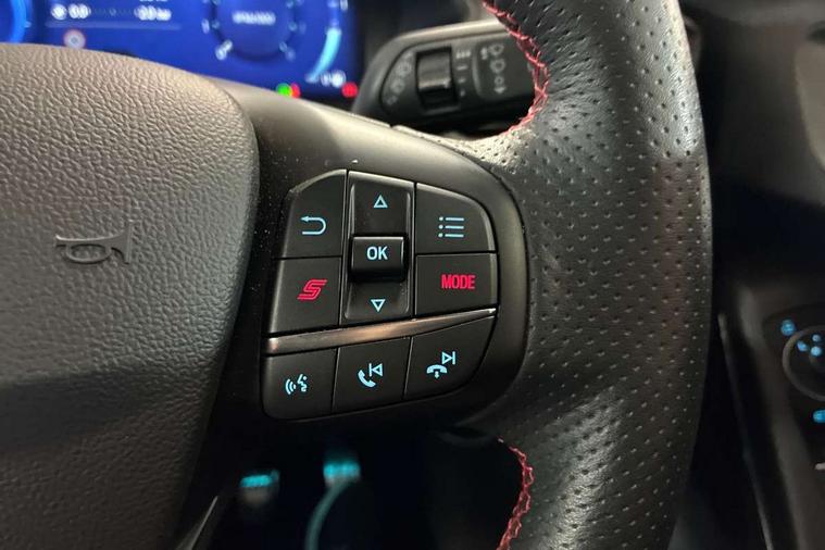 Cruise control with Intelligent speed assist, Driver impairment monitor, Emergency call service, Ford easy fuel, Front and rear parking sensors, Full digital 12.3" instrument cluster, Lane keeping aid with lane departure warning, Power assist steering, Selectable drive modes (normal, sport, eco, track), Speed sign recognition, Engine sound enhancer, ST suspension, Automatic headlights with auto high beam, Automatic rain sensing wipers, Dual chrome exhaust, Fixed LED signature headlamps, Front fog lamps, LED daytime running lights, LED rear lamps, Power foldable heated door mirrors with puddle lamps and puma logo protection, Privacy glass to side rear windows and tailgate glass, Quickclear heated windscreen, Rear side wing doors, Rear wiper, ST scuff plates, Third brake light, Unique ST body styling kit including contrast black roof, large rear spoiler and wing mirrors, plus Ford Performance embossed splitter, 3 seat bench in 2nd row, Alloy sports pedals, Centre console with armrest and stowage, Ford megabox extended bootspace, Ford Performance sensico partial premium leather upholstery with metal grey stitching, Front and rear floor mats, Front and rear head restraints, Manual 6 way driver seat adjust with lumbar adjustment, Manual 6 way passenger seat with lumbar seat adjustment, Single front passenger seat, ST flat bottomed steering wheel with metal grey stitching, ST logo projection, Unique ST gear shift knob, Wireless charging pad with electronic air temperature control (EATC), B&O Premium Audio system + Ford SYNC 3 navigation pack - Puma, Winter pack - Puma, 3 rear seatbelts, Child safety lock, Electronic stability control (ESC) and hill start assist, Pedestrian/cyclist detection & post-collision braking, Pre collision assist system, Red brake calipers, Tyre pressure monitoring system (TPMS), Keyless entry and power start button, Thatcham alarm, Carbon look interior deco spears, 19" 5 Spoke magnetite dark finished alloy wheel, Tyre inflation kit,