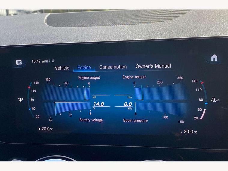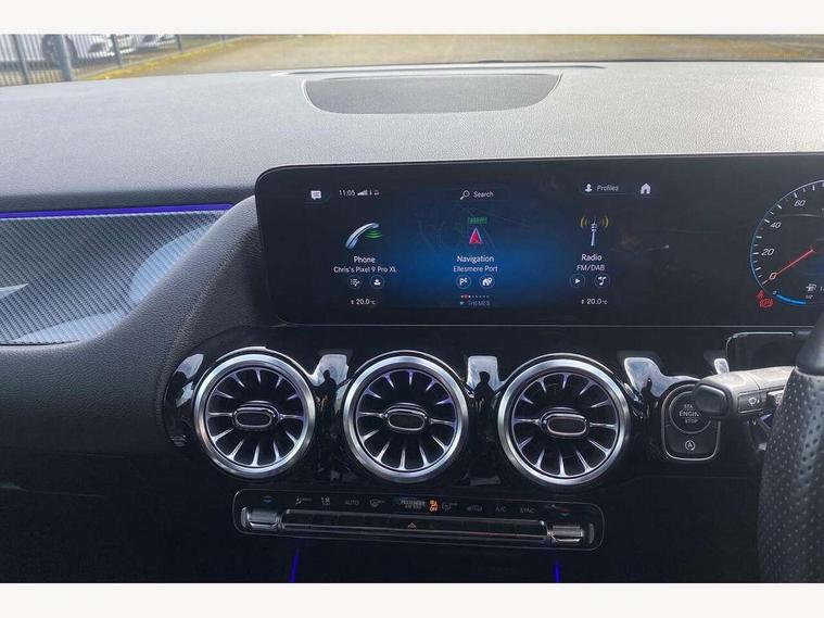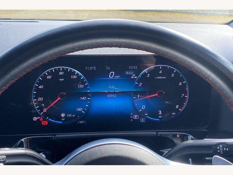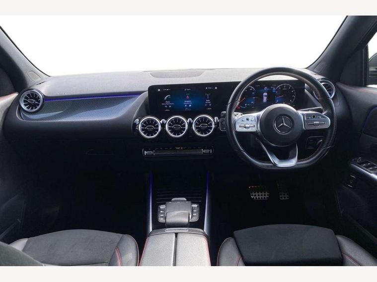 10.25 inch touchscreen central media display, 10.25" Digital instrument cluster display screen, Active lane keeping assist, Attention assist, Cruise control + speed limiter, Direct steering, DYNAMIC SELECT with a choice of driving modes (ECO, Comfort, Sport and Individual), ECO start/stop function, Fluid level warning indicator for fuel, oil, coolant and washer fluid, Hard-disk navigation, Hey Mercedes Voice activation, Lamp failure indicator, Mercedes me connect including emergency call system, accident recovery, breakdown management and maintenance, Mercedes me remote services, Multi function trip computer, Outside temperature gauge, Owners manual and service booklet in English, Pre-installation of private car share, Radio aerial integrated into front and rear windshields, Service indicator (ASSYST), Smartphone integration with Apple CarPlay and Android auto, Speed limit assist, Status display for rear seat belts in instrument cluster, Lowered comfort suspension, Rear axle multi-link, 2 USB ports (type C) in rear stowage compartment and one in front of center console, Bluetooth connectivity including audio streaming, DAB Digital radio, MBUX multimedia system, Media interface, Mercedes-Benz (225w) sound system with 10 speakers, Adaptive brake lights, Aerial for GPS, Aluminium roof rails, AMG front and rear apron, AMG specific/dual flow exhaust pipes in chrome (non-functional), Automatic headlamp activation, Beltline strips and weather strip in chrome, Black grained claddings with chrome parts, Body colour bumpers, Body colour door mirrors, Body coloured door handles with chrome insert for keyless entry, Car wash function, Dark privacy glass from B-pillar backwards, Electric front windows, Electric rear windows, Electrically adjustable and heated door mirrors with integrated LED indicators, Front bumper with underride guard in high gloss chrome, Heat insulating dark tinted glass, Heated glass rear windscreen + timer control, Heated windscreen wash system, Interior mirror with black reading lamps and frameless, LED high performance headlamps with integrated LED daytime running lights, LED tail lights in two piece design, LED third brake light, Matt titanium grey front and rear apron trim, Rain sensor windscreen wipers, Rear fog lights, Rear side wing doors, Rear wiper, Roof spoiler, Single lamella raditor grille with chrome dotted diamond grille and inlay, 12V power socket in centre console, 3 seat bench in 2nd row, 3 spoke multifunction sports steering wheel in nappa leather with flattened bottom and perforated grip area, 40:20:40 split folding rear seats with backrest, Adjustable head restraints, Air conditioning - Two zone thermotronic luxury automatic climate control with display, Ambient lighting in front headrests, AMG floor mats in black with AMG lettering in front, Artico man-made leather/Microcut microfibre upholstery with red contrast stitching, Auto Mercedes-Benz child seat recognition sensor, Black roof lining, Brushed door pulls in silver chrome, Courtesy light in boot, Floor mats in velour, Front centre armrest with stowage, Galvanished gear shift paddles on steering wheel, Heated front seats, illuminated door sills with changeable cover, Illuminated glovebox, Interior lighting - 64 colour Ambient lighting, Leather trimmed gearknob, Luggage net on driver/front passenger seat backrest, Manually height and reach adjustable steering column, Multi-gesture touchpad control on center console, Single front passenger seat, Sports pedals in brushed stainless steel with black rubber studs, Sports seats, Stowage compartment in centre console, Stowage compartment with retractable cover, Sunvisors with illuminated vanity mirrors, Twin front cup holders, Two outer rear seat isofix and top tether child seat fixing points, AMG body styling pack - GLA, Comfort seat pack - GLA Class, Interior lighting with light and sight pack - GLA, Keyless go comfort package - GLA, Load compartment pack - GLA, Mirror pack - GLA Class, Parking pack - GLA, 3 rear 3 point seatbelts, ABS with Brake Assist, Active bonnet pedestrain safety measure which detects an impact and raises bonnet by 65mm, Active brake assist includes forward collision warning system with autonomous braking, Adaptive brake assist with hold function and hill start assist, Bonnet with power domes, Brake pad wear warning indicator, Childproof locks manually operated for rear doors and electrically operated for rear power windows, Crash responsive emergency lighting, Driver and passenger head and side airbags, Drivers knee airbag, Dual stage driver/passenger airbags, Electronic parking brake, ESP curve dynamic assist, ESP with ASR, Front and rear seatbelt reminder, Front brake callipers with Mercedes Benz logo lettering on front, Front passenger seat occupancy sensor, Internally ventilated brakes with perforated brake discs at the front, Sports braking system, Tyre pressure monitoring system, Warning triangle and first aid kit, Window airbags, Alarm system with immobiliser and interior protection -Thatcham category 1, Keyless entry lock/unlock, Keyless Go starting function, Remote central locking and crash sensor with emergency opening function, Urban guard vehicle protection, Vehicle key with decorative surround in chrome, Carbon structure trim, Chrome air vent surrounds, 19" AMG 5 twin spoke light alloy wheels painted in high gloss black with high sheen finish, Summer tyres, Tirefit tyre sealant kit,