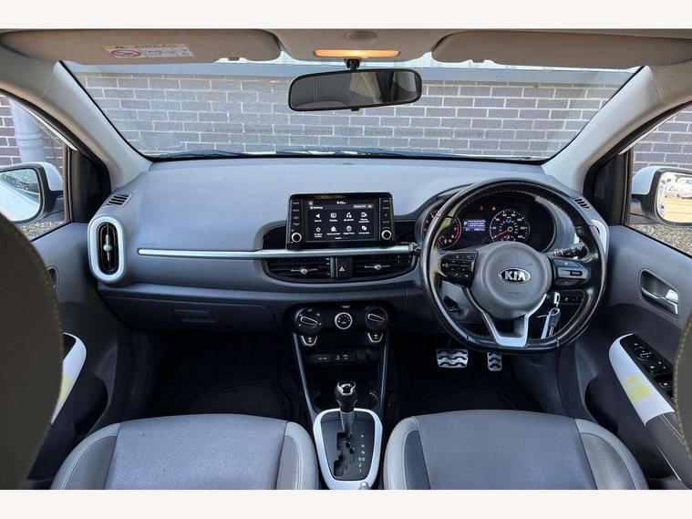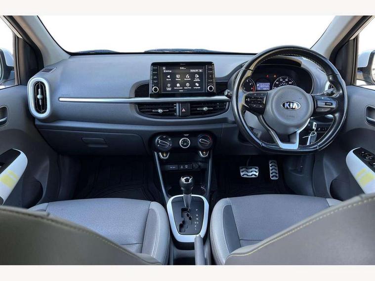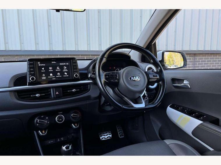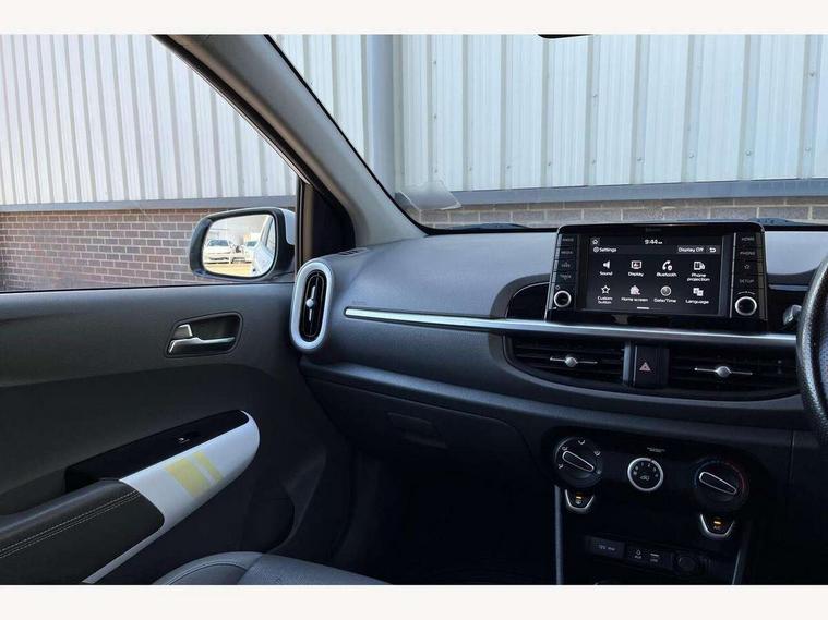7" touch screen, Apple car play/Android Auto, Digital clock, Emergency stop signalling system, External temperature gauge, PAS, Rear parking sensors, Reversing camera, Tachometer, Trip computer, Voice control system, 6 speakers, Bluetooth connectivity including audio streaming, DAB Digital radio, Steering wheel mounted controls, USB and auxiliary socket, Automatic headlights, Black bodyside mouldings, Black grille with chrome surround, Black wheel arch cladding, Body colour bumpers, Body colour door handles, Body colour door mirrors, Chrome side window trim, Day/night rear view mirror, Electric adjustable/heated/folding door mirrors, Front and rear electric windows, Front fog lights, Headlamp levelling, Heated rear window, LED daytime running lights, LED rear lights, Privacy glass, Projector headlamps, Rear wash/wipe, Silver skid plates, Twin exhaust pipes, Variable front intermittent wipers, Welcome home function, 12V power point front, 60/40 split/folding 2nd row of seats, Assist grips, Centre console storage and sliding armrest, Coat hooks, Cupholders in centre console, Driver seat height adjust, Driver's sun visor with vanity mirror, Faux leather upholstery, Front interior light, Glovebox, Height adjustable front seat head restraints, Height adjustable rear seat head restraints (x2), Isofix child seat attachment, Leather steering wheel and gear knob, Load area light, Manual air conditioning, Passenger front seat pockets, Passenger sunvisor with vanity mirror, Rear parcel shelf, Satin chrome interior door handles, Slide/reclining front seats, Stainless steel pedals, Tilt adjustable steering wheel, Advanced Driver Assistance Pack - Picanto, 3x3 point rear seatbelts, ABS/EBD, Automatic unlocking of doors in case of impact, Curtain airbags, Dual front airbags, ESC + BAS + VSM + HAC, Front seatbelt pretensioners + load limiters, Front side airbags, Height adjustable front seatbelt anchors, Hill start assist, Passenger airbag deactivate switch, Rear child proof door locks, Seatbelt warning, Side impact protection, Traction control, Tyre pressure monitoring system, Anti theft alarm, Engine immobiliser, Folding key, Locking wheel nuts, Remote central door locking, Speed sensitive auto door locking, High gloss black centre fascia, 16" alloy wheels, Tyre repair kit,