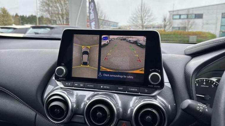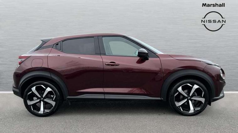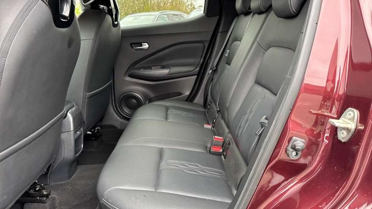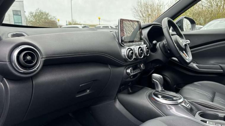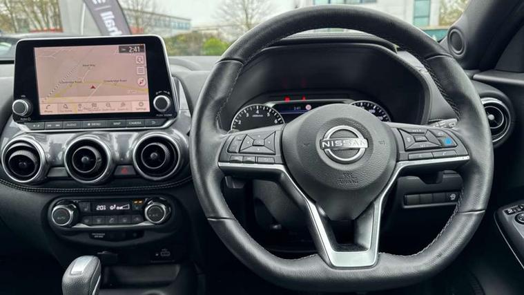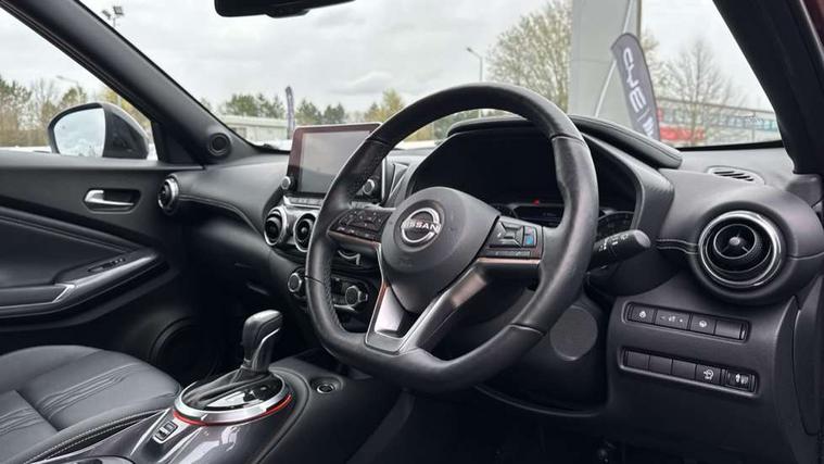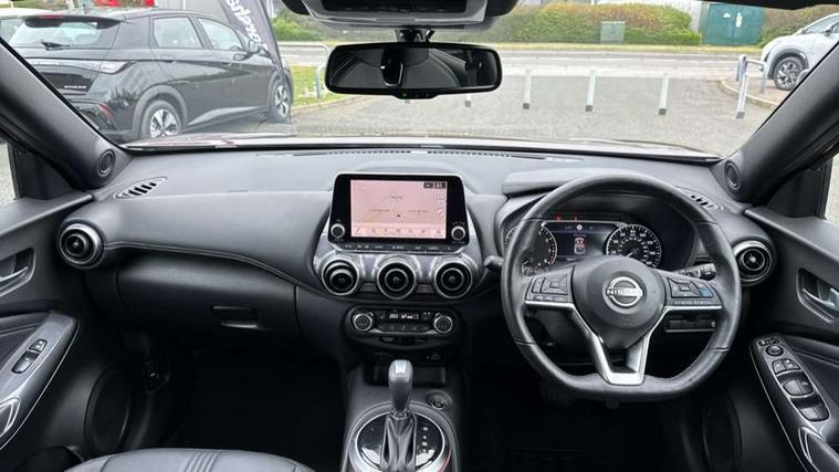 7" full colour TFT screen combimeter, Apple CarPlay and Google Android auto, Drive modes select (Eco, normal and sport), Emergency and breakdown call, Front parking sensor, Idle start/stop system, Intelligent lane intervention, Lane departure warning system, Nissan connect 8" touch screen entertainment system, Nissan connect nav with TomTom traffic, Nissan connect services and Wifi connection, Outside temperature sensor, Power Steering, Rear parking sensor, Traffic sign recognition, Trip computer, Voice recognition, Gasoline particulate filter, 10 Bose speakers 6 speakers and 2 headrest speakers for driver/passenger seats, Bluetooth system, USB, Aux-in and 12V socket, Bose personal sound stage control, DAB Digital radio, Rear console USB port, Auto dimming interior rear view mirror, Auto headlights, Automatic hazard signal with emergency stop signal, Body colour bumpers, Body colour door handles, Electrically adjustable door mirrors with integrated indicators, Follow me home headlights, Front and rear electric window with one touch driver window, Heated and auto folding door mirrors, High beam assist, LED daytime running lights, LED front fog lights, LED headlamps, LED rear fog lamp, LED rear lamps, Rain sensor windscreen wipers, Rear privacy glass, Rear side wing doors, Rear wiper, Thermaclear heated windscreen, Three blink turn signal, 3 height adjustable rear headrests, 3 seat bench in 2nd row, 60/40 split folding rear seat, Automatic climate control, Card holder on driver sunvisor, Door ambient lighting, Driver and passenger sliding and reclining seats, Driver seat back pocket, Driver side rear coat hanger, Driver/passenger sunvisors and vanity mirrors, Front and rear cabin lights, Front armrest, Front door pockets with bottle holders, Front head restraints, Front passenger isofix child seat anchorage point, Front/rear passenger grab handles, Gear console ambient circle lighting, Grey synthetic leather kneepad, Heated front seats, Height adjustable driver's seat, Height adjustable passenger seat, Internal chrome door handles, Leather gearshift knob, Leather steering wheel, Luggage board, Luggage space lighting, Monoform sporty seats, Multifunction steering wheel, Passenger seat back pocket, Rear door bottle holders, Single front passenger seat, Steering wheel mounted gearshift paddles, Synthetic leather upholstery, Telescopic steering wheel adjustment, Two cupholders in front centre console, Two rear isofix child seat anchorage points with top tether, Welcome light and console tray ambient lighting, ProPilot pack - Juke, ABS with EBD and brake assist, Active ride control, Active Trace Control, Driver and passenger airbags, Driver and passenger side airbags, Electric handbrake with auto hold function, Electronic Stability Programme (ESP), Front and rear curtain airbags, Height adjustable seatbelts, Hill start assist, Intelligent emergency braking with pedestrian and cyclist recognition, Rear door child safety locks, Seatbelt reminder for driver/front passenger and rear seats, Single tone horn, Three 3 point rear seatbelts, Traction control, Tyre pressure monitoring system, VDC Dynamic Vehicle Control, Ventilated rear brake discs, Alarm, Immobiliser, Intelligent key and start push button with walk away lock and approach unlock functions, Remote central locking,