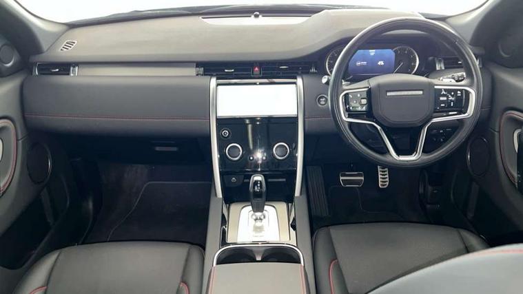 10" touch screen, Adaptive cruise control, Android Auto, Apple CarPlay, Driver condition monitor, eCall emergency call system, Front and rear parking aid, InControl remote premium, Lane keep assist, Locking fuel flap, PAS, Pivi Pro connected navigation system with upgraded Infotainment, Powered tailgate/boot lid, Push button start, Service interval indicator, Traffic sign recognition with adaptive speed limiter, Trip computer, Wade Sensing, 7 kW onboard charger, All terrain progress control, Coil suspension system, Dynamic stability control, Home charging cable, Public charging cable, Terrain Response 2, Bluetooth connectivity including audio streaming, Digital Audio Broadcast radio-DAB, Steering wheel mounted audio controls, 3rd brake light, Automatic headlights, ClearSight interior rear view mirror, Electric front/rear windows, Electric heated/power fold door mirrors with approach lights and auto dimming driver side, Front and rear recovery eyes, Heated rear window, Heated windscreen including heated washer jets, P300e badge, R Dynamic badge, Rain sensing windscreen wipers, Rear fog lights, Rear side wing doors, Rear wing door, Rear wiper, 5 standard seating configuration, Bright metal pedals, Centre console with armrest, Footwell lights, Front and rear grab handles, Front passenger isofix child seat attachment, Loadspace cover, Loadspace light, Overhead lighting console, Overhead stowage for sunglasses, Rear headrests, Satin chrome gearshift paddles, Sunvisors with illuminated vanity mirrors, Tilt/reach adjustable steering wheel, Black exterior pack - Discovery sport R-Dynamic SE/HSE, Online pack with data plan - Discovery, 3 point seatbelts on all seats, ABS, Brake hold function, Child locks on rear doors, Collision mitigation braking system, Cornering brake control (CBC), Driver/Front Passenger airbags, Drivers knee airbag, Electronic brake force distribution, Electronic parking brake, Emergency brake assist, ESP + traction control, Hill descent control, Hill launch assist, Pedestrian airbag system, Rear seat ISOFIX, Roll stability control, Side and curtain airbags for front and 2nd row seats, Trailer stability control, Tyre pressure monitoring system, Battery Back Up System (BBUS) with tilt sensor, Global lock and unlock switch on driver door, Intrusion sensor, Keyless entry, Locking wheel nuts, Centre stack rails in noble chrome,