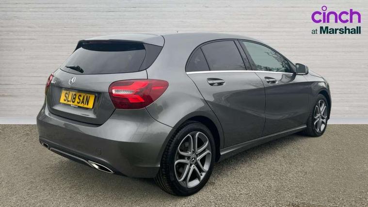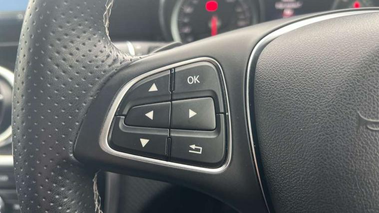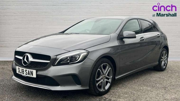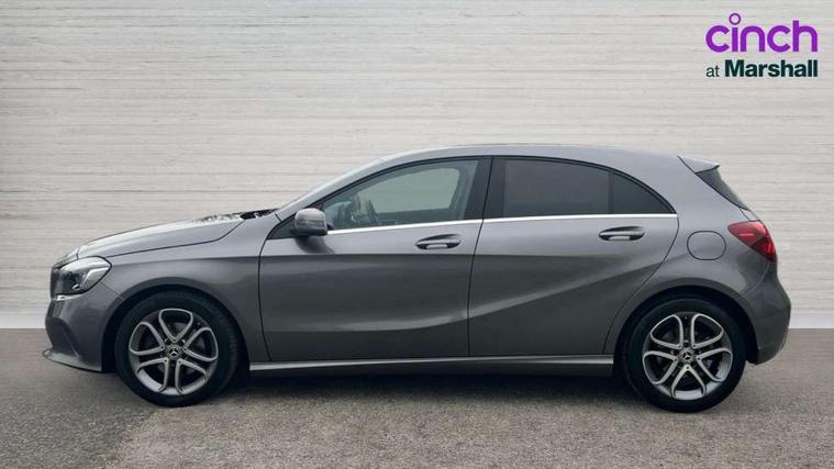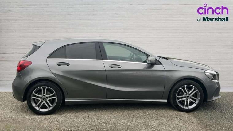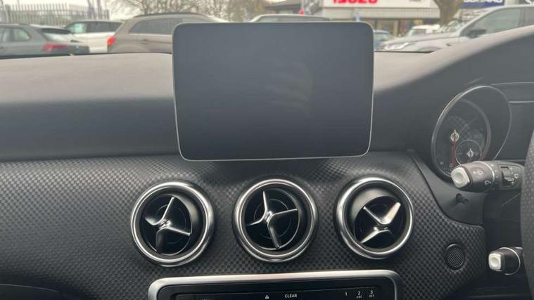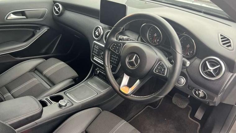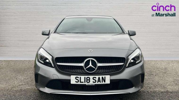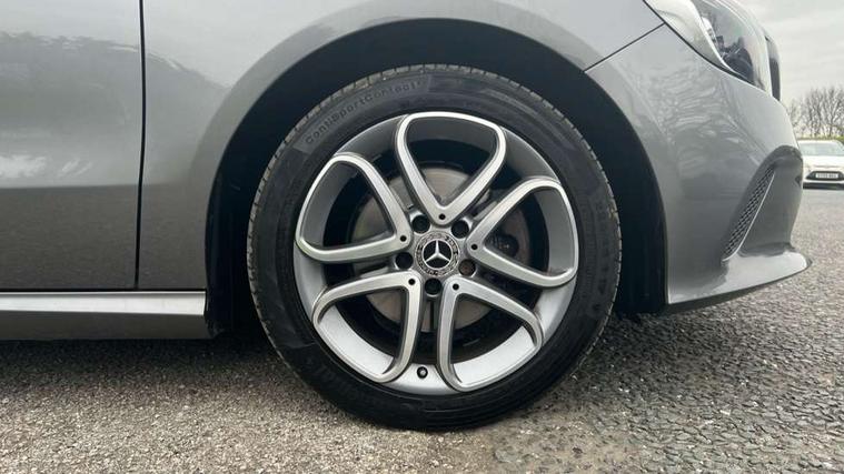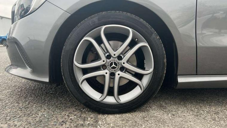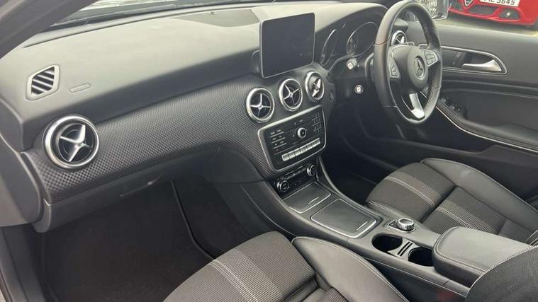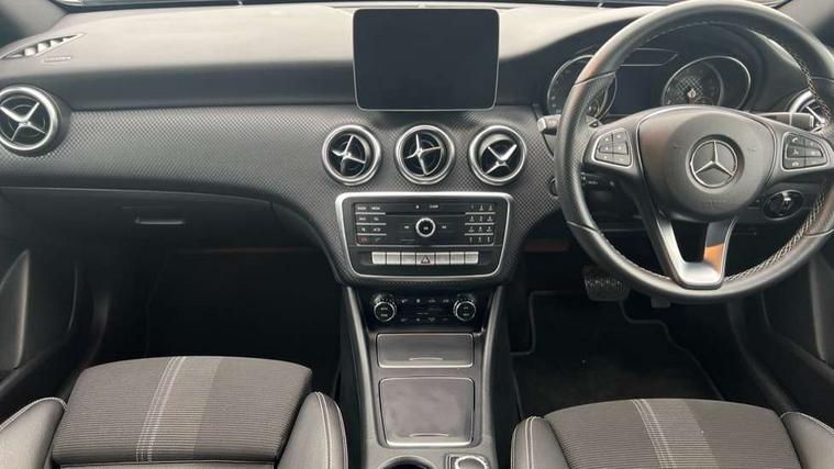 8" colour display screen, Attention assist, Bluetooth interface for hands free telephone, Bulb failure indicator, Collision prevention assist plus, DYNAMIC SELECT with a choice of driving modes (ECO, Comfort, Sport, Sport+ and Individual), External temperature gauge, Garmin Map pilot navigation system with SD Card, Low fluid warning light, Reversing camera, Service indicator (ASSYST PLUS), Smartphone integration with Apple CarPlay, Speed sensitive parameter assisted steering, Speedtronic cruise control, Trip computer, Comfort suspension, Media interface, Mercedes Audio 20 radio/single CD + telephone keypad, SD card slot, USB port, Adaptive brake lights, Body colour bumpers, Body colour door handles, Body colour side skirt, Body coloured door mirrors, Chrome beltline trim, Diamond radiator grille with black pins with one louvre in silver + chrome insert, Electric adjustable heated door mirrors, Electric front windows, Electric rear windows, Headlamp assist, Heated rear window with timer, LED daytime running lights, LED Headlights, LED tail lights, Privacy glass, Rain sensor windscreen wipers, Rear wiper, Twin Trapezoidal tailpipes, 1/3 to 2/3 split folding rear seats, 12V socket, 3 spoke perforated leather multifunction sports steering wheel, ARTICO man-made leather/Maringa cloth upholstery, Auto Mercedes-Benz child seat recognition sensor, Black headlining, Dual zone automatic climate control, Footwell lights, Front and rear reading lights, Front centre armrest with storage compartment, Front head restraints, Front sport seats, Gearshift paddles on steering wheel, Height adjustable front seats, Height/reach adjustable steering column, Illuminated door sills, Illuminated glovebox, Illuminated storage compartment, Isofix rear child seat preparation, Load securing rings in luggage compartment, Luggage compartment cover, Rear head restraints, Storage compartment under load area floor, Sunvisors with illuminated vanity mirrors, Twin front cupholders, Seat comfort pack - A Class, 3 rear 3 point seatbelts, ABS with Brake Assist, Active bonnet, Adaptive brake system, Black seat belts, Child proof door locks, Crash responsive emergency lighting, Drivers knee airbag, Dual stage driver/passenger airbags, Electronic parking brake, ESP with ASR, Front and rear seatbelt reminder, Front head airbags, Front passenger seat occupancy sensor, Front side airbags, Hill start assist, Tyre pressure monitoring system, Warning triangle and first aid kit, Window airbags, Alarm system/interior protection/immobiliser, Keyless ignition, Remote central locking, Checked pattern trim, Chrome air vent surrounds, 17" 5 twin spoke alloy wheels painted in black with high sheen finish, Tirefit sealant with electric air pump,