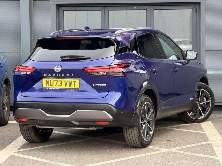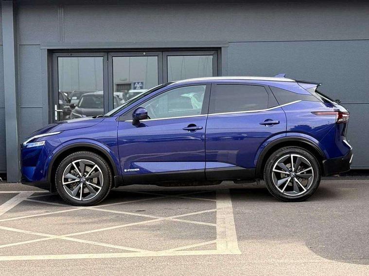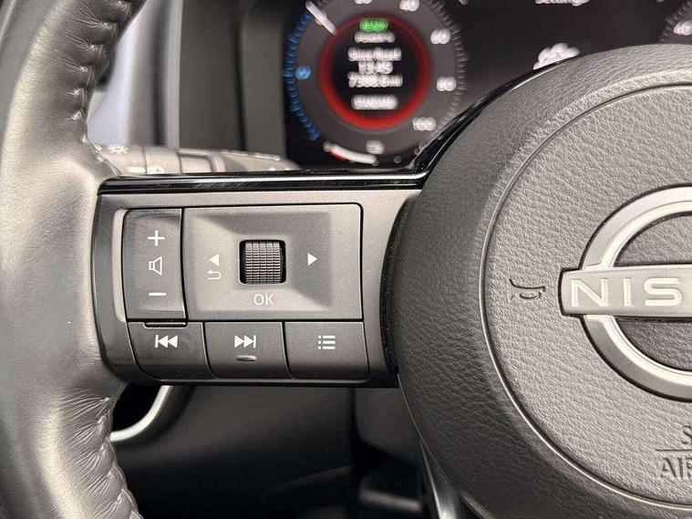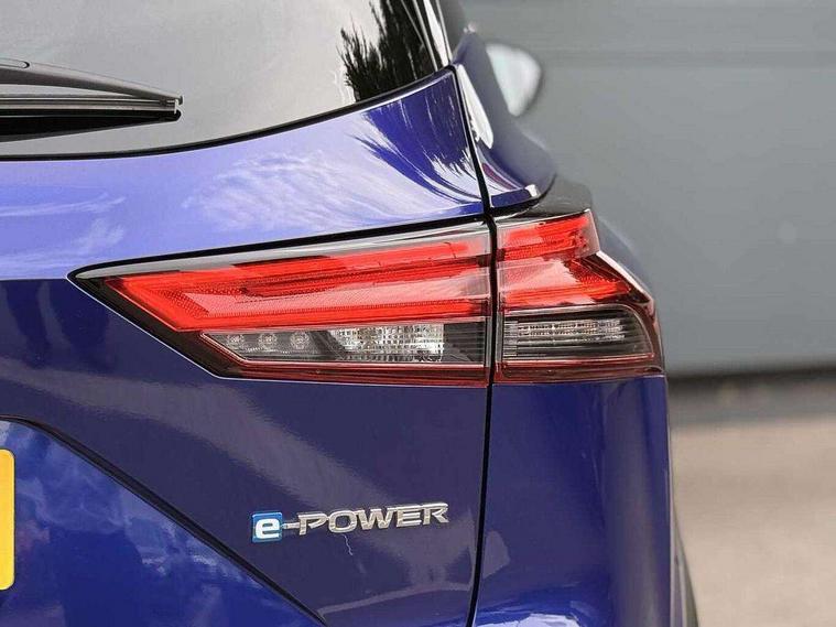 Advanced windscreen head up display, Blind spot warning, Drive modes (sport, normal, eco), e-Pedal step, Electric speed sensitive power steering, Emergency and breakdown call, Front and rear parking sensors, Full Digital 12.3" TFT Digital Combimeter, Google maps services - search, weather, 3D maps and Google street view, Hands free power tailgate, Idle stop/start system, Intelligent around view monitor, Intelligent Cruise control (ICC), Intelligent driver alert system, Intelligent forward collision warning, Intelligent lane intervention, Lane departure prevention, Lane departure warning system, Lane keep assist, Moving object detection, Nissan connect 12.3 inch touchscreen infotainment system, Nissan connect navigation, ProPILOT with Navi-Link, Push button starter, Rear cross traffic alert, Rear view camera, Remote control services - door locks, lights, horn and car locator, Telematics - notifications and connectivity services, TomTom live traffic services, Traffic sign recognition with legal speed adjustment, Trip computer, Virtual personal assistant and firmware over the air capability, Wireless Apple CarPlay and wired Android Auto, Wireless charging pad, 6 speakers, AM/FM audio system with DAB, Bluetooth audio streaming, Front USB connections (Type-A and Type-C), Rear USB charging only ports (Type-A and Type-C), Auto dimming rear view mirror, Auto rear wiper when reversing, Automatic hazard signal with emergency stop signal, Body colour mirror caps, Body coloured door handles, Bodyside mouldings, Chrome side window finisher, Door handle with button, e-POWER badging, Electric auto folding door mirrors, Electrically adjustable and heated door mirrors with LED turn indicator, Follow me home headlights, Front and rear LED turning signals, Headlights auto levelling system, Intelligent auto headlights, LED 3rd brake light, LED daytime running lights, LED headlights with adaptive driving beam, LED rear lights, One touch front and rear electric windows with remote opening and closing, Partially body coloured bumpers, Privacy glass, Rear bumper with graphite insert, Rear reversing light (bulb lighting), Rear roof spoiler, Rear side wing doors, Rear styling plate, Shark fin antenna, Splash free rain sensing wipers, Super UV and infrared cut glass, Thermaclear heated windscreen, Three blink turn signal, 12v power socket in dashboard and luggage, 2x Rear coat hooks, 3 bench rear seats in 2nd row, 3 rear headrests, 4 folding assist grip, 6 Luggage hooks - 4 on floor, 2 on side, 60/40 split folding rear seat bench, Ambient lighting around centre console, Ambient lighting in front doors, Centre console storage tray, Chrome interior door handles, Cloth/syntech leather monoform upholstery, Dark black/blueish PVC wrapping, Dark headlining, Driver and front passenger sunvisors with illuminated vanity mirrors, Driver seat back pocket, Dual zone automatic climate control with pollen filter, e-POWER shifter, Electrically adjustable driver seat, Electrically adjustable lumbar support for driver, Front and rear door storage, Front centre console and armrest, Front cupholders x 2, Front door with bottle holders, Glovebox with light, Hard trunk cover, Heated front seats, Heated steering wheel, Height adjustable driver's seat, Height adjustable front headrests, Height adjustable passenger seat, Leather steering wheel, Luggage board system, Luggage space lighting, Manual lumbar support on passenger seat, Manually adjustable passenger (slide recline + lifter), Multifunction steering wheel, Passenger seat back pocket, Rear armrest with 2 cupholders, Rear door bottle holders, Single front passenger seat, Soft PVC kneepad, Steering wheel switches, Tilt/telescopic adjustable steering wheel, Two rear isofix child seat anchorage points with top tether, Welcome light and doors with console tray ambient lighting, Glass roof pack with roof rails - Qashqai, 3x3 point rear seatbelt pretensioners + load limiters, ABS with EBD and brake assist, Active brake limited slip, Auto hold function, Child locks on rear doors, Curtain and front side, far side airbags, Driver and passenger airbags, Driver, passenger and 2nd row rear seat belt reminder, Electronic parking brake, Front seatbelt pretensioners + load limiters, Height adjustable front seatbelts, Hill start assist, Intelligent blind spot intervention, Intelligent front emergency braking with pedestrian, cyclist recognition and junction assist, Intelligent rear automatic braking, Tyre pressure monitoring system, Vehicle dynamic control, Capless fuel filler, Engine immobiliser, Intelligent Key, Remote central door locking with deadlocking, Thatcham Cat.1 alarm, Interior instrumental panel C finisher, 19" Diamond cut alloy wheels, Tyre puncture repair kit,
