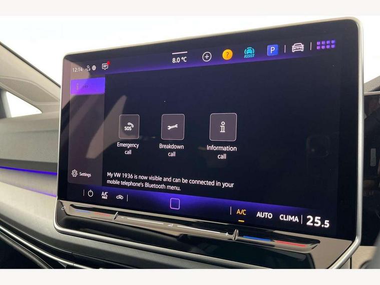 Activated carbon canister, Adaptive cruise control (ACC), Advanced driver attention and drowsiness monitor, Dynamic road sign display, E-Sim card for online connectivity, eCall emergency call system, Multi-color Digital cockpit pro, selection of different info profile possible, Multifunction front facing camera for distance control, Navigation system, Oncoming vehicle braking when turning including swerve support, Speed limiter, Speedo, rev counter, electronic odometer, trip, service interval display, exterior temperature and fuel gauge, Voice enhancer and voice control, Warning signal and warning light for front and rear seatbelts not fastened, We connect plus preparation, We connect preparation, Wireless app connect, Hybrid propulsion system, Petrol Particulate Filter, Start-stop system with battery regeneration (recuperation - energy recovery during braking), XDS electronic differential lock for improved traction and handling, 2 USB C ports in front, 2 USB charging sockets on the centre console in the rear charging capacity upto 45W, Digital radio reception (DAB), Diversity antenna for FM reception, Gaming platform via car app, Infotainment system with 12.9" display, Mobile phone interface with inductive charging feature, 3rd brake light, Automatic headlamp activation with Coming home and Leaving home feature, Body colour door handles, Body colour door mirrors, Exterior mirrors convex on the left and aspherical on the right, Front and rear electric windows, Heat insulating windshield made of laminated glass, LED separate daytime running light, Rear exhaust tailpipe, Rear fog light on one side and reversing lights on both sides, Rear side wing doors, Rear tinted glass 65% light absorbing from B pillar backwards, Rear windscreen washer and wiper with interval delay, Remote electrically foldable door mirrors, puddle lights and reverse activated passenger's door mirror, Standard bumpers, Welcome light with surround lighting, 12V socket in front centre console, 12V socket in luggage compartment, 3 rear head restraints, 3 seat bench in 2nd row, Chrome plated radiator grille inserts, air vent surrounds and light switch surrounds, Front + rear black carpet mats, Front centre armrest, Front head restraints, Front seat lumbar support adjuster, ISOFIX anchors for child seats on outer rear bench seats and on front passanger seat compatible for i-Size, Luggage compartment lighting, Manual height adjustable front passenger seat, Manually height adjustable driver seat, Plastic gear knob, Rear cupholder and loadthough, Single front passenger seat, Soul black instrument panel, Split folding backrest with centre armrest and unsplit rear seat bench, Standard pedal cluster, Storm grey roof lining, Sun visors with illuminated vanity mirrors, Technology park and comfort pro package - Golf Hatchback, 3 point height adj front seatbelts + pretensioners, 3 rear three point seatbelts, ABS, Autonomous emergency braking front assist with pedestrian and cyclist monitoring, Child locks on rear doors, Driver and front passenger airbag with front passenger airbag deactivation, Electronic parking brake with auto hold, ESC (Electronic Stability Control), Extended pedestrian protection measures, Hill start assist, Rear disc brakes, Two tone horn, Tyre pressure loss indicator, Volkswagen roadside assistance, Anti theft wheel bolts, Preparation for alcohol interlock, Nature cross brushed decorative inserts for dashboard and front door panels,