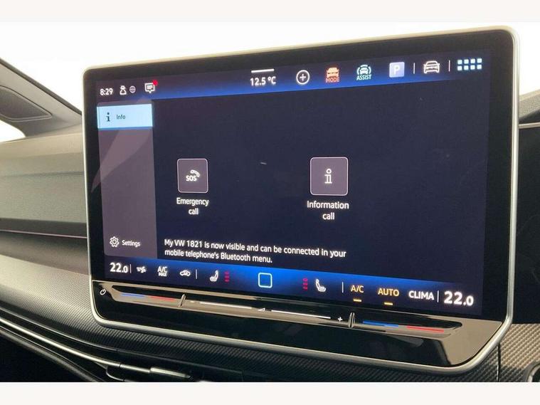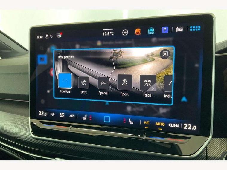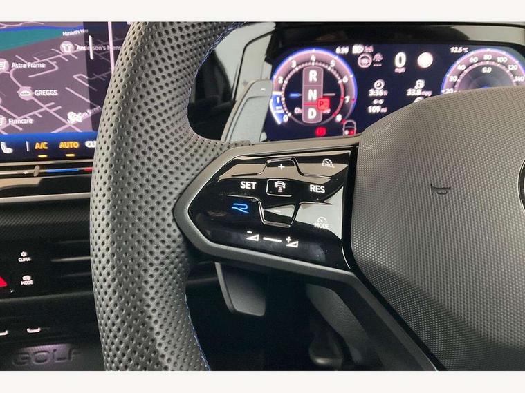 Activated carbon canister, Adaptive cruise control (ACC), Advanced driver attention and drowsiness monitor, Dynamic road sign display, E-Sim card for online connectivity, eCall emergency call system, Electronic maximum speed limit increased to 270 km/h, includes driving Modes 'drift' and 'special', larger roof spolier and GPS laptimer + G-Meter, Multi-color Digital cockpit pro, selection of different info profile possible, Multifunction front facing camera for distance control, Navigation system, Oncoming vehicle braking when turning including swerve support, Progressive steering, Side assist blind spot lane change system, rear traffic alert and exit warning system, Speed limiter, Speedo, rev counter, electronic odometer, trip, service interval display, exterior temperature and fuel gauge, Traffic jam assist, Voice enhancer and voice control, Warning signal and warning light for front and rear seatbelts not fastened, We connect plus preparation, We connect preparation, Wireless app connect, All wheel drive - 4Motion, Petrol Particulate Filter, Start-stop system with battery regeneration (recuperation - energy recovery during braking), XDS electronic differential lock for improved traction and handling, 2 USB C ports in front, 2 USB charging sockets on the centre console in the rear charging capacity upto 45W, Digital radio reception (DAB), Diversity antenna for FM reception, Gaming platform via car app, Infotainment system with 12.9" display, Mobile phone interface with inductive charging feature, 3rd brake light, Auto dimming rear view mirror, Automatic headlamp activation with Coming home and Leaving home feature, Black badge on B-pillar, Black mirror caps, Black strips on radiator grille and headlights, Body colour door handles, Darkened headlights, Darkened R Logos and VW logos in front, rear and on fender, Exterior mirrors convex on the left and aspherical on the right, Front and rear electric windows, Front fog lamps and cornering light, Heat insulating windshield made of laminated glass, Illuminated lighting animation with wake up/goodbye scenario, LED matrix headlights with ambient light V2, advanced high beam, dynamic range contol with cornering, LED rear lamp with indicator, poor weather, LED separate daytime running light, Light assist with High beam control, R name plate, Rain sensor, Rear fog light on one side and reversing lights on both sides, Rear side wing doors, Rear tinted glass 65% light absorbing from B pillar backwards, Rear windscreen washer and wiper with interval delay, Remote electrically foldable door mirrors, puddle lights and reverse activated passenger's door mirror, Welcome light with surround lighting, 12V socket in front centre console, 12V socket in luggage compartment, 3 rear head restraints, 3 seat bench in 2nd row, 30 colour ambient lighting, illuminated center console storage compartment in front, Air care climatronic 3 Zone automatic climate control with rear air conditioning control panel, Aluminium gearshift handle, Brushed stainless steel pedals, Chrome plated radiator grille inserts, air vent surrounds and light switch surrounds, Entry lights, Front + rear black carpet mats, Front centre armrest, Integrated front head restraints, ISOFIX anchors for child seats on outer rear bench seats and on front passanger seat compatible for i-Size, Luggage compartment lighting, Rear cupholder and loadthough, Single front passenger seat, Soul black instrument panel, Soul black roof lining, Split folding backrest with centre armrest and unsplit rear seat bench, Sun visors with illuminated vanity mirrors, Driver assistance pack - Golf Estate/Hatchback Auto, R styling pack - Golf, Technology park and comfort pro package - Golf Hatchback, 3 point height adj front seatbelts + pretensioners, 3 rear three point seatbelts, ABS, Autonomous emergency braking front assist with pedestrian and cyclist monitoring, Child locks on rear doors, Driver and front passenger airbag with front passenger airbag deactivation, Electronic parking brake with auto hold, ESC (Electronic Stability Control), Extended pedestrian protection measures, Front and rear black brake calipers with darkened R-logo, Hill start assist, Rear disc brakes, Two tone horn, Tyre pressure loss indicator, Volkswagen roadside assistance, Anti theft wheel bolts, Preparation for alcohol interlock, Sporty vehicle dynamics, Tool kit for tyre mobility set, Tyre mobility kit Includes 12V compressor and tyre sealant, Wheel hub cover with darkened R-logo,