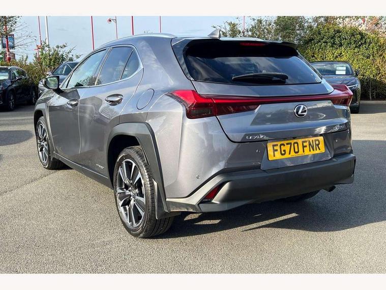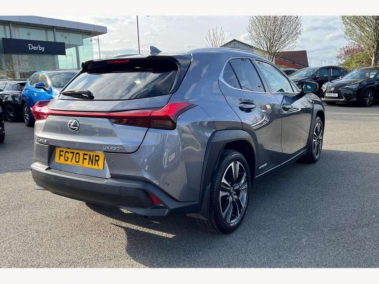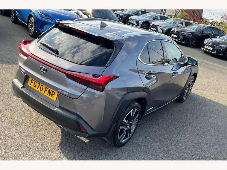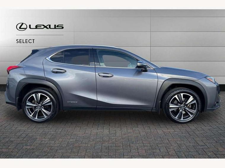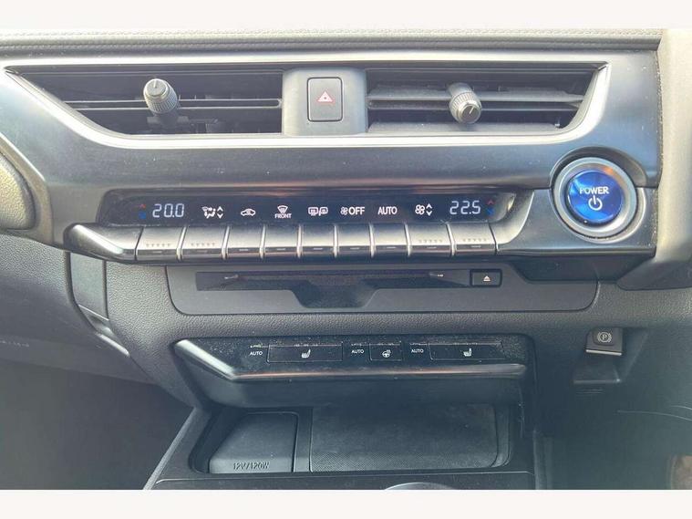 4 driving modes EV/Eco/Normal/Sport, 7" Lexus media display, 7" TFT instrument cluster, Analogue clock with GPS function, Apple car play/Android Auto, Compatible mobile phone bluetooth with audio streaming, E-call, Electric power steering (EPS) with speed sensitive features, Lane change flasher function, Lexus link connected services, Lexus safety systems + includes dynamic radar cruise control, pre collision system day and night, lane tracing assist, road sign assist, Push button start, Remote touch interface, Reversing camera with back guide lines, Trip computer, Vehicle Dynamics Integrated Management (VDIM), Vehicle Stability Control (VSC), 2 front USB and 2 rear USB charging points, 6 speakers, AM/FM and DAB radio, AUX socket with VTR compatibility, CD player, Acoustic windscreen, Aero stabilising arch mouldings, Aero stabilising rear lights, Aero ventilated wheels, Aluminium roof rails, Bi-LED (low and high beam) headlights with Auto High Beam (AHB), Body adhesive, laser screw welding and laser brazed roof structure, Electric adjustable/heated door mirrors, Front and rear one touch power windows, with anti-jam protection, Headlight cleaners, LED daytime running lights, LED front and rear fog lights, LED tail lights, Light green UV glass, Rain sensor windscreen wipers, Rear wiper, Shark fin roof aerial, Single hidden exhaust pipe, Towing preparation, 12V accessory port centre console and luggage compartment, 2 cup holders in the front and rear centre console, 2 x folding shopping bag hooks in boot, 2 x sun visors with vanity mirror and lamp, 4 x tie down hooks in the boot, 5 headrests, 6 way driver and passenger manually adjustable front seats, 60/40 split folding rear seat, Card holder installed in driver and passengers sun visors, Centre armrest with storage, Driver and passenger door pocket, Dual zone electronic climate control + Nano-E humidity sensor, Glovebox, Leather gear lever, Leather steering wheel, LED interior illumination, Map pockets in the rear of passenger's front seat, Premium fabric upholstery, Rear air vents with 2 USB chargers, Rear armrest with 2 cupholders, Storage tray under audio panel, Textile carpet mats, Tilt/reach adjustable steering column, Under deck storage, Under desk side storage, 2 x Isofix child rear seat restraints, 3x3 point rear seatbelts, Anti-lock braking system (ABS), BAS (Brake Assist System), Driver and front passenger 2 stage airbag, Driver and front passenger knee airbag, Driver/front passenger side airbags, EBD - Electronic brakeforce distribution, ECB (Electronically Controlled Brake System), Electric parking brake, Front adjustable seatbelt anchor points, Front and rear curtain shield airbags, Front outer seatbelt+pre-tensioners, force limiter+tension reduction: 3-point with active safety link to PCS, Hill start assist control (HAC), Passenger airbag cut-off device, Rear outer seatbelt+pre-tensioners, force limiter+tension reduction: 3-point with active safety link to PCS, Centre belt w/o pre tensioner+force limiter, Secondary Collision Brake (SCB), TRC (Traction Control), Tyre pressure warning, 2 x remote key fobs, Anti theft system : Alarm instruction sensor, glass breakage sensor and engine immobiliser, Locking wheel nuts, Remote central door locking, Speed sensitive auto door locking, Two motion door lock with double lock, VIN Window etching, 17" Alloy wheels, Tyre repair kit,