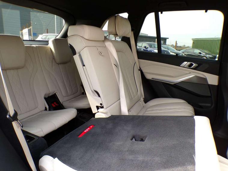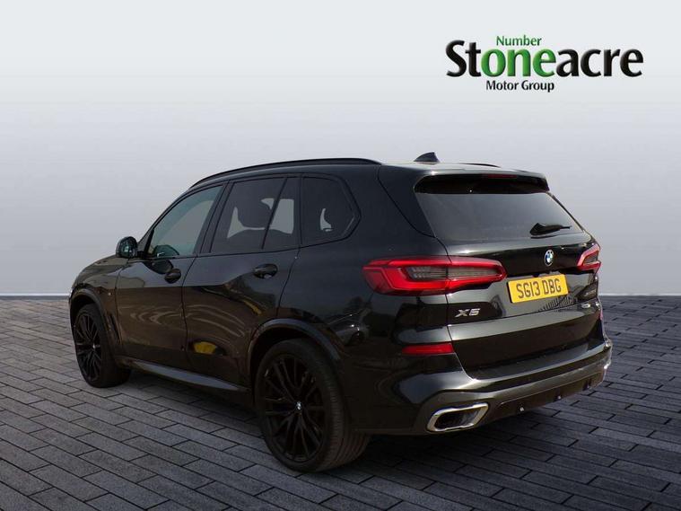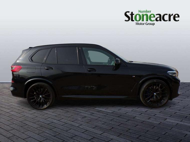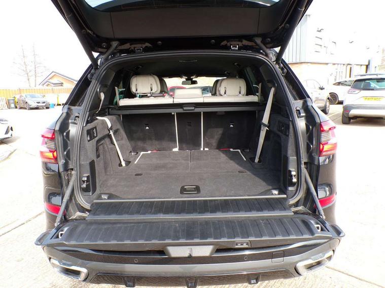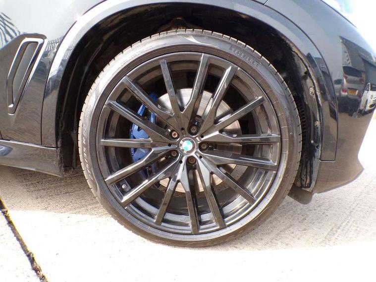 20GB hard disc drive (HDD) memory, Active guard plus, Attentiveness assist, Automatic tailgate with top hinged section open and manual bottom hinged section, BMW digital live cockpit professional - 12.3" digital instrument panel and 12.3" CID, with touch/voice command, BMW legal emergency call, BMW Online services, BMW Teleservices, Brake force display, Brake pad wear indicator warning light, Cruise control with brake assist, Enhanced bluetooth hands free facility with Telephony wireless charging, Front/rear park distance control, iDrive touch controller with shortcut buttons, Lights on warning, Oil sensor for level and grade, On board computer inc. average speed, fuel consumption, liquid crystal Info display, journey computer, outside temperature display, personal profile, Service interval indicator, Speed limiting function, Wi-Fi hotspot, Adaptive 2-axle air suspension, Diesel particulate filter, Double wishbone front axle, Drive performance control with ECO PRO comfort + sport mode, Safety battery terminal clamp, Sport automatic transmission, DAB Digital radio, Favourite buttons, Gesture control for infotainment system, USB connection, USB type A 1.5A in cupholder, USB Type C 3A in centre armrest, Active Air Stream kidney grille with high-gloss chrome, Adaptive air flap control bar in high-gloss black, Automatically dimming rear view mirror, Body colour bumpers, Body colour door handles, Body colour mirror housing, Dynamic brake lights with LED technology, Exhaust tailpipes - single, left and right with Chrome finisher, Follow me home headlights, Front and rear electric windows with open and close fingertip control, anti trap facility and comfort closing, Heat insulated glass, Heated windscreen washer jets, High gloss black outer and central air intakes on front bumper with pearlescent chrome finish, High gloss black Side elements, Intermittent rear wash/wipe, LED daytime running lights, LED fog lights, LED rear lights, M aerodynamic body styling, M designation on left and right front side panels, Pearlescent chrome front grille bars, Rain sensor with automatic headlight activation and windscreen wiper control, Satin aluminium side window graphic, Third brake light in rear spoiler, Welcome light carpet, X5 on left tailgate, xDrive designation on right tailgate, 12V - Power sockets with 2x centre console and 1x luggage compartment, 40:20:40 split folding rear seats, Ambient interior lighting with 6 pre-designed selectable lights including dynamic function, Anthracite headlining, Centre and rear interior light, Child seat ISOFIX attachment with rear outer seats includes top tether, Compartment in front of cupholder, Electric adjustable front seats + driver memory, Electrical steering column with adjustable height and length with activation and control on the steering column, Foldable rear centre armrest with 2 cupholders and storage compartment, Front and rear cupholders x 2, Front and rear door pockets, Front and rear door sill finishers with illuminated BMW designation, Front and rear door sill inlays with illuminated BMW M designation, Front and rear side armrest integrated into door trim, Front footwell lights, Front reading lights, Gearshift paddles on steering wheel, Light inside glove compartment, Lockable glove compartment, Luggage compartment floor panel with integral storage tray, Luggage compartment lighting, M leather steering wheel, M specific key, M specific pedals, M specific steering wheel, M specific velour floor mats, Make-up mirror lights, Multifunction controls for leather steering wheel, Multifunctional hooks, Seat back with flap pocket, Securing rings in luggage compartment, Storage bins on all doors, Storage tray and compartment with cover in centre console, Sunvisors with illuminated vanity mirrors, Toolkit located in luggage compartment, Connected Package Professional - X5, Expanded exterior mirror pack - X5/X5 M, Non-smokers pack - X5, ADB - Automatic Differential Brake, Airbags - driver/front passenger, rear and side, first and second row seats head airbags, front passenger seat airbag deactivation + knee airbag, Anti-lock braking system (ABS), Automatic Stability Control (ASC), Brake drying, Brake energy regeneration, Brake fade compensation, Braking pre-tensioning, Cornering brake control (CBC), Crash sensor activating central locking release, hazard warning lights, fuel cut off, interior lighting + activation of safety battery terminal clamp, Deformation zones - front and rear with door reinforcements and bumpers up to 2.5 mph, DSC - Dynamic Stability Control, Dynamic brake control, Dynamic Traction Control - DTC, Electromechanical parking brake with automatic drive away release and auto hold function, Electronic brake force distribution, Front and rear seatbelts with seatbelt stopper, seatbelt tensioner for front and outer rear seats and belt force limiter, Front head restraints with anti-whiplash, Height adjustable front seatbelts, Hill start assistant, Integrated brake system, M Sport braking system in blue high gloss + blue painted brake calipers with M designation, Mechanical child proof lock on rear doors, Passive protection for pedestrians, Seat occupancy detection for driver and passenger side, Side impact protection, Three 3 point inertia reel seatbelts, Two tone horn, Tyre pressure monitoring system, Ventilated front and rear disc brakes, Warning triangle and first aid kit, Closing system with central locking, Driver and front passenger door centre lock switch, Locking wheel bolts, Remote central locking, Thatcham 1 alarm system with remote control and engine immobiliser, Start/stop toggle diamond shaped trim finisher in pearl chrome,