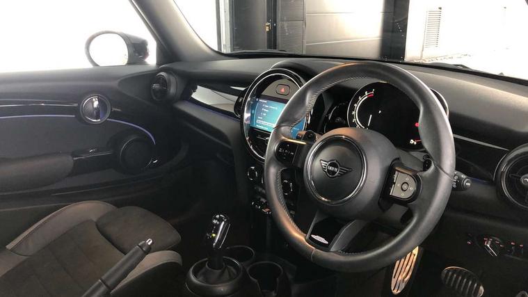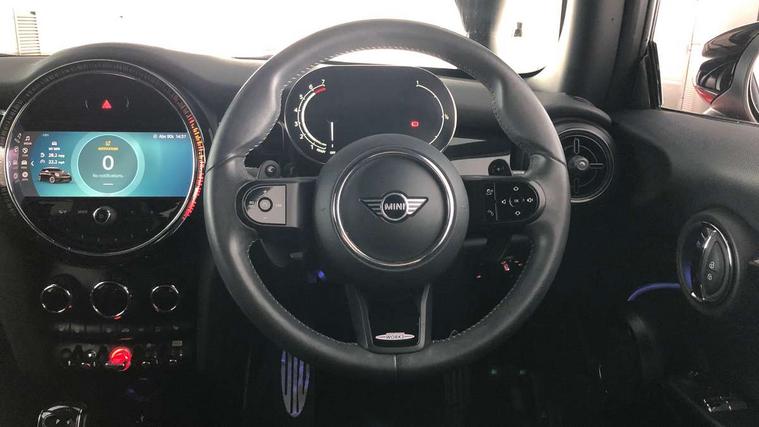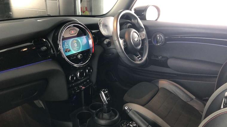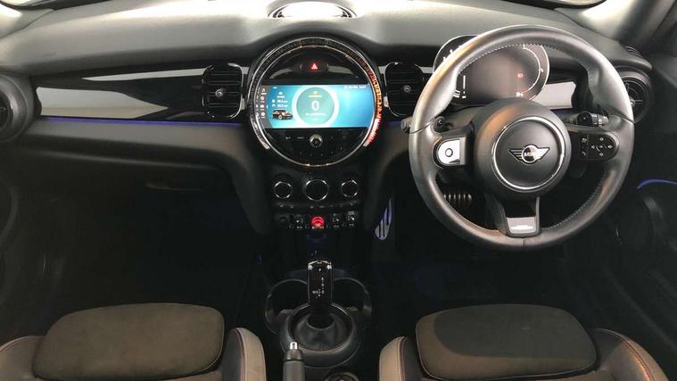 Apple CarPlay, Automatic start/stop function with brake energy recuperation, Compatible mobile phone bluetooth with audio streaming, Cruise control with brake assist, Electro-mechanical speed dependant steering assistance, Flexible car sharing preparation, Instrument cluster, MINI Driving Modes - centre toggle switch to control driving setting (sport, mid and green), Mini E-call, MINI TeleServices, On board computer, Rear park distance control, Service interval indicator, Double Vanos system, Fully variable valve control, High precision injection, Intelligent adaptive suspension, Performance Control, Steptronic sport transmission with double clutch and steering wheel paddles, 8.8" touchscreen with LED ring, FM tuner and DAB digital radio, 3rd brake light, Automatic headlight activation switch, Bonnet scoop, Dynamic brake lights, Electric front windows, Heated rear window, Heated windscreen washer jets, JCW Aerodynamic kit - Front and rear bumpers with sporty JCW styling and part-painted side sills with MINI John Cooper Works door sill finishers, John Cooper Works rear spoiler, LED headlight with closed ring and daytime driving lights, Metal door sill strips with Cooper S, Model logo Cooper S on right of tailgate, Radiator grille chrome border with honeycomb structure including S Badge, Rain sensor window wipers, Rear fog lights, Rear LED lights with union jack design, Rear window wiper, Side scuttle panel with integrated indicator, Sun/heat protection glass, Two central exhaust tailpipes with chrome finisher, White indicator lenses, 12V Accessory socket in centre console, 2 seat bench in 2nd row, 4 lashing eyes in luggage compartment, 60/40 split folding rear seat, Anthracite headliner including grab handles and clothes hooks, Carbon black colour line - Knee roll and door armrest, Chrome interior highlights, Cupholders, Front and rear isofix with front passenger airbag deactivation, Front floor mats in velour, Glove compartment, Height and length steering column adjustment, Interior lighting with 12 different colours across the dashboard, underneath door bezel with illuminated laser-engraved design on central display, JCW Sport seats with integrated headrests, adjustable thigh support and John Cooper Works logo, Leatherette gearshift lever and handbrake gaiters, LED reading lights, vanity mirror lights, front foot well light and spotlight on front seats, Manual air conditioning, Mechanical seat adjustment - forward/back & backrest for front seats and driver seat height adjust, Multifunction steering wheel, Passenger seat height adjuster, Single front passenger seat, Storage compartments in doors, Storage pocket on back of front seats, Sunvisors with vanity mirrors, Walknappa leather steering wheel with grey seam and John Cooper Works badge on Piano Black lower steering wheel spoke, Piano black exterior pack - Mini Hatchback Cooper S, 3 point seatbelts on all four seats, 6 Airbags - front, side, head and seat belt tensioners, Anti-lock braking system (ABS), DSC - Dynamic Stability Control, Front and rear disc brakes, Two tone horn, Tyre pressure monitoring system, Alarm system with tilt sensor, monitoring doors, bonnet interior and tailgate, Electronic vehicle immobiliser, Start/stop toggle with keyless go, Piano black interior trim, Tool kit,