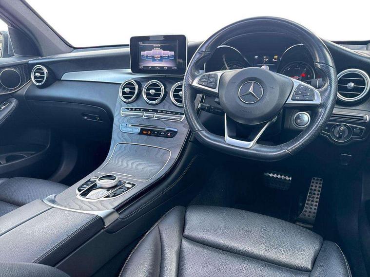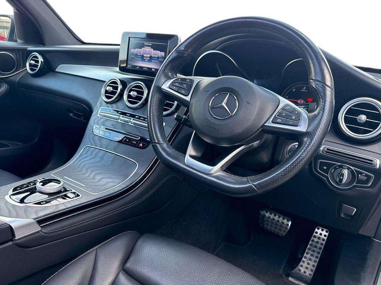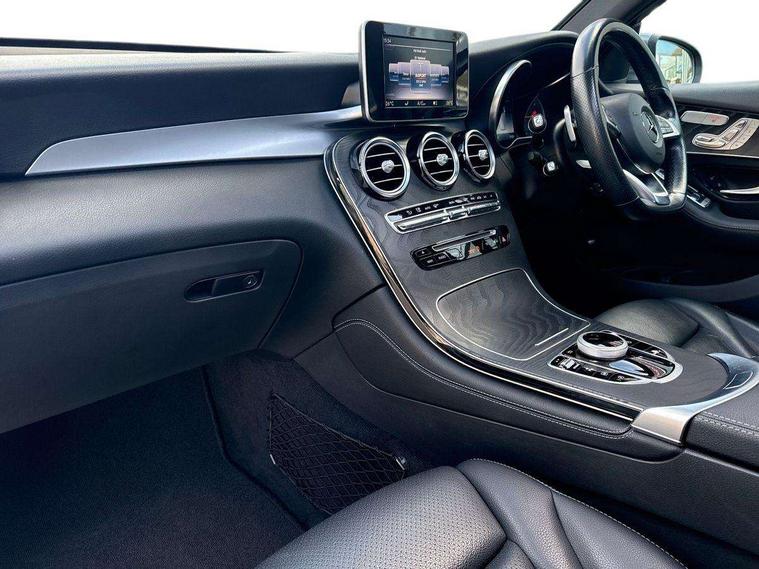 7" colour screen, Active park assist with parktronic system, Attention assist, Bluetooth interface for hands free telephone, Collision prevention assist plus, Crosswind Assist, DYNAMIC SELECT with a choice of driving modes (ECO, Comfort, Sport, Sport+ and Individual), Garmin Map Pilot navigation system with SD card, touchpad and voice control, Instrument cluster with 5.5-inch TFT multi-function display, Multi function trip computer, Outside temperature gauge, Power opening/closing tailgate, Remote boot release, Service indicator (ASSYST), Diesel particulate filter, 5 speakers, DAB Digital radio, Frontbass loudspeakers, Mercedes Audio 20 radio/single CD + telephone keypad, USB connection, Adaptive brake lights, Aerodynamic rear spoiler, AMG bodystyling, Automatic headlights, Body coloured bumpers, Chrome exterior trim, Electric panoramic sunroof with sunblind, Electric windows one touch open/close, Electrically adjustable and heated door mirrors, Exhaust tailpipe finisher, LED daytime running lights, LED rear lamps, Privacy glass (to rear of B post), Rain sensor windscreen wipers, Range adjustable headlights, Rear wiper, Tinted glass all round, 2 cupholders in front centre console, 2 way rear head restraints, 3 spoke flat bottom AMG steering wheel in nappa leather, 4 way adjustable front head restraints, 4 way electric lumbar support for driver and front passenger, 40:20:40 split folding rear seats, Ambient lighting, AMG floor mats, AMG sports seats, Auto Mercedes-Benz child seat recognition sensor, Automatic climate control, Black roof lining, Dividing net - rear, Electric front seat height adjustment, Front armrest with storage box, Front door sills with Mercedes Benz lettering, Gearshift paddles, Heated front seats, Height/reach adjustable steering column, Lockable/illuminated glovebox, Multifunction steering wheel, Rear top tether child seat ISOFIX attachment, Sports pedals with stainless steel surfaces and rubber studs, Sunvisors with illuminated vanity mirrors, Easy-pack load compartment cover, Interior lighting pack - GLC, Memory pack - GLC, Mirror pack - GLC, Storage pack - GLC, 3 rear 3 point seatbelts, ABS with Brake Assist, Active bonnet, Adaptive brake system, Brake calipers with Mercedes-Benz lettering + perforated brake discs, Child proof door locks, Drivers knee airbag, Dual stage driver/passenger airbags, Electronic parking brake, ESP with ASR, Front and rear seatbelt reminder, Front passenger seat occupancy sensor, Front side airbags, Hill hold function, Tyre pressure monitoring system, Warning triangle and first aid kit, Window airbags, Alarm system/interior protection/immobiliser, Automatic door locking, Keyless entry and keyless start, Remote central locking, Tyre inflation kit,