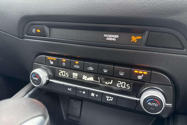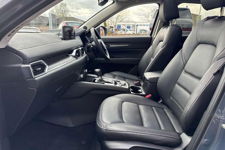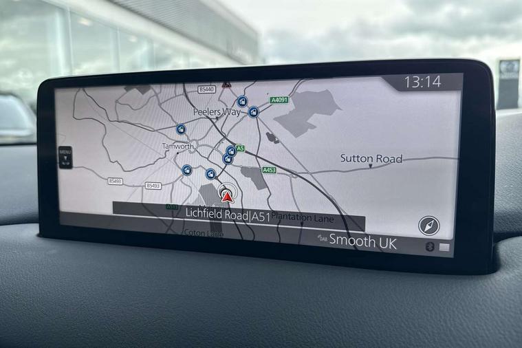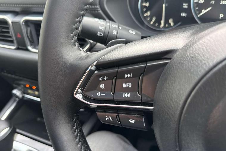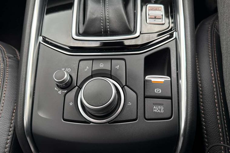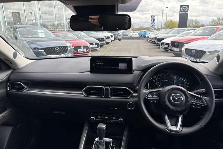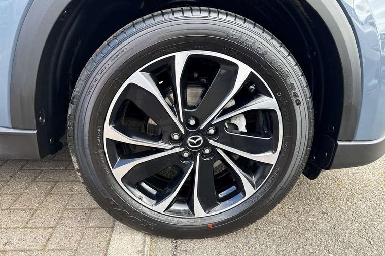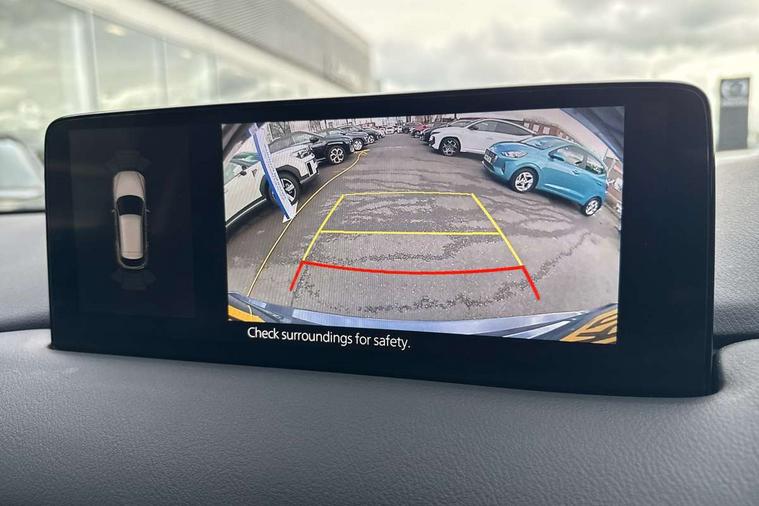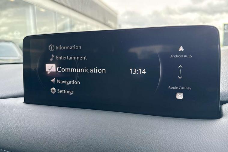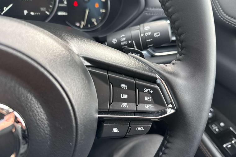 10.25" display with Mazda Connect infotainment, 7" colour TFT display, Advanced blind spot monitoring, Bluetooth connectivity with voice control, Collision prevention assist, Connected services, Cruising Traffic Support, Drive mode selector, Electric power steering, Emergency stop signalling system, Engine start/stop button, Forward collision warning, Front and rear parking sensors, Integrated navigation system, Intelligent speed assist, Lane departure warning system, Lane keep assist, Power liftgate, Qi wireless phone charging, Radar cruise control with Stop and Go, Rear cross traffic alert, Reversing camera, Service indicator, Traffic sign recognition (TSR), Trip computer, Windscreen projected colour active driving display (HUD) with memory, Wireless apple car play/android Auto, Cylinder Deactivation, i-stop, AM/FM radio, Bluetooth audio streaming, Bose premium sound system with 10 speakers, DAB Digital radio, Multimedia Commander including separate volume dial, Steering wheel mounted audio controls, Adaptive front lighting system, Auto dimming rear view mirror, Automatic headlights, Black inlay dashboard panel, Body colour door mirrors, Body colour roof spoiler, Body coloured front and rear black lower bumper mouldings, Coming/leaving home lighting function, Door mirror integrated indicators, Dual chrome tailpipes, Dusk sensitive headlamps, Electric front/rear windows with one touch auto up/down, Front grille in gloss black finish, Front grille in gloss black finish with chrome signature wing, Gloss black B and C pillars garnish, High beam assist, Intermittent rear wash/wipe, LED auto levelling, LED daytime running lights, LED front fog lights, LED Headlights, LED third brake light, Power folding and heated door mirrors, Power tilt/slide sunroof, Privacy glass (rear side windows only), Rain sensing front wipers, Rear side wing doors, Satin black side mouldings, Scuff plates, Shark fin antenna, Signature LED rear combination lights, Variable intermittent front wash/wipe, Vinyl with wood grain metal inlay door trim panel, Windscreen wiper de-icer, 12v electrical power outlet, 3 seat bench in 2nd row, 3 stage heated front seats, 40:20:40 Karakuri fold-flat seat system, 6 way electric adjustable passenger seat, 8 way electric driver seat with lumbar support + memory, Cargo room flat floor board with waterproof undertray, Driver seat power slide, recline and height adjustment, Driver, Front passenger and two rear grab handles with coat hooks, Driver/passenger front seatback pockets, Driver/passenger sunvisors + illuminated vanity mirrors (drivers with ticket holder), Dual zone climate control, Folding centre armrest with 2 cup holders, Front and rear door pockets, Front centre storage with two cupholders, Front passenger seat power slide, recline and height adjustment, Heated steering wheel, Humidity sensor, Illuminated glovebox, Interior dome light with integral spotlight, ISOFIX child seat anchorage points attached on outer rear seats, Karakuri tonneau cover, Leather upholstery, Leather wrapped steering wheel and gear knob, Light roof lining, Luggage compartment LED lighting, Luggage compartment power outlet, Paddle shifts, Rear air vents, Rear headrests, Rear seat recline, Roof mounted sunglasses holder, Single front passenger seat, Three height adjustable head restraints, Tilt/height adjustable steering wheel, USB Connectivity (2x front Type-C, 2x rear Type-B), White interior LED illumination lighting, 3 point front seatbelts with pre-tensioners, 3 rear 3 point seatbelts, ABS, Advanced Smart City Brake Support - SCBS, Child locks on rear doors, Driver and front passenger side airbags, DSTC-Dynamic Stability and Traction Control, Dual front airbags, Electronic brake force distribution, Electronic parking brake with auto hold, ESP, Front and rear curtain airbags, Front passenger airbag deactivation, G-Vectoring control, Hill hold assist, Seatbelt reminder front and rear, Single stage passenger airbags, Smart brake support with forward obstruction warning, Tyre pressure monitoring system, Automatic door locking when moving off, Deadlock, Immobiliser, Power door locks, Remote central locking, Smart keyless entry, Thatcham Cat.1 alarm, 19" diamond cut black alloy wheels, Tyre repair kit,