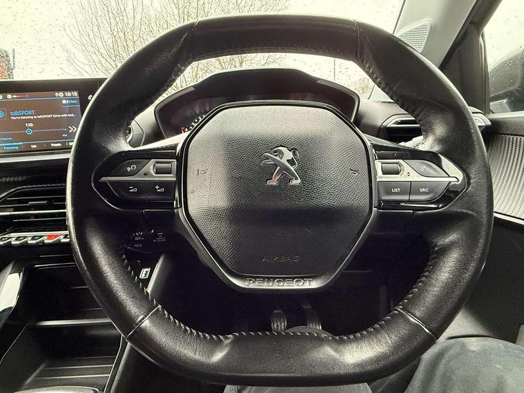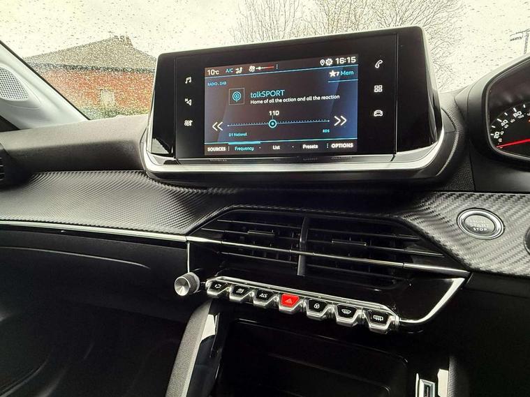 Carbon effect Dashboard, front and rear door panel finish, 16" Taksim alloy wheels, Space saver spare wheel, Automatic door locking when moving off, Automatic hazard light activation upon heavy brake application, Deadlock, Electronic code immobiliser, Thatcham Cat.1 alarm, 6 speakers radio with mp3 compatible, DAB Digital radio, USB socket, Voice recognition for radio, navigation and telephony features, 2x 2nd row ISOFIX child seat mountings, 3 rear 3 point seatbelts, ABS (Anti-lock Braking System) with EBD (Electronic Braking Distribution) and EBA (Emergency Braking Assistance), Child locking functionality on rear doors, Driver and passenger airbags with Passenger airbag deactivation system, Driver/front passenger side airbags, ESP with Hill Assist, Front and rear curtain airbags, Front and rear disc brakes, Front optimised safety headrests and 3 x rear retractable headrests with height adjustable, Front three point retractable seatbelts with force limiters, Manual parking brake, Pedestrians active safety brake, Tyre pressure sensor, 2 X Rear number plate lights, Automatic lights, Body coloured exterior door handles, Colour coded door mirror shells, Diamond black rear spoiler, Eco LED headlights, Electric front windows + one touch + anti-pinch, Electrically operated and heated door mirrors, Follow me home headlights, Front windscreen wiper with magic wash cleaning system, Gloss black rear cluster connecting strip, Headlights left on audible warning, LED daytime running lights with distinctive tooth design, Manual rear windows, Model designation badges front and rear, Radiator grille chrome chequered, Rear reversing lights, Rear view mirror, Rear windscreen wiper triggered automatically in reverse gear, Tailgate with heated rear windscreen and wiper blade, 1/3 to 2/3 split folding rear seats, 12V socket, Driver and front passenger comfort seats, Driver and front passenger seat manual adjustment in longitudinal and back rest angle, Driver seat mechanical height adjustment, Electric power steering with reach and rake adjustable steering column, Front interior light with 2 reading spotlights, Gear shift indicator, Leather steering wheel, Low centre console, Manual air conditioning, Map pockets on the backs of the front seats, Piano keys gloss black plated toggle switches to access main functions of the vehicle, Roof lining - light grey, Satin chrome gear lever, Seatbelt unfastened on the move audible and visual alert for front and rear seats, Tri material cloth upholstery, Bluetooth telephone facility, Driver attention warning, Exterior temperature indicator with ice warning, Lane keep assist, Mirror screen with mirror link, apple carplay and android auto, Multi function trip computer, Peugeot connect SOS and assistance, PEUGEOT i-Cockpit with 3.5" instrument panel display, PEUGEOT i-Cockpit with 7" capacitive colour touchscreen, PEUGEOT i-Cockpit with compact steering wheel, Programmable cruise control and speed limiter, Push button start, Rear parking sensors, Smart phone docking station, Speed limit recognition and recommendation,