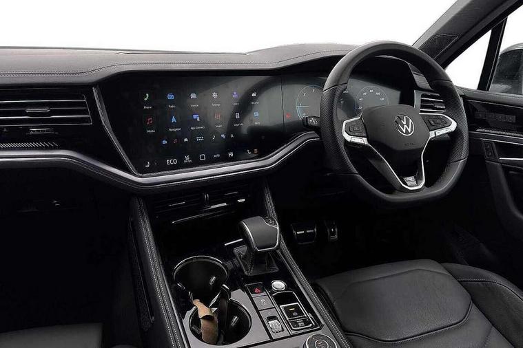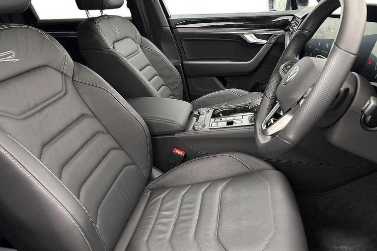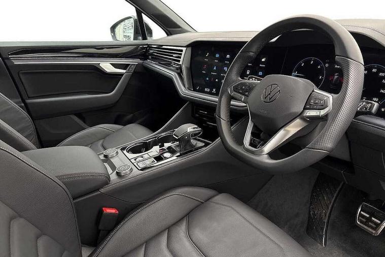 15" Screen Top infotainment system Premium (MIB3), Adaptive cruise control, Advanced driver attention and drowsiness monitor, Driver profile selection, Dynamic road sign display, E-Sim card for online connectivity, eCall emergency system, Innovision cockpit, Intelligent park assist, Mobile phone interface with inductive charging, Multi-colour Active Info display, Park Assist - Sensor controlled steering aid to assist parallel or bay parking, PAS, Warning signal and warning light for front and rear seatbelts not fastened, Wireless app connect, Adaptive chassis control, DAB Digital radio, Diversity antenna for AM/ FM reception, We Connect and We Connect Plus functionality, Automatic coming/leaving home lighting function, Automatic headlights, Black door mirrors, Black style comfort bumpers, Dynamic headlight range control with dynamic cornering light, Electric front tilt/slide panoramic sunroof and fixed rear sunroof, Electrically power adjustable, heated, folding, auto dimming, front passenger exterior door mirror lowering function, External USB type C socket and charging sockets, Gloss black roof rails, HD LED Matrix beam plus digital headlight projection with variable light distribution, Headlight washers, Heat insulating darkened glass in side and rear windows, Highway light, LED 3rd brake light, LED daytime running lights, LED rear combination lamp with variable lighting functions and special styling, Poor weather light, Privacy glass for rear side windows and rear window, tinted glass from B pillar backwards - 80%, Rain sensor, Rear exhaust tailpipe, Rear fog light with back up light on both sides, Rear light bar and illuminated logo, Rear side wing doors, Rear wiper, Stainless steel door sill protection, 12V socket in centre console, 3 rear headrests, 3 seat bench in 2nd row, 4 zone climate control, Airbag label on sun visor and B-pillar, Brushed stainless steel pedals, Double sun visors with illuminated vanity mirrors, Front + rear carpet mats, Front centre armrest, Leather wrapped multifunction sports steering wheel, heated, with touch control and shift paddles, Mechanical rear seat release, Power adjustable lumbar support in front, Power seats in front, right side with memory features and seat cushion depth adjustment, Rear seat backrest and split folding with center armrest, Single front passenger seat, Extra acoustics pack - Touareg, Memory pack plus - Touareg, 3 point seatbelts, outer rear with ECE lable, ABS, Child locks on rear doors, Curtain airbags, Driver and front passenger safety-optimised head restraints, Driver/Front Passenger airbags, Extended pedestrian protection measures, Front assist, Front seat side impact airbags, Generative braking with start and stop system, Height adjustable 3 point front seatbelts with pre tensioners, Passenger airbag deactivate switch, Three 3 point rear seatbelts, Two tone horn, Warning triangle and first aid kit, Alarm system with interior protection, Easy open and close sensor controlled luggage compartment opening and closing with remote unlocking, Keyless Access Keyless locking and starting system with SAFELOCK, Aluminium decorative inserts, Black decorative trims, Gloss black decorative inserts in centre console, Tool kit,