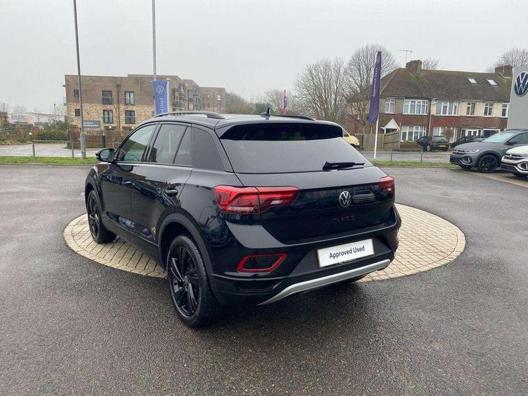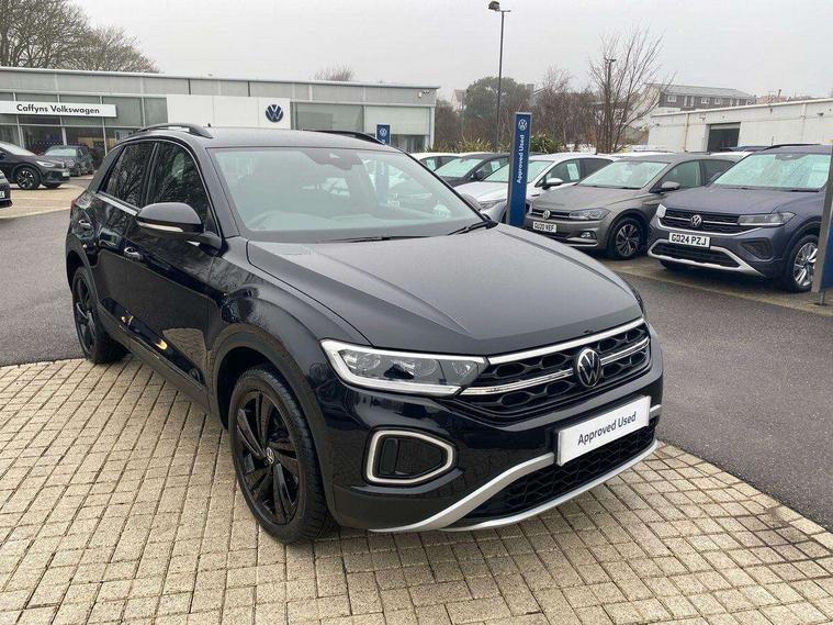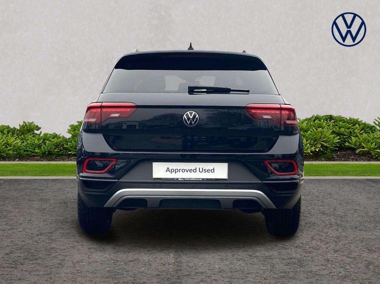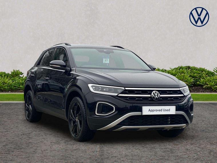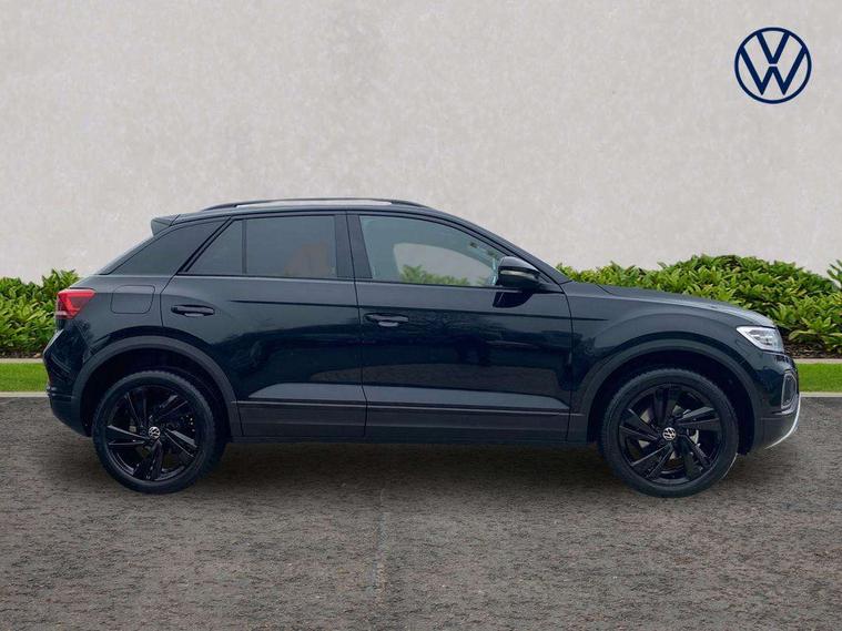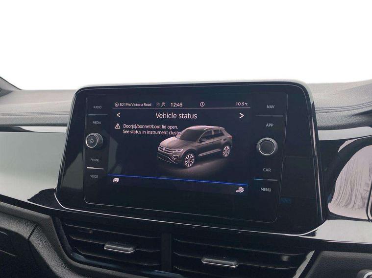 10.25" Digital cockpit pro, Advanced driver attention and drowsiness monitor, Emergency call service, Lane keeping system Lane Assist, Mobile phone interface, Modified key software - reduce switch off time for key status change to Long no motion, Online services, Park assist including front and rear parking sensors, Power assisted speed sensitive steering, Service interval indicator, Tailgate/trunk lid release from outside, Think blue trainer driver tips and journey analysis, Warning sound and light for front seatbelts unfastened, Wireless app connect, Battery regeneration during braking, Start/stop function with battery regeneration, DAB Digital radio, Diversity antenna for FM reception, Front and rear 6 speakers, Music playback - MP3, WMA and AAC files, Premium USB cable in choice of either Apple or Android smartphone compatibility, SD card slot, Simultaneous pairing of 2 compatible mobile devices, Title and cover art display, We Connect and We Connect Plus functionality, Auto dimming interior rear view mirror, Automatic hazard lights activation under emergency braking, Automatic headlight control with LED separate daytime running lights with coming/leaving home function, Body colour sports bumpers with silver metallic underbody fascia, Body coloured exterior mirror housings and door handles, Dynamic headlight range control with self adjusting whilst driving, Electrically adjustable and heated door mirrors, Extended roof spoiler, Exterior mirrors aspherical on driver side, convex on front passenger side, External USB type C socket and charging sockets, Front windscreen wiper with intermittent wipe and 4 position delay, Heated rear window, LED 3rd brake light, LED rear combination lamps, LED rear number plate lights, Light mode for poor weather, rain, fog or snow, Power windows with comfort operation and circuit breaker, Privacy glass for rear side windows and rear window, Rain sensor, Rear exhaust tailpipe, Rear fog light on one side and reversing lights on both sides, Rear side wing doors, Rear wash/wipe with intermittent wipe setting, Remote electrically foldable door mirrors, puddle lights and reverse activated passenger's door mirror, 12V power socket in centre console, 3 rear head restraints, 3 seat bench in 2nd row, 4 load lashing points in luggage compartment, Air care climatronic air conditoning system with active combination filter and 2-zone temperature control, Chrome plated radiator grille inserts, air vent surrounds and light switch surrounds, Door and side trim panel with leatherette insert, Drawer under drivers seat, Front + rear carpet mats, Front centre armrest, Front comfort sports seats, Front cupholders x 2, Front footwell illumination, Front seat back storage pockets, Glove compartment door with light, Instrument lighting, white adjustable panel illumination, Interior ambient lighting and surround lighting, Interior light delay, Isofix child seat preparation, Leather gearshift handle, LED interior light with switch off delay/dimmer and 2 front/rear LED reading lights, Load-through provision with cup holder when folded down ('Unsplit rear seat bench, split folding backrest, with centre armrest), Luggage compartment lighting, Non-folding front passenger seat backrest, Single front passenger seat, Storage compartment in left and right luggage area, Storage compartment in rear doors, Storage compartments in driver and front passenger doors, Sunvisors with illuminated vanity mirrors, Variable boot floor, height adjustable and removable, Driver assistance pack without proactive passenger protection - T-Roc, 3 point height adj front seatbelts + pretensioners, 3 point seatbelts in outer rear with ECE label, ABS, Child locks on rear doors, City emergency braking and pedestrian monitoring, Driver and front passenger airbag with front passenger airbag deactivation, Driver and front passenger safety-optimised head restraints, Drivers seatbelt reminder, Electronic parking brake, Electronic Stability Control (ESC) inc EDL (Electronic Differential Lock) and ASR (Traction Control), Front and rear passengers curtain airbag system including front side airbags, Predictive pedestrian protection, Rear disc brakes, Two tone horn, Tyre pressure loss indicator, Volkswagen roadside assistance, Deep iron grey decorative inserts in dashboard, centre console and front door trim panels, Trims for alloy wheels,