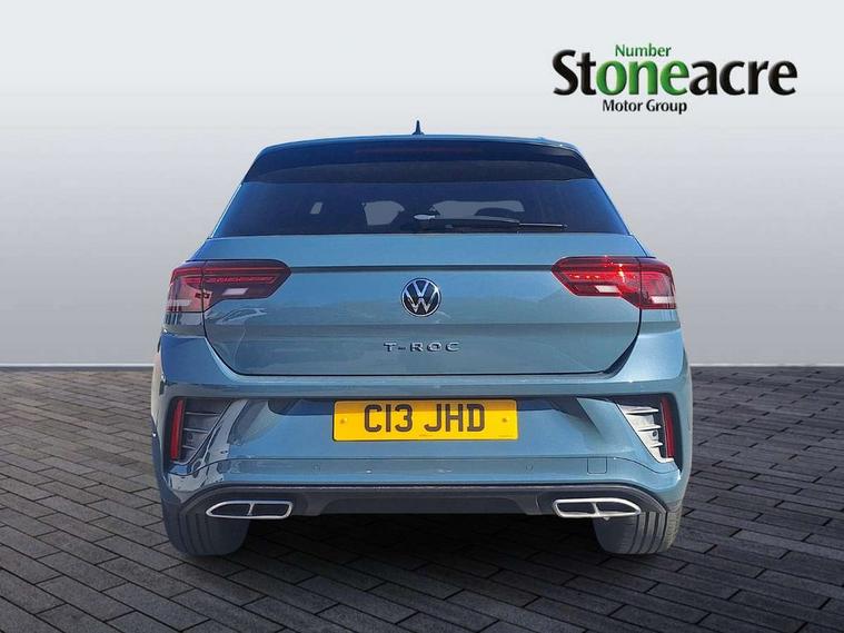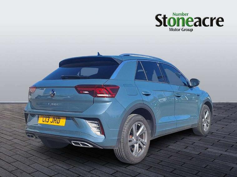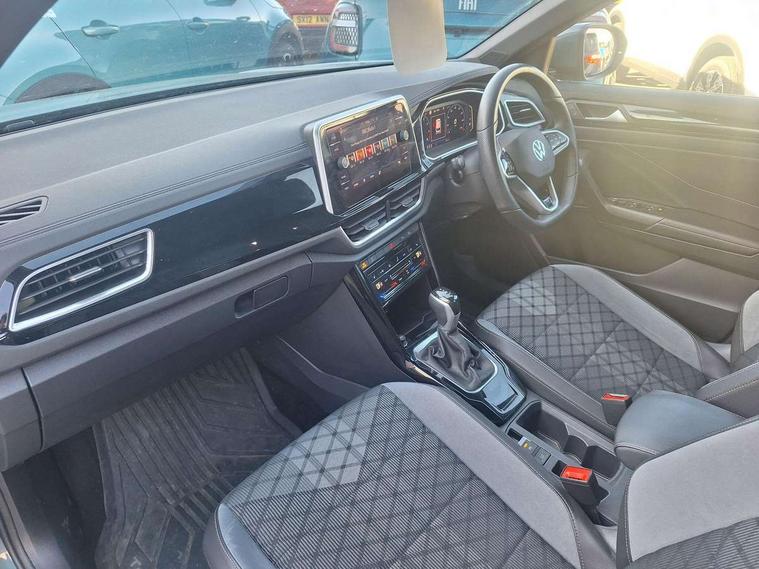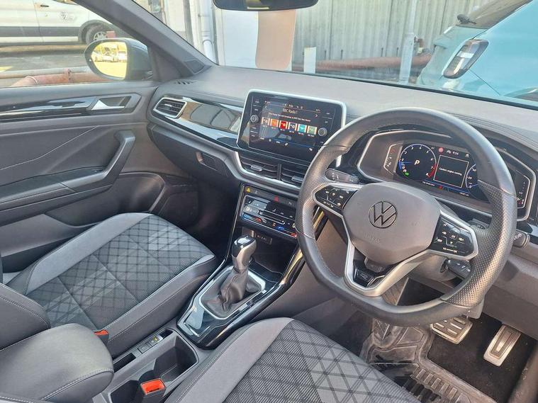 10.25" Digital cockpit pro, Bluetooth mobile phone interface, Driver alert system with fatigue detection, Driver tips and journey analysis, Emergency call service, Lane keeping system Lane Assist, Modified key software - reduce switch off time for key status change to Long no motion, Online services, Park assist including front and rear parking sensors, Service interval indicator, Tailgate/trunk lid release from outside, Think blue trainer driver tips and journey analysis, Warning sound and light for front seatbelts unfastened, Wireless app connect, Battery regeneration during braking, Start/stop function with battery regeneration, Diversity antenna for FM reception, Front and rear 6 speakers, Music playback - MP3, WMA and AAC files, Premium USB cable in choice of either Apple or Android smartphone compatibility, SD card slot, Simultaneous pairing of 2 compatible mobile devices, Title and cover art display, We Connect and We Connect Plus functionality, 3rd brake light, Auto dimming interior rear view mirror, Automatic hazard lights activation under emergency braking, Automatic headlight control with LED separate daytime running lights with coming/leaving home function, Extended roof spoiler, Exterior mirrors aspherical on driver side, convex on front passenger side, External USB type C socket and charging sockets, Front windscreen wiper with intermittent wipe and 4 position delay, Heated rear window, LED Plus headlamps, LED rear combination lamps, LED rear number plate lights, LED tail lamp rear comination lamps, Power windows with comfort operation and circuit breaker, R-Line design body coloured bumpers, Rain sensor, Rear exhaust tailpipe, Rear fog light on one side and reversing lights on both sides, Rear side wing doors, Rear wash/wipe with intermittent wipe setting, Remote electrically foldable door mirrors, puddle lights and reverse activated passenger's door mirror, 12V power socket in centre console, 3 rear head restraints, 3 seat bench in 2nd row, 4 load lashing points in luggage compartment, Air care climatronic air conditoning system with active combination filter and 2-zone temperature control, Black roof lining, Chrome plated radiator grille inserts, air vent surrounds and light switch surrounds, Door and side trim panel with leatherette insert, Drawer under drivers seat, Front + rear carpet mats, Front centre armrest, Front cupholders x 2, Front footwell illumination, Front reading light, Front scuff plates with R logo, Instrument lighting, white adjustable panel illumination, Interior ambient lighting and surround lighting, Interior light delay, Isofix child seat preparation, Leather gearshift handle, Load-through provision with cup holder when folded down ('Unsplit rear seat bench, split folding backrest, with centre armrest), Luggage compartment lighting, Single front passenger seat, Stainless steel pedals, Storage compartment in left and right luggage area, Storage compartment in rear doors, Storage compartments in driver and front passenger doors, Sunvisors with illuminated vanity mirrors, Variable boot floor, height adjustable and removable, Driver assistance pack without proactive passenger protection - T-Roc, 3 point height adj front seatbelts + pretensioners, 3 point seatbelts in outer rear with ECE label, ABS, Child locks on rear doors, Driver and front passenger airbag with front passenger airbag deactivation, Driver and front passenger safety-optimised head restraints, Drivers seatbelt reminder, Electronic parking brake, Electronic Stability Control (ESC) inc EDL (Electronic Differential Lock) and ASR (Traction Control), Front and rear passengers curtain airbag system including front side airbags, Front assist with city emergency braking and pedestrian monitoring, Front seat side impact airbags, Hill start assist, Predictive pedestrian protection, Rear disc brakes, Single tone horn, Tyre pressure loss indicator, Volkswagen roadside assistance, Alarm with interior protection, Anti-theft alarm system with interior monitoring, backup horn, and towing protection, Remote central locking with SAFELOCK, radio remote control with 2 remote control folding keys, Trims for alloy wheels,