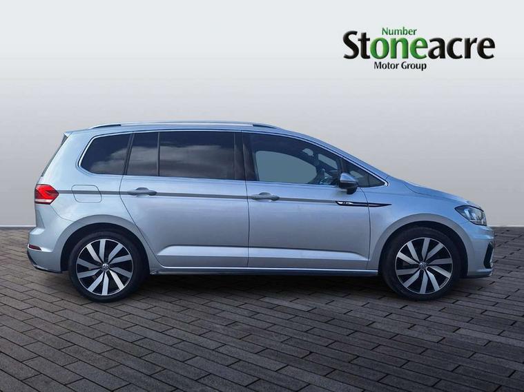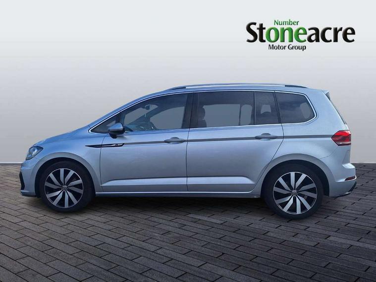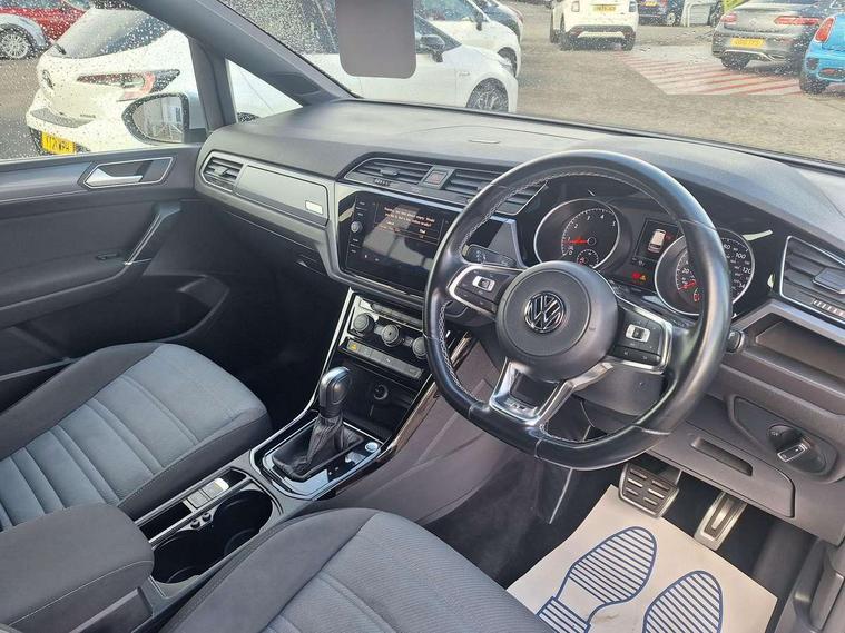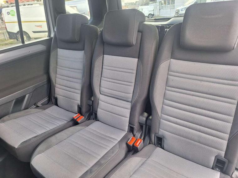 Adaptive cruise control, Audible lights on warning, Bluetooth telephone connectivity, Car information display, Driver alert system, Driver electronic voice amplification function, Electronic odometer, External temperature gauge, Flat tyre indicator, Mobile pairing with SMS function, Multi function computer, Multifunction colour display, Rev counter with fuel gauge, Speed limiter, Speed sensitive power steering, Stop/start system, Think blue trainer driver tips and journey analysis, Trip and service interval display, Petrol Particulate Filter, XDS electronic differential lock, 4x20 watt output, 8 Speakers, Audio Connectivity System, DAB Digital radio, MP3/WMA compatability, Multi device interface, SD card slot, Title and cover art display, USB connection, Aerial integrated into side window, Body colour bumpers, Body colour door handles, Body colour door mirrors with integral indicators, Chrome fog light surround, Chrome lower front bumper insert, Chrome trimmed front air intake surrounds, Chrome trimmed radiator grille louvre inserts, Chrome trimmed side windows, Daytime running lights, Dusk sensor + auto driving lights, Electric folding door mirrors with reverse activated kerb-view adjustment on passenger's door mirror, Front and rear electric windows, Fully galvanised body, Gloss black finish B pillar, Green tinted heat insulating glass, High level third brake light, Range adjustable headlights, Rear tinted glass from B-pillar backwards approx 65% tinted, Rear wash/wipe with intermittent wipe setting, Silver roof rails, Tailgate wiper- reverse gear activation, Twin chrome exhaust tailpipes, Unique R Line badging, Windscreen wipers intermittent wipe, 12V power point for Row 2, 12V socket in luggage compartment, 2 individual fold flat 3rd row seats, 2 three point seatbelts in 3rd row, 2nd row centre armrest, 2nd row centre seat converts into table, 3 single slide/fold/removable 2nd row seats, 3 Zone electronic climate control with automatic air recirculation, 3x3 point seatbelts on 2nd row with height adjust on outer seats, 4 boot load lashing points, 4 way adjustable front head restraints, 4 way driver/front passenger adjustable head restraints, 5 headrests, Aluminium kick plate, Ambient lighting in door trim, Black roof lining, Driver and front passenger under seat drawer, DSG Paddle Shifts, Dust/pollen filters, Foldable front passenger seat backrest, Front + rear carpet mats, Front and rear reading lights, Front centre armrest with storage compartment, Front comfort seats with lumbar support, Front cupholders x 2, Front passenger seat height adjust, Front seat R Line logo with rear seat backrest, Front seat storage pockets, Front seatback folding tables, Front seats with R-Line logo, Grey stitching on steering wheel, Height adjustable driver's seat, Height/reach adjust steering wheel, Illuminated glovebox, Illuminated vanity mirrors, Instrument lighting white adjustable panel illumination with red night time illumination, Interior light with delay, Isofix on 3rd row seats, Large storage compartment in roof console, Leatherette on rear of front seats, Low tunnel 2nd row seat, Luggage compartment lighting, Media box in dashboard on passenger side, Multi storage in passenger/luggage areas, Multi-function centre console with storage facilities, Multifunction leather trimmed steering wheel including leather trimmed gear knob with 3.5" screen with multifunction computer, R-Line door sill protectors, Retractable luggage cover, Split folding rear seat backrests, Stainless steel pedals, Storage bins on all doors, Convenience Pack - Touran, Mirror pack - Touran, R line styling pack - Touran, 3 point height adjustable front seatbelts, Auto hold function, Automatic post collision braking system, Door open warning reflectors, Driver/Front Passenger airbags, Drivers knee airbag, EDL + ASR, Electronic parking brake, Energy recovery system, ESC with ABS, First aid kit, Front and rear (row 2) curtain airbags, Front assist including city emergency braking, Front seat side impact airbags, Front/rear disc brakes, Hill hold control, Hydraulic Brake Assist (HBA), Loose wheel warning function, Manual passenger airbag deactivation function, Pre crash preventive occupant protection, Seatbelt warning lamp and buzzer, Traction control, Two tone horn, Warning triangle, Alarm with remote central locking and interior protection, Electronic engine immobiliser, Black lead grey decorative inserts dash and door panel, Chrome plated instrument surrounds, Embroidered emblems to headrestraints, 18" Marseille alloy wheels with mobility tyres and anti-theft wheel bolts,