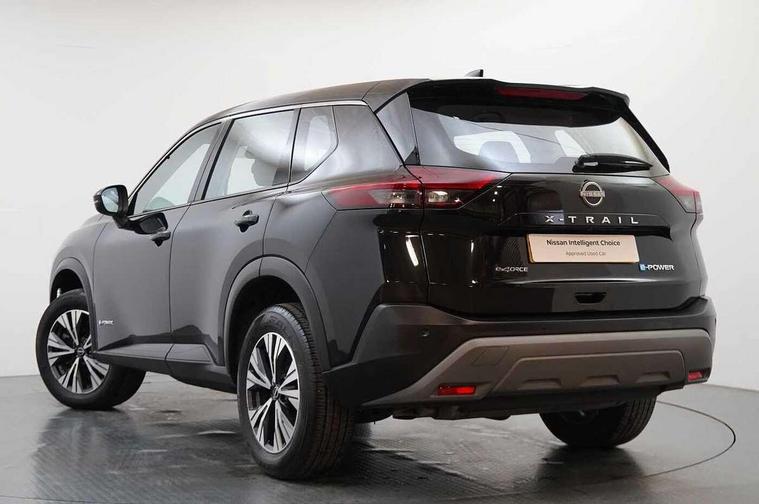 7" High definition full colour TFT screen combimeter, Android auto/Apple CarPlay (Wired), Blind spot warning, Drive modes (sport, normal, eco, snow, off-road), e-Pedal step, Electric speed sensitive power steering, Emergency and breakdown call, Front and rear parking sensors, Idle stop/start system, Intelligent Cruise control (ICC), Intelligent driver alert system, Intelligent forward collision warning, Intelligent lane departure warning, Intelligent lane intervention, Intelligent lane keep assist, Maximum speed limiter, Moving object detection, Nissan connect 8" touchscreen infotainment system, Push button starter, Rear cross traffic alert, Rear view camera, Traffic sign recognition with legal speed adjustment, Trip computer, 6 speakers, AM/FM audio system with DAB, Bluetooth audio streaming, Front USB connections (Type-A and Type-C), 3rd brake light, Auto dimming rear view mirror, Auto rear wiper when reversing, Body colour mirror caps, Body coloured door handles, Bodyside mouldings, Chrome side window finisher, e-4ORCE badging, e-POWER badging, Electric auto folding door mirrors, Electrically adjustable and heated door mirrors, Follow me home headlights, High beam assist, Intelligent auto headlights, LED daytime running lights, LED Headlights, LED rear lights, One touch front and rear electric windows with remote opening and closing, Partially body coloured bumpers, Rain sensing wipers, Rear reversing light (bulb lighting), Rear roof spoiler, Rear side wing doors, Rear styling plate, Shark fin antenna, Splash free wipers, Three blink turn signal, 12v power socket in dashboard and luggage, 2 seat bench in 3rd row, 3 bench rear seats in 2nd row, 3 rear headrests, 60/40 split folding rear seat bench, Butteryfly console, Chrome interior door handles, Cloth monoform upholstery, Driver and front passenger sunvisors with illuminated vanity mirrors, Driver seat back pocket, Dual zone automatic climate control with pollen filter, Front centre console and armrest, Front cupholders, Front door with bottle holders, Height adjustable driver's seat, Height adjustable front headrests, Height adjustable passenger seat, Leather shift knob, Leather steering wheel, Luggage space lighting, Multifunction steering wheel, Passenger seat back pocket, Rear armrest with 2 cupholders, Rear door bottle holders, Single front passenger seat, Tilt/telescopic adjustable steering wheel, Two rear isofix child seat anchorage points with top tether, 3x3 point rear seatbelt pretensioners + load limiters, ABS with EBD and brake assist, Active brake limited slip, Auto hold function, Child locks on rear doors, Curtain and front side, far side airbags, Driver and passenger airbags, Driver, passenger and 2nd row rear seat belt reminder, Electronic parking brake, Front seatbelt pretensioners + load limiters, Height adjustable front seatbelts, Hill start assist, Intelligent blind spot intervention, Intelligent front emergency braking with pedestrian, cyclist recognition and junction assist, Intelligent rear automatic braking, Tyre pressure monitoring system, Vehicle dynamic control, Engine immobiliser, Intelligent Key, Remote central door locking with deadlocking, Thatcham Cat.1 alarm, 18" Diamond cut alloy wheels, Tyre puncture repair kit,