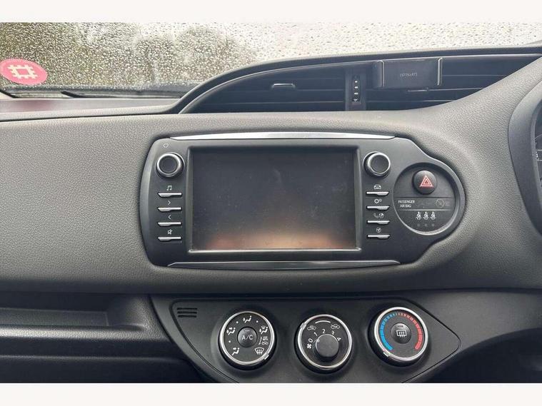 Bluetooth system, Cruise control, External temperature gauge, Fuel indicator with low level warning, Lane departure warning system, Lights on warning, Multi-information display, Power Steering, Rear parking sensor, Rear view camera, Road sign assist - RSA, TFT display screen, Touch 2 Go navigation system, Trip computer, 6 speakers, Auxiliary input socket, DAB Digital radio, Steering wheel mounted audio/telephone controls, Touch 2 touchscreen Radio with iPod connectivity, USB connection, 2 speed front wipers + intermittent wipe, Auto high beam, Auto up and down function on drivers window, Body colour bumpers, Body colour door handles, Body coloured door mirrors, Chrome fog light surround, Daytime running lights, Door mirror integrated indicators, Drivers window one touch up/down, Electric adjustable heated door mirrors, Electric front windows, Follow me home headlights, Front fog lights, Green tinted glass, Heated rear windscreen, Projector headlights, Rain sensitive windscreen wipers, Rear wiper, Turning signal integrated indicators in door mirrors, 3 spoke leather steering wheel, 60/40 split folding rear seat, Active headrests, Boot light, Cloth upholstery, Driver seat height adjust, Driver/passenger vanity mirrors with covers, Front cupholders x 2, Front map reading lights, Front seats with lumbar support, Glovebox, Height adjustable front head restraints, Height adjustable rear seat head restraints (x3), Isofix system on outer rear seats, Leather gear knob, Manual air conditioning, Rear cupholder, Removable rear parcel shelf, Sliding front seats, Tilt/telescopic steering column, 3 point seatbelts on all rear seats, ABS+EBD+Brake assist, Collision mitigation braking system, Curtain airbags, Driver and passenger airbags, Drivers knee airbag, Emergency brake light system (EBS), Front passenger airbag on/off switch, Front seatbelt reminder, Front side airbags, Height adjustable front seatbelts with pre-tensioners and load limiters, Hill start assist control (HAC), Passenger airbag deactivate switch, Rear child proof door locks, Rear seat belt reminder, Road sign information display, Seatbelt warning lamp and buzzer, Toyota safety sense including Road sign assist, Pre collision system, auto high beam and lane departure alert), Tyre pressure monitoring system, Vehicle stability control VSC + traction control, Engine immobiliser, Remote central locking, Instrument panel in grey, Space saver spare wheel,