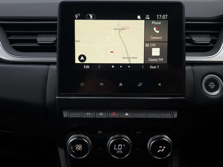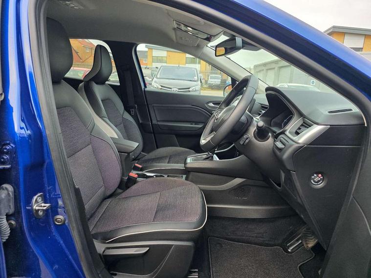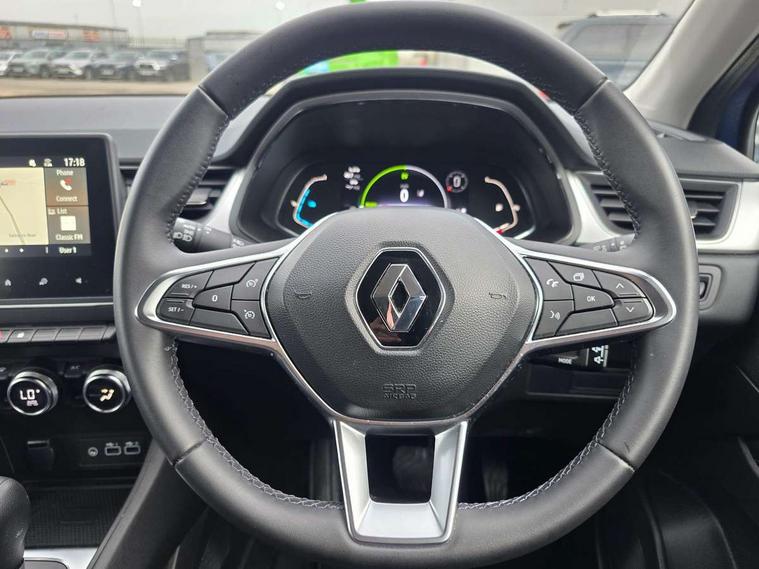 7" TFT Driver information display, Cruise control + speed limiter, EasyLink 7" touchscreen with navigation, google search and traffic information, Eco mode, EV button to activate pure mode, Front and rear parking distance sensors, Gear change indicator, Lane departure warning system, Lane keep assist, Multisense with 3 driving modes + 8 ambient lighting colours, Rear view camera, Renault automatic emergency assist, Smartphone integration compatible with Apple CarPlay and Android Auto, Traffic sign recognition with over speed prevention, Trip computer, Variable assistance power steering, Wireless phone charger, DAB Radio with Bluetooth and USB, 2 reverse gear LED lamps and 1 rear LED fog lamp in the bumper, Auto dimming rear view mirror, Automatic front wipers with rain sensors, Automatic headlights, Automatic high/low beam, Black side door protection with chrome effect, Body colour door handles, Body coloured bumpers, Body coloured door mirrors, C Shaped LED front and rear lighting signatures with 3D effect on the rear lights, Chrome around front air deflectors, on front wing deco element and window lining, Day time running light, Drivers one touch window with anti-pinch feature, Extra tinted glass in rear windows and tailgate, Front and rear electric windows, Front grille with chrome upper trim, Full LED headlights, Grey front and rear skid plate, LED high level brake lights, LED rear fog lights, LED turn indicators on door mirrors, Longitudinal roof bars, Rear side wing doors, Rear wiper, Shark fin antenna, 12V Accessory socket, 60/40 split and fixed base rear seat bench, Automatic climate control with one touch demist function and air quality regulator, Central rear LED rooflight with 3 reading lights, Front head restraints, Glovebox, Heating system with pollen filter, Height adjustable driver's seat, Height adjustable passenger seat, Height/reach adjust steering wheel, ISOFIX child seat fixing points on rear outermost seats, LED front roof lights, Middle console with armrest and storage, Modular boot floor, Rear air vents, Rear head restraints, Single front passenger seat, Sliding rear bench, Synthetic leather steering wheel, Synthetic leather/cloth upholstery, 3 rear seatbelts, ABS+EBA, AEBS - active emergency braking system, B Brake Mode - One pedal driving with increased regenerative braking, Distance warning alert, Driver and front passenger and 3 rear passengers seatbelt reminder, Driver and front passenger, side, head and curtain airbags, Driver height adjustable seat belt, Electric parking brake with auto hold function, Electronic stability control, Front dash warning indicator in case of heavy braking, Front driver and passenger side airbag deactivation, Hill start assist, Manual passenger airbag deactivation function, Rear door and window child locking function for rear door, Tyre pressure warning light, Anti drill door locks and locking fuel cap, Central door locking, Deadlocking system, Hands free keycard with push button and start/stop function, RAID (Renault Anti-Intruder Device) automatic door locking, Black soft touch dashboard, 18" Pasadena diamond cut alloy wheels with grey inserts,