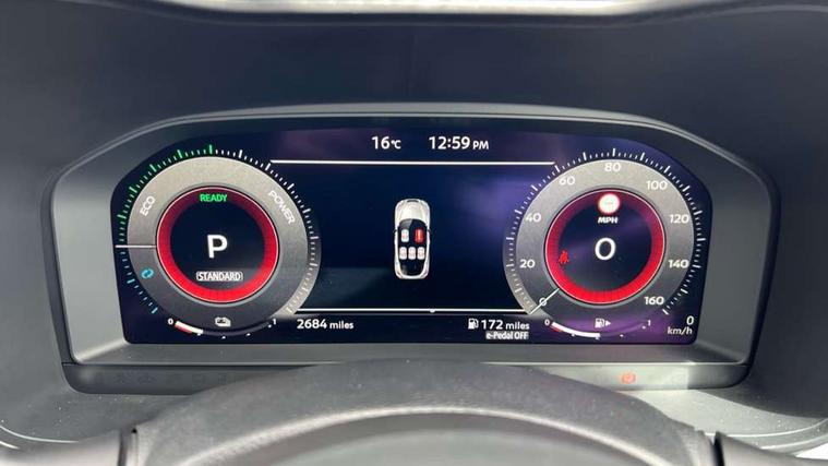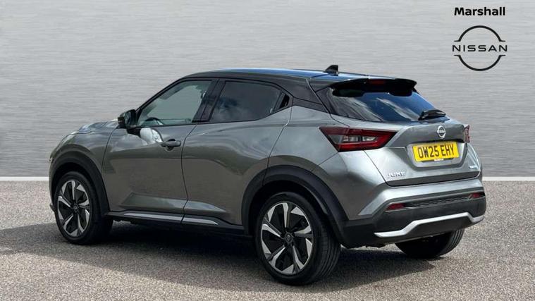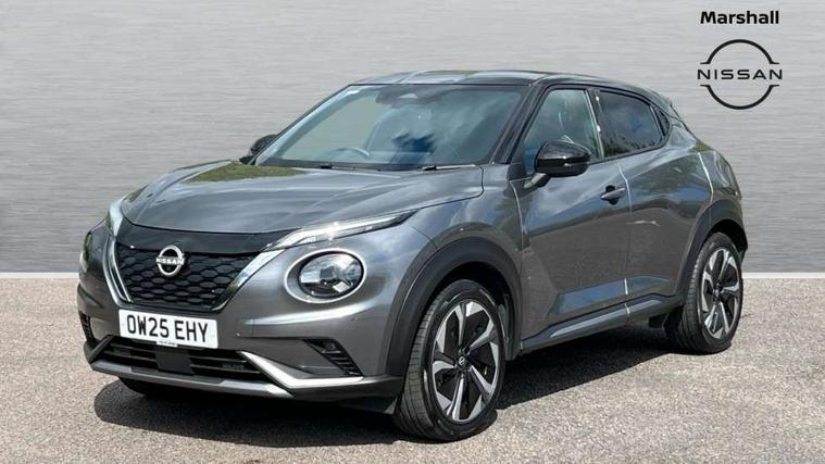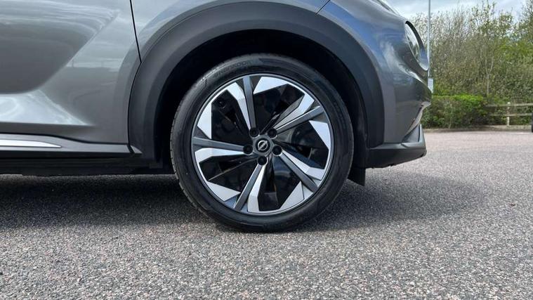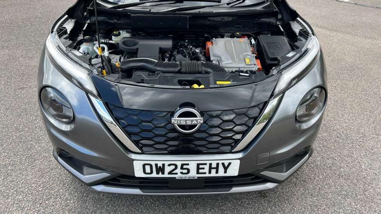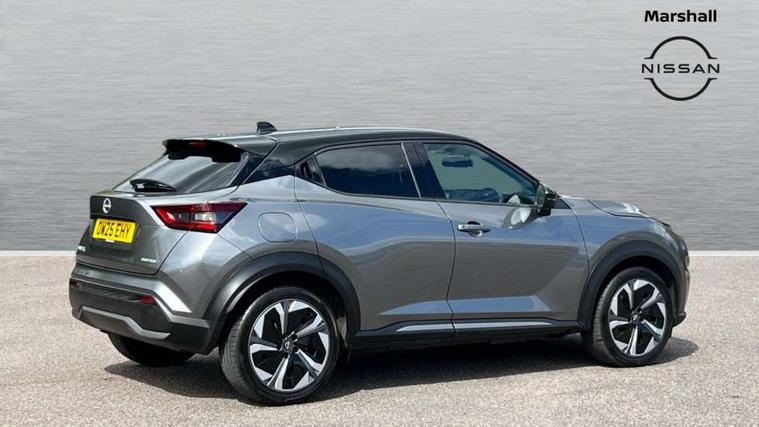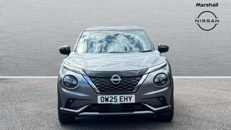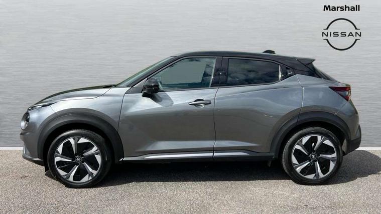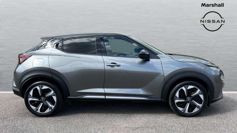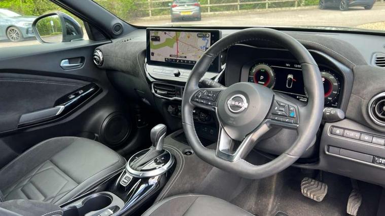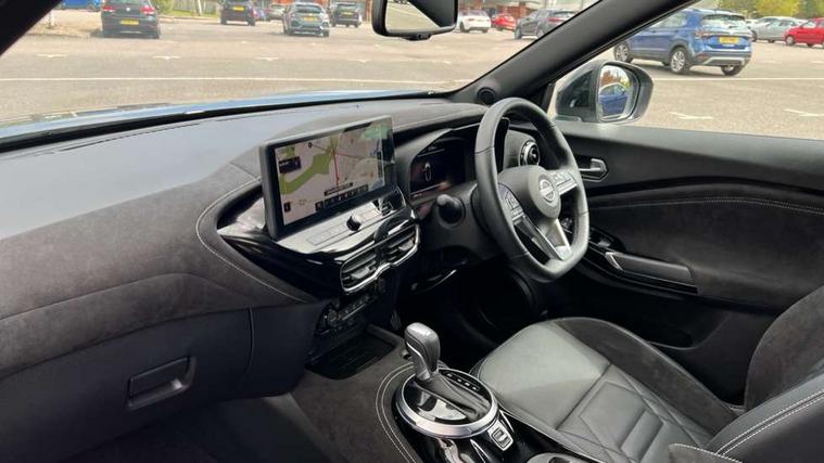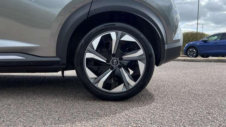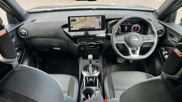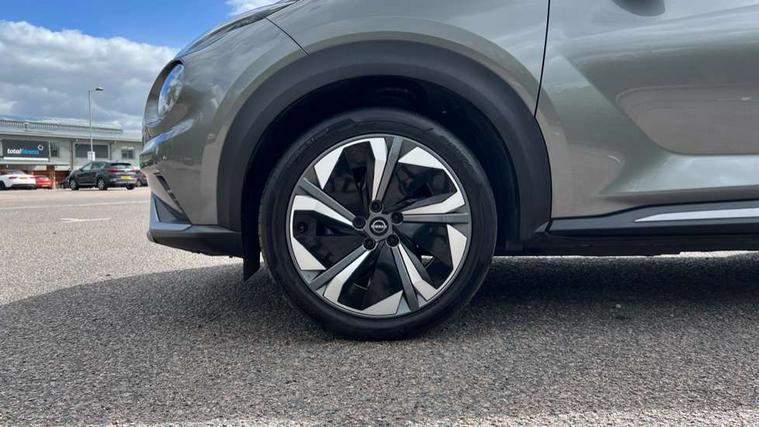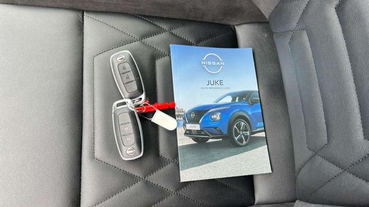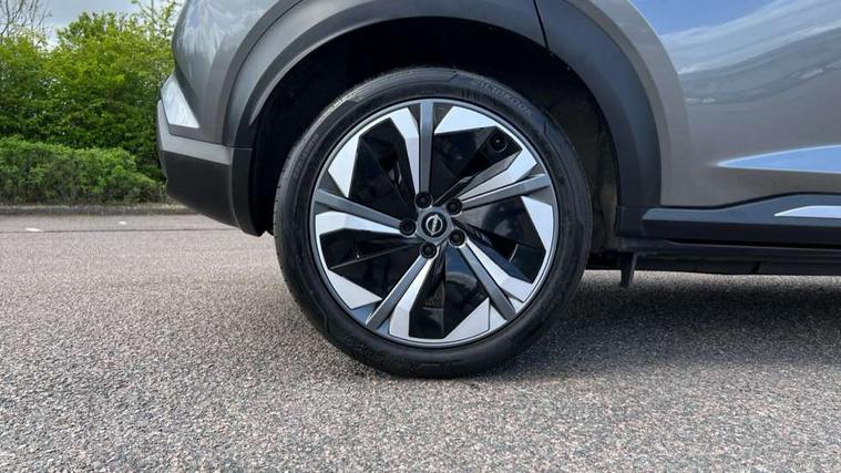 12.3" full colour TFT screen combimeter, Drive modes select (Eco, normal and sport), e-Pedal step, Emergency and breakdown call, EV mode switch, Front parking sensor, Intelligent driver alert system, Intelligent lane intervention, Lane departure warning system, Nissan connect 12.3" touch screen entertainment system, Nissan connect nav with TomTom traffic, Nissan connect services, Outside temperature sensor, Power Steering, Rear parking sensor, Stop/start button, Traffic sign recognition, Trip computer, Voice recognition, WiFi connectivity, Wireless Apple CarPlay and Google Android auto, Wireless Smartphone charger, 10 Bose speakers 8 speakers and 2 headrest speakers for driver/passenger seats, 2 X Rear console USB port, Bluetooth system, USB, Aux-in and 12V socket, Bose personal plus audio system, DAB Digital radio, Auto dimming frameless rear view mirror, Automatic hazard signal with emergency stop signal, Body colour door handles, Electrically adjustable door mirrors with integrated indicators, Follow me home headlights, Front and rear electric window with one touch driver window, High beam assist, LED 3rd brake light, LED daytime running lights, LED front fog lights, LED headlamps, LED rear fog lamp, LED rear lamps, One touch passenger window, Rear privacy glass, Rear side wing doors, Rear wiper, Roof spoiler, Shark fin roof antenna in solid Black, Solid black door mirrors, Solid black front bumper/rear bumper and side skirts inserts, Three blink turn signal, 3 height adjustable rear headrests, 3 seat bench in 2nd row, 60/40 split folding rear seat, Card holder on driver sunvisor, Door ambient lighting, Driver seat back pocket, Driver side rear coat hanger, Driver/passenger sunvisors and vanity mirrors, Front and rear cabin lights, Front armrest, Front door pockets with bottle holders, Front head restraints, Front/rear passenger grab handles, Gear console ambient circle lighting, Height adjustable driver's seat, Internal chrome door handles, Luggage board, Luggage space lighting, Monoform sporty seats, Multifunction steering wheel, Passenger seat back pocket, Rear door bottle holders, Single front passenger seat, Smooth synthetic leather steering wheel, Synthetic leather kneepad, Synthetic leather shift knob, Telescopic steering wheel adjustment, Two cupholders in front centre console, Two rear isofix child seat anchorage points with top tether, Welcome light and console tray ambient lighting, Comfort pack - Juke, Heat pack with height adjustable passenger seats - Juke, Interior personalisation pack - Juke, ProPilot pack - Juke Auto, Satin grey exterior personalisation pack - Juke, ABS with EBD and brake assist, Active ride control, Active Trace Control, Driver and passenger airbags, Driver and passenger side airbags, Electric handbrake with auto hold function, Electronic Stability Programme (ESP), Front and rear curtain airbags, Height adjustable seatbelts, Hill start assist, Intelligent emergency braking with pedestrian and cyclist recognition, Rear door child safety locks, Seatbelt reminder for driver/front passenger and rear seats, Three 3 point rear seatbelts, Traction control, Tyre pressure monitoring system, VDC Dynamic Vehicle Control, Alarm, Immobiliser, Intelligent key and start push button with walk away lock and approach unlock functions, Remote central locking, 19" Aero alloy wheels, Tyre puncture repair kit,