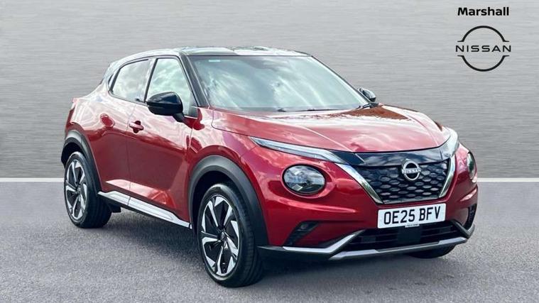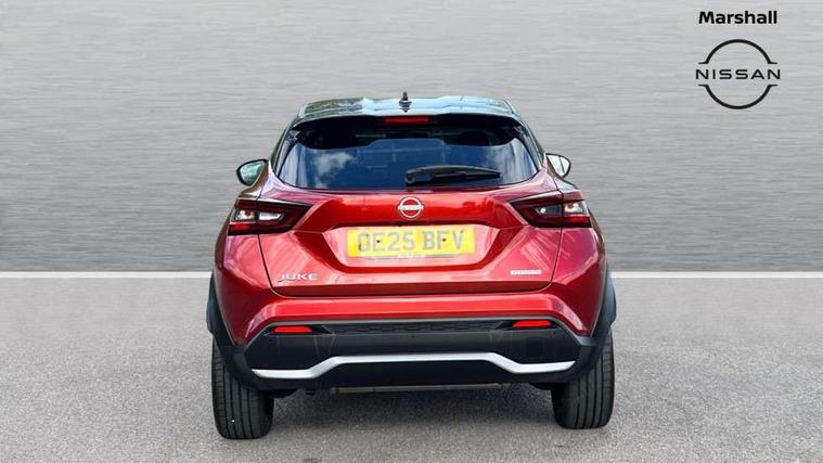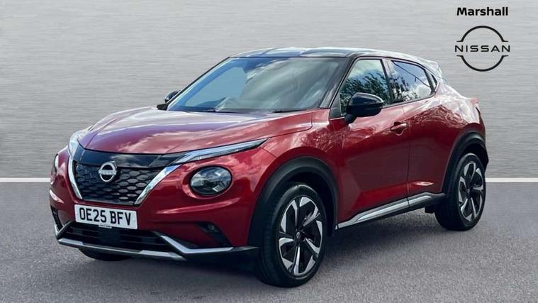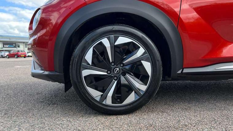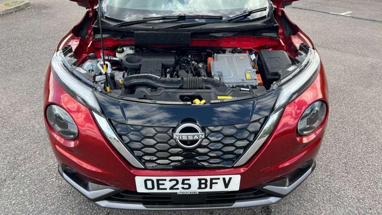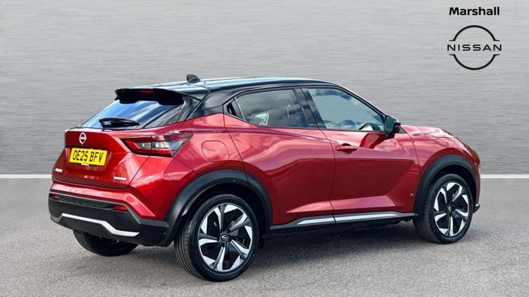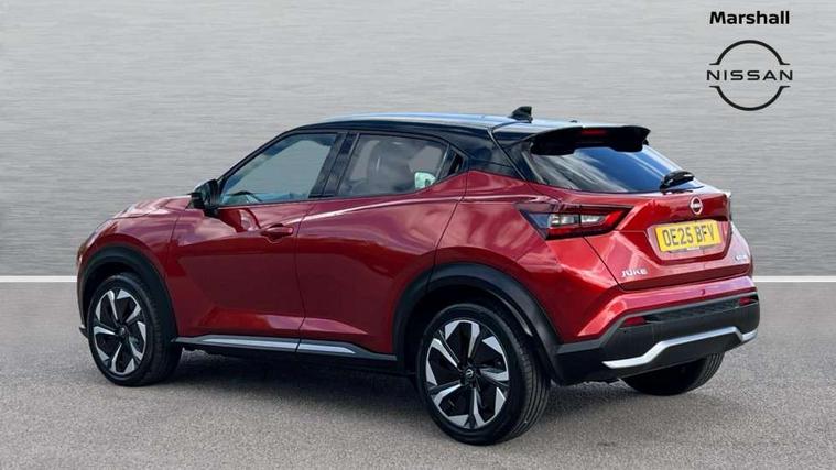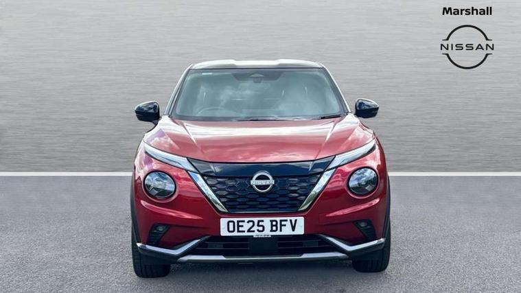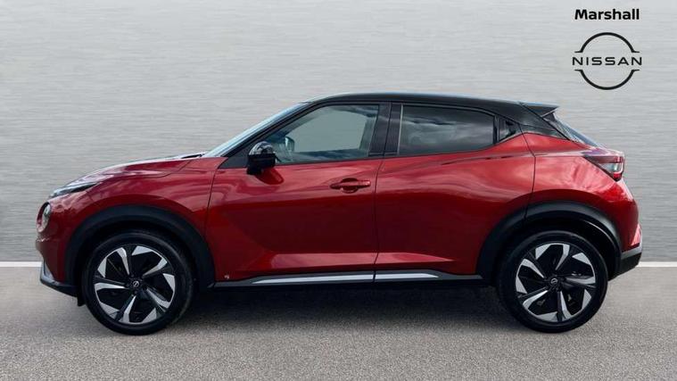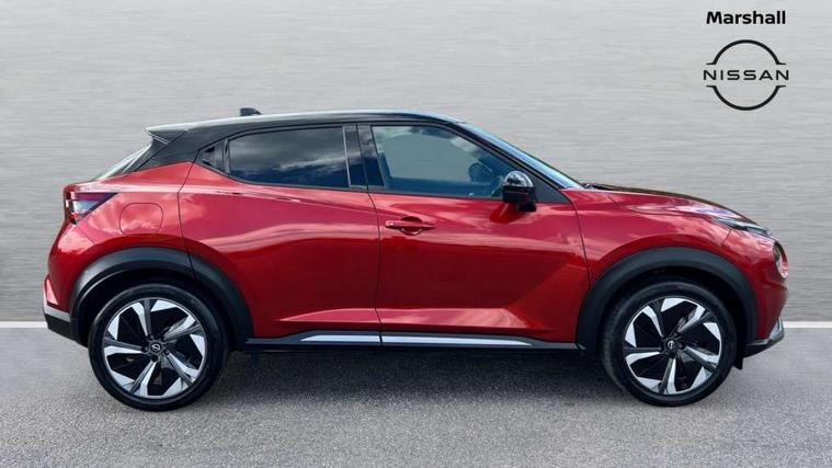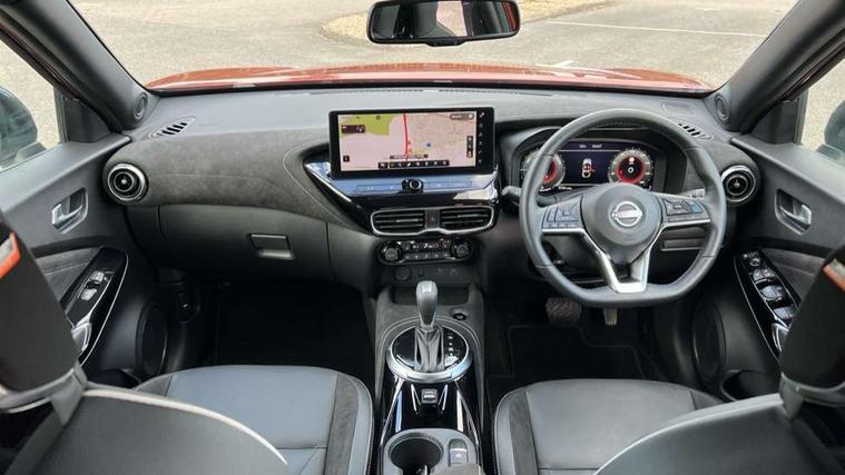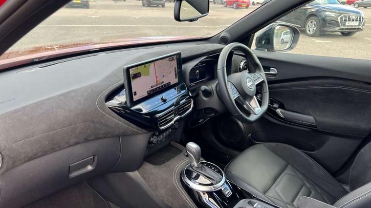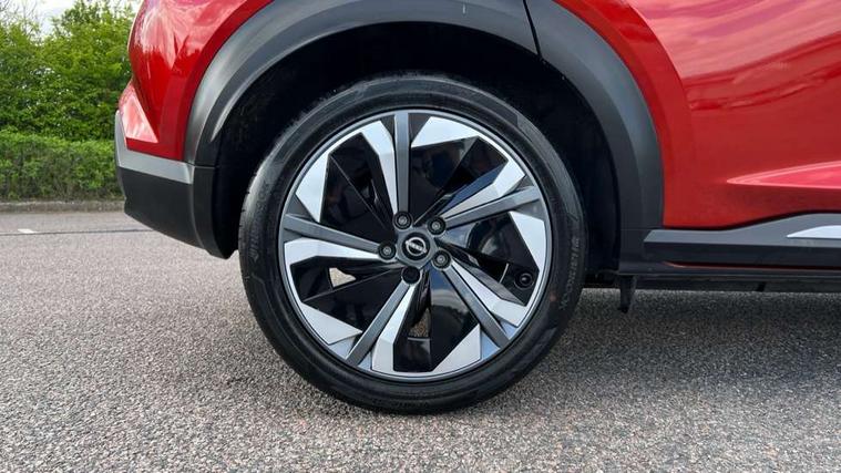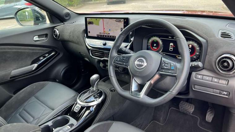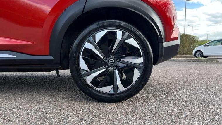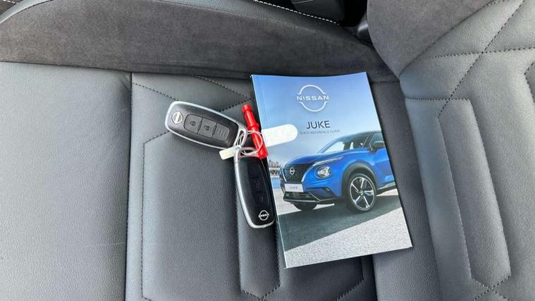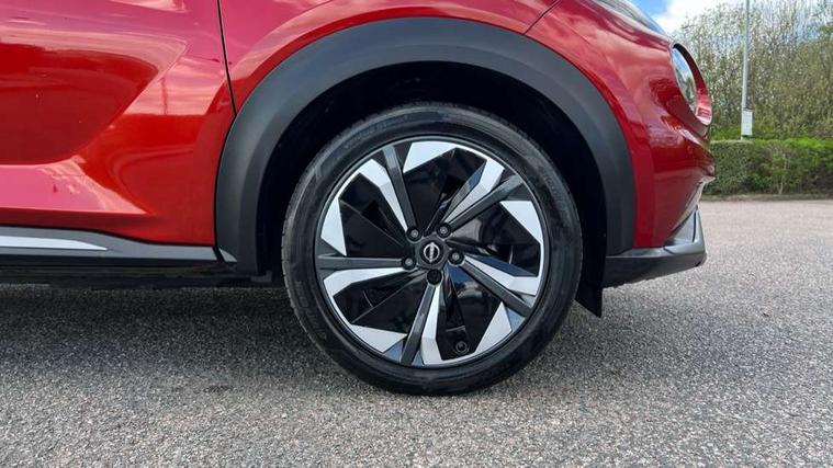 12.3" full colour TFT screen combimeter, Drive modes select (Eco, normal and sport), e-Pedal step, Emergency and breakdown call, EV mode switch, Front parking sensor, Intelligent driver alert system, Intelligent lane intervention, Lane departure warning system, Nissan connect 12.3" touch screen entertainment system, Nissan connect nav with TomTom traffic, Nissan connect services, Outside temperature sensor, Power Steering, Rear parking sensor, Stop/start button, Traffic sign recognition, Trip computer, Voice recognition, WiFi connectivity, Wireless Apple CarPlay and Google Android auto, Wireless Smartphone charger, 10 Bose speakers 6 speakers and 2 headrest speakers for driver/passenger seats, 2 X Rear console USB port, Bluetooth system, USB, Aux-in and 12V socket, Bose personal sound stage control, DAB Digital radio, Auto dimming frameless rear view mirror, Automatic hazard signal with emergency stop signal, Body colour door handles, Electrically adjustable door mirrors with integrated indicators, Follow me home headlights, Front and rear electric window with one touch driver window, Heated and auto folding door mirrors, High beam assist, LED 3rd brake light, LED daytime running lights, LED front fog lights, LED headlamps, LED rear fog lamp, LED rear lamps, One touch passenger window, Rain sensor windscreen wipers, Rear privacy glass, Rear side wing doors, Rear wiper, Roof spoiler, Shark fin roof antenna in solid Black, Three blink turn signal, 3 height adjustable rear headrests, 3 seat bench in 2nd row, 60/40 split folding rear seat, Automatic climate control, Card holder on driver sunvisor, Door ambient lighting, Driver seat back pocket, Driver side rear coat hanger, Driver/passenger sunvisors and vanity mirrors, Front and rear cabin lights, Front armrest, Front door pockets with bottle holders, Front head restraints, Front/rear passenger grab handles, Gear console ambient circle lighting, Height adjustable driver's seat, Internal chrome door handles, Leather gearshift knob, Luggage board, Luggage space lighting, Monoform sporty seats, Multifunction steering wheel, Passenger seat back pocket, Rear door bottle holders, Single front passenger seat, Smooth synthetic leather steering wheel, Synthetic leather kneepad, Telescopic steering wheel adjustment, Two cupholders in front centre console, Two rear isofix child seat anchorage points with top tether, Welcome light and console tray ambient lighting, Heat pack with height adjustable passenger seats - Juke, Interior personalisation pack - Juke, ProPilot pack - Juke Auto, Satin grey exterior personalisation pack - Juke, ABS with EBD and brake assist, Active ride control, Active Trace Control, Driver and passenger airbags, Driver and passenger side airbags, Electric handbrake with auto hold function, Electronic Stability Programme (ESP), Front and rear curtain airbags, Height adjustable seatbelts, Hill start assist, Intelligent emergency braking with pedestrian and cyclist recognition, Rear door child safety locks, Seatbelt reminder for driver/front passenger and rear seats, Three 3 point rear seatbelts, Traction control, Tyre pressure monitoring system, VDC Dynamic Vehicle Control, Alarm, Immobiliser, Intelligent key and start push button with walk away lock and approach unlock functions, Remote central locking, 19" Aero alloy wheels, Tyre puncture repair kit,