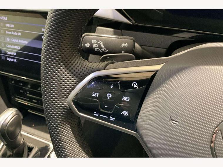 Adaptive cruise control (ACC) with speed limiter, front assist (reacting vehicles pedestrian and cyclists) and follow to stop, App connect including wireless Apple CarPlay, Camera for warning system, Digital cockpit with 10.25" high resolution TFT display screen with customisable menus and information, Driver alert system with fatigue detection, Driver profile selection including ECO function, Dynamic road sign display, eCall - Emergency call service for SOS calls to emergency response, Emergency assist, Hands free boot opening, Press and drive key, Progressive steering, Speedo and rev counter, electronic odometer, trip, service interval display and exterior temperature gauge, Travel assist - Lane keeping assist and traffic jam assist, Voice activation for telephone and navigation, Start/stop function with battery regeneration, Premium USB cable in choice of either Apple or Android smartphone compatibility, Auto dimming interior rear view mirror, Automatic headlights, Body colour door handles, Body colour side skirt, Body coloured top and matt black lower door mirrors with integrated indicators, Chrome plated radiator grille inserts and light switch surrounds, Chrome side window surrounds, Dynamic headlight range control, Electric folding door mirror, adjustable, heated with front passenger exterior mirror lowering function, Front and rear electric windows, Front and rear stainless steel door sill protection, Front windscreen washers and wipers with 4x interval delay, Heat insulating side and rear windows, Heated rear windscreen, Heated windscreen washer jets, High level 3rd brake light, LED rear combination lamp with dynamic indicators, LED rear number plate lights, Panoramic sunroof with tilting and sliding including integrated roller blind, R Line design body coloured bumpers, Rain sensor, Rear fog lamp on one side and reversing lamp on both sides, Rear side wing doors, Rear tinted glass from B pillar backwards, approx 65% tinted, Rear wash/wipe, Tailpipes behind rear bumper, 12V socket in front centre console, 12V socket on rear of front centre armrest, 3 rear head restraints, 3 seat bench in 2nd row, 30 colours options interior ambient lighting, 60:40 split folding rear seat backrests with centre armrest, Air care climatronic 3 Zone electronic air conditioning with automatic air recirculation, Black roof lining, Chrome trim on upper and lower air vents extending across cockpit, Driver and front passenger sunvisor with vanity mirror, Front + rear carpet mats, Front cupholders x 2, Front footwell illumination, Front sports comfort seats, Glovebox, Heated front seats, Height/reach adjust steering wheel, Isofix child seat preparation easy fit for two outer rear seats, Luggage compartment lighting, Removable luggage compartment cover, Single front passenger seat, Split folding front seat backrest with front centre armrest, Stainless steel pedals, Two LED front reading light, 3 rear three point seatbelts, ABS+EBD+Brake assist, Child locks on rear doors, Driver airbag and front passenger airbags with deactivation switch including driver knee airbags, Electronic parking brake, Electronic stability control (ESC) and Electromechanical brake booster, Front disc brakes, Front side airbags with curtain airbags, Hill start assist, Pro active occupant protection to detect critical situations with elevated accident potential from the front, Rear disc brakes, Three point height adjust front seatbelts + pretensioners, Two tone horn, Tyre pressure loss indicator, Warning buzzer for seatbelts if unfastened, Warning triangle, Alarm with interior protection with deactivation via infotainment system, Electronic engine immobiliser, Keyless entry system including start/stop button on centre console, Aluminium decorative inserts, Chrome trim on lower doors in front and rear, Leatherette insert on door and side trim panel in foam film, Piano black decorative inserts in centre console,