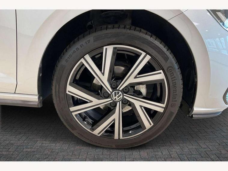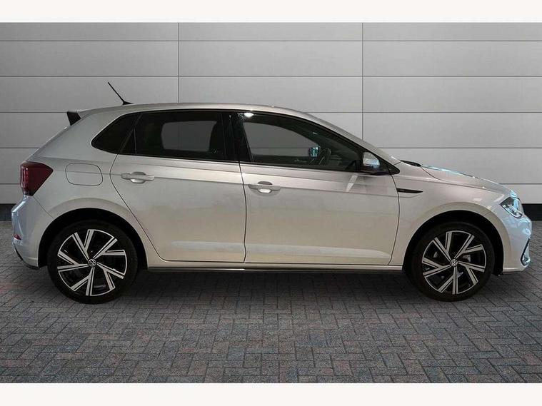 Adaptive cruise control with follow-to-stop and speed limiter, Bluetooth mobile phone interface, Digital Cockpit Pro with 10.25" Display, Driver alert system, Dynamic road sign display, Emergency call service, Power assisted speed sensitive steering, Preparation for We connect and We connect plus, Speedo and rev counter, electronic odometer, trip, service interval display and fuel gauge, Standard rear axle, Travel Assist - Lane keeping system and traffic jam assist, Travel assist including emergency assist, Trip computer, Warning signal and warning light for front and rear seatbelts not fastened, Washer fluid level indicator, Wireless app connect, Front wheel drive, Rear shock absorpion, Start-stop system with battery regeneration (recuperation - energy recovery during braking), DAB Digital radio, Diversity antenna for FM reception, Front and rear 6 speakers, Body colour bumpers, Body colour door handles, Body colour door mirrors, Electric front windows, Front scuff plates with R-Line logo, Heat insulating darkened glass in side and rear windows, Heat insulating glass windscreen, Power folding adjustable/heated exterior mirrors and front passenger exterior mirror lowering function, Rear electric windows, Rear fog light, Rear side wing doors, Rear tinted glass from B-pillar backwards approx 65% tinted, Rear windscreen washer and wiper with interval delay, Third brake light, 12V power socket in centre console, 2 USB-C ports in the front, 2 USB-C charging sockets on the center console in the rear, 3 rear head restraints, 60/40 split folding rear seat and rear seat bench not split, Air care climatronic air conditoning system with active combination filter and 2-zone temperature control, Black roof lining, Chrome plated radiator grille inserts, air vent surrounds and light switch surrounds, Door and side trim panel, Driver and front passenger seat height adjustment, Driver/passenger sunvisors with illuminated vanity mirrors, Front + rear carpet mats in recycled material, Front centre armrest, Front footwell illumination, Front seat backrest storage pockets, Front sports comfort seats, Handbrake lever handle in leather, Headliner in recycled material, Isofix child seat preparation easy-fit (for two outer rear seats, and front passenger seat) compatible with I-size, Karoso artvelours cloth upholstery, Leather trimmed gear knob, LED interior light with switch off delay and dimmer, 2 reading lights front and rear, Luggage compartment cover, Luggage compartment floor, Luggage compartment lighting, Lumbar adjustment for front seats, Single front passenger seat, Stainless steel pedals, Standard pedal cluster, Three spoke leather wrapped multifunction steering wheel with shifting paddles, Light and sight pack - Polo R-Line/Black Edition, 3 point height adj front seatbelts + pretensioners, 3x3 point rear seatbelts, ABS, Driver and front passenger airbag with front passenger airbag deactivation, Drivers and front passengers safety optimised head restraints, ESC (Electronic stability control) + EDL (Electronic Differntial lock) and ASR (Traction control), Extended and predictive pedestrian/ cyclist protection, Front curtain and side airbags with center airbag, Hill hold control, Manual child lock in rear doors, Single tone horn, Tyre pressure loss indicator, Alarm with interior protection, Anti-theft alarm system with interior monitoring, backup horn, and towing protection, Anti-theft wheel bolts, Electronic engine immobiliser, Chrome applications on rotary light, mirror adjustment, window regulator switches, outlet with frame in black, Dark grey anodised matt decorative inserts in dash and front door panels, Low rolling resistance tyres,