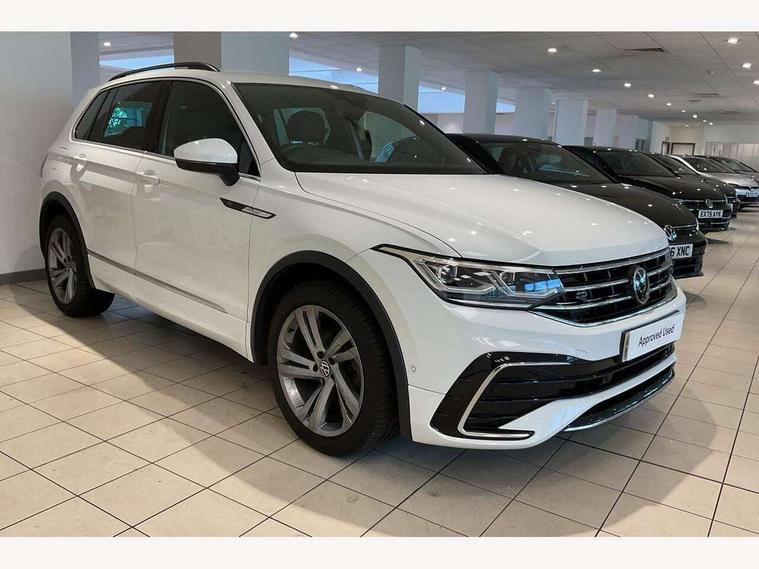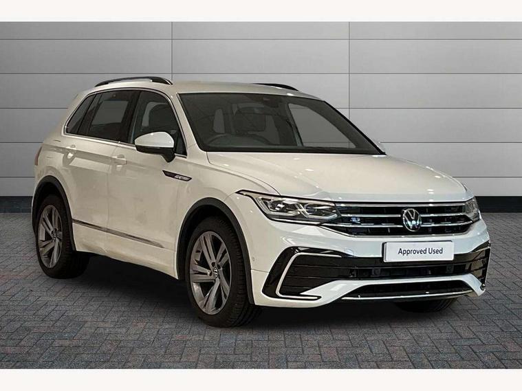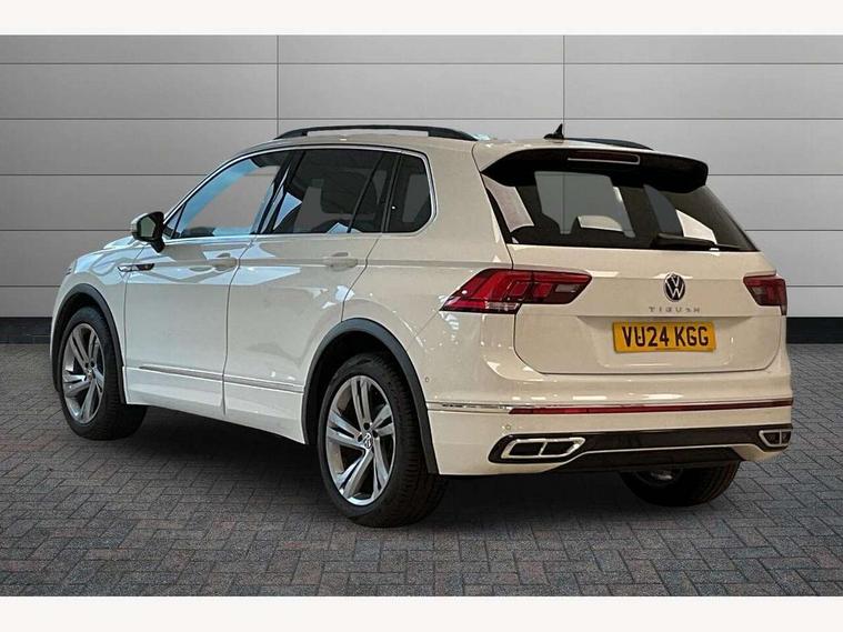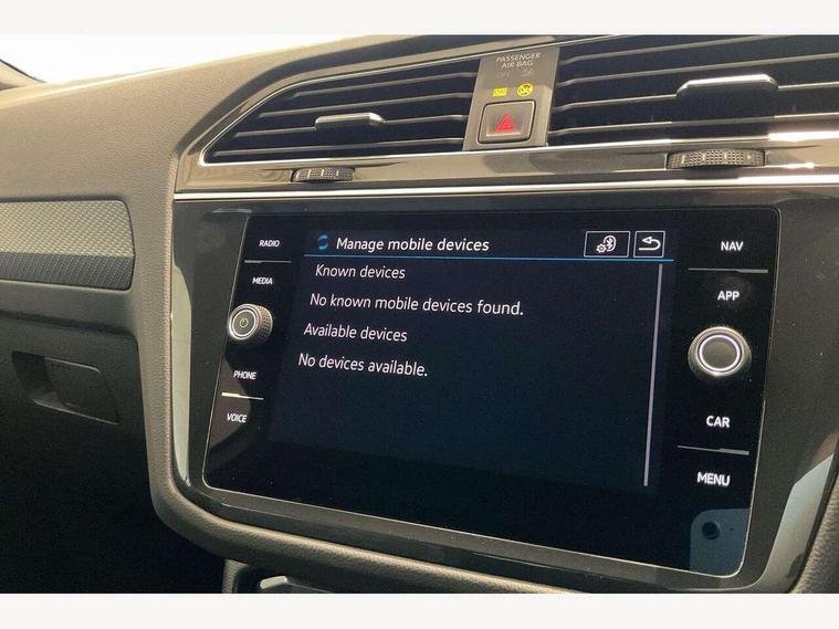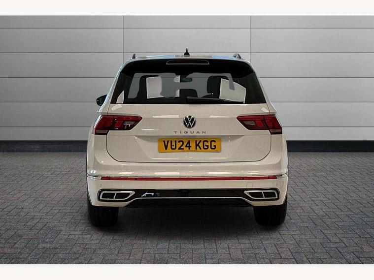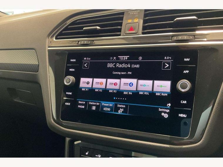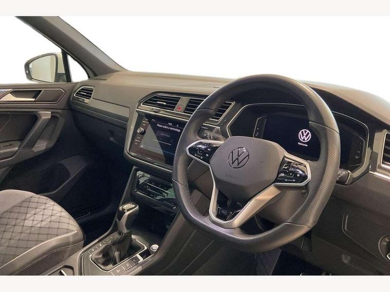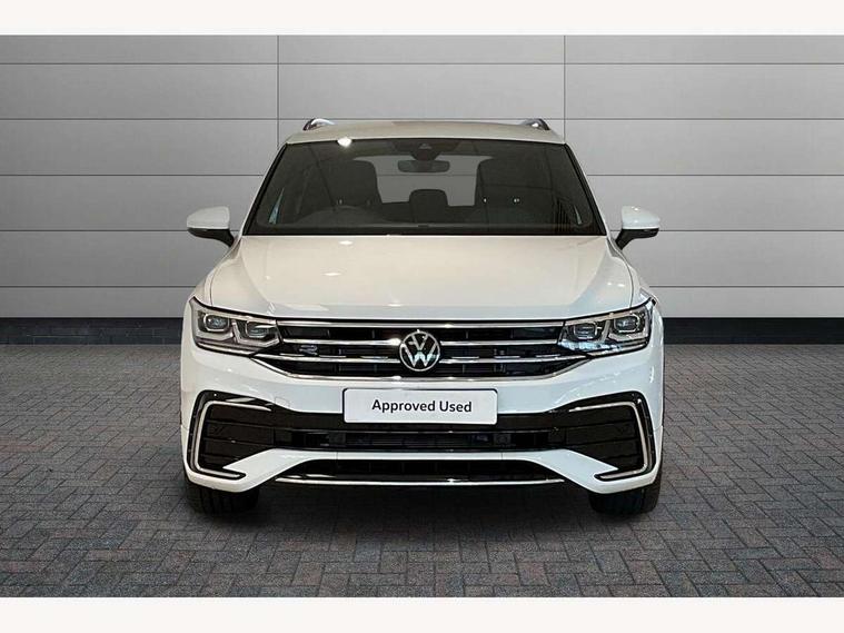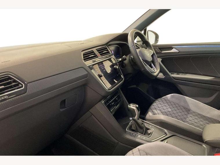 Adaptive cruise control ACC stop and go including speed limiter, App-Connect incl. App-Connect Wireless for Apple CarPlay and Android Auto, Bluetooth phone integration system, Comfort drive travel assist, Digital cockpit pro, Driver alert system, Driver profile selection, Dynamic road sign display, eCall emergency call system, Electromechanical speed sensitive power steering, Emergency assist, Front and rear parking distance sensors, Instrument cluster mph speedometer Great Britain, Lane keeping system Lane Assist, Lights on warning, Multifunction front facing camera, Outside temperature display, Premium multifunction display with multi colour display, Rev counter, Service interval indicator, Speed limit display, Start/stop system with regenerative braking, Trip computer, Warning sound and light for doors and tailgate open, Battery regeneration during braking, Digital radio reception DAB+, Diversity antenna for FM reception, Radio, Auto dimming interior rear view mirror, Automatic headlight control system, Body colored bumpers in R-Line style, Body colored exterior mirror housings, Body colour door handles, Chrome moldings on the side windows, Coming/leaving home lighting function, Dynamic headlight range control, Front and rear electric windows, Heated rear window, High level 3rd brake light, Laminated safety glass windshield, heat and sound insulating, LED rear combination lamps, LED rear number plate lights, License plate carrier in front and rear, Poor weather light and cornering light, Privacy glass for rear side windows and rear window, R Line body kit, R Line side sills, Rain sensor, Rear exhaust tailpipe, Rear fog lamp, Rear side wing doors, Rear spoiler in R style, Rear windscreen washer and wiper with interval delay, Side and rear windows in heat insulating glass, Trailer Stability Programme, Unique R Line badging, Windscreen wipers/ intermittent wipe + 4 position delay, 12V outlet in center console rear and in luggage compartment, 12V outlet in front and tray, 2 LED front reading lights, 2 LED rear reading lights, 3 bench rear seats in 2nd row, 3 rear headrests, Air Care Climatronic 3 zone automatic climate control with enhanced air filter and controls in the rear, Backrest release for left front seat, Black headlining, Brushed stainless steel pedals and footrest, Carpet mats in front and rear with decorative stitching in Gray, Climate control unit rear with touch function, Door and side trim panel in foam film, insert in leatherette, Front footwell illumination, Front scuff plates in aluminum with R-Line logo, Front seats head restraints (x-adjustment), Height/reach adjust steering wheel, Isofix Preparation 2 Rear child seats, Leather gear knob, Rear bench seat asymetrically split folding, longitudinally movable and folding with load-through hatch and center armrest, Remote unlocking for rear seat backrest, Single front passenger seat, Sun visors with illuminated vanity mirrors, Tool kit, Driver assistance pack plus - Tiguan DSG, 3 point seat belt for centre rear seats, 3 point seat belts with seat belt pretensioners for the outer rear seats, Curtain airbags for front and rear passengers, Driver/Front Passenger airbags, Drivers knee airbag, Electronic parking brake with auto hold, Electronic Stability Control with driver steering recommendation, ABS, ASR, EDL, EDTC and trailer stabilization, Front assist with autonomous emergency braking (for Adaptive Cruise Control ACC up to 130 mph), Front disc brakes, Front passenger airbag deactivation, Front side airbags, Height adjustable front 3 point seatbelts + pretensioners, Manual child proof rear door locks, Pedestrian monitoring system, Proactive passenger protection system in combination with front assist, Rear disc brakes, Two tone horn, Warning sound and light for front seat belts if unfastened, Warning triangle, Anti theft alarm system with interior monitoring, backup horn and towing protection, Anti theft wheel bolts, Electronic engine immobiliser, Chrome elements on the mirror switch power window switches and door pulls, Decorative inserts Carbon Gray for dashboard and front door trim panels, Interior door handle in matte chrome,