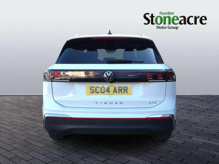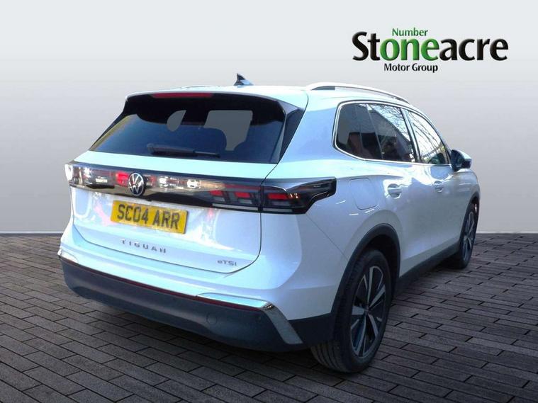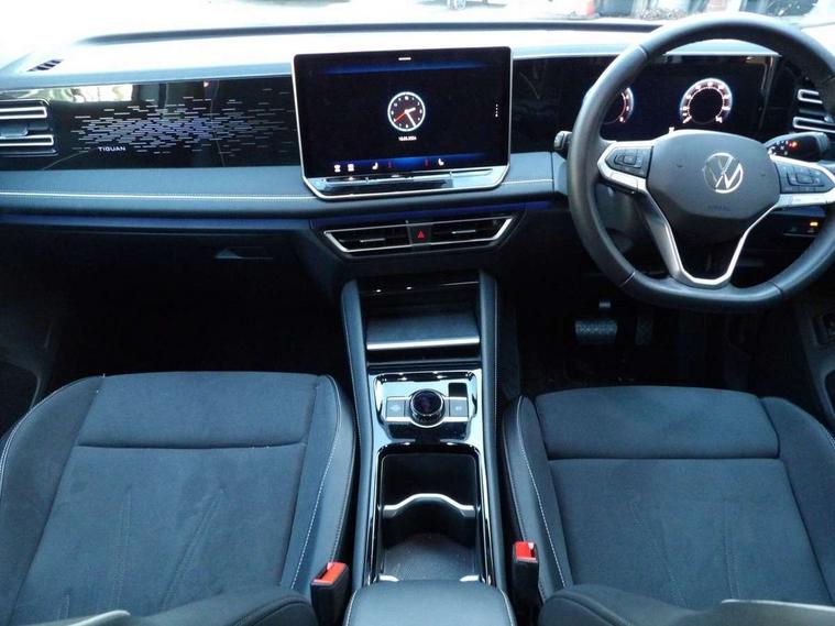 Adaptive cruise control (ACC), Advanced driver attention and drowsiness monitor, Bluetooth mobile phone interface, Comfort drive travel assist, lane keeping system, lane assist and emergency assist, Digital Cockpit Pro - 10.25" high resolution dash display screen with customisable menus and information, Dynamic road sign display, E-Sim card for online connectivity, eCall emergency call service, Front Assist - Autonomous emergency braking with pedestrian and cyclist monitoring, Lane change system, Side assist, Rear traffic alert and Exit warning system, Multifunction front facing camera, Oncoming vehicle braking when turning including swerve support, Park assistance plus with front and rear parking sensors, Power assisted steering with speed sensitive, Start/stop system with regenerative braking, Warning signal and warning light for front and rear seatbelts not fastened, Wireless App-Connect, Front wheel drive, Digital radio reception (DAB), Diversity antenna for FM reception, Ambient lighting with logo projection, Auto dimming interior rear view mirror, Automatic headlight control system, Body colored bumpers in R-Line style, Body coloured door handles, Body-coloured exterior mirror housings, Chrome moldings on the side windows, Coming/leaving home lighting function, Heat insulating glass in side and rear windows, Heated rear window, Heated windscreen washer jets, High level 3rd brake light, Illuminated door handle recesses, Illuminated lightline between headlamps, Laminated safety glass from B-pillar backwards 90% tinted, Laminated safety glass windshield, Rain sensor windscreen wipers, Rear fog light on one side, reversing light on both sides, Rear side wing doors, Rear wiper, Silver roof rails, 12V outlet in center console rear and in luggage compartment, 12V socket in centre console, 3 bench rear seats in 2nd row, Air care climatronic 3 zone air conditioning system with rear air conditioning control panel, Carpet mats, front and rear, Centre console with illuminated storage compartment with sliding cover and two drinks holders, Ceramique headlining, Chrome elements on the mirror switch and power window switches and door pulls, Door and side trim panel with leatherette insert, Door sill protectors, Front centre armrest, Interior ambient lighting with 30 colour options, ISOFIX anchors for child seats on outer rear seats and front passenger seat compatible with i-Size, Mechanical rear seat release, Power adjustable lumbar support in front, Rear bench seat, split folding, longitudinally movable and folding with load-through hatch and centre armrest, Safety optimised front head restraints, Single front passenger seat, Sports comfort seats in front, Sun visors with illuminated vanity mirrors, Three rear head restraints, Variable luggage compartment floor, Comfort package incl. Memory feature for Park assist and Safelock - Tiguan, Driver assistance package - Tiguan, 3 point seat belt for centre rear seats, 3 Point seat belts in front with pretensioners, 3 point seatbelts in outer rear with ECE label, Driver and front passenger airbag with front passenger airbag deactivation, Electronic parking brake with auto hold, Front and rear curtain airbags, Front and rear side airbags, Front centre airbag, Front disc brakes, Manual child proof rear door locks, Rear disc brakes, Two tone horn, Warning triangle, Anti theft wheel bolts, Decorative inserts Cross in dash and front door panels, Interior door handle in matte chrome, Soul instrument panel,