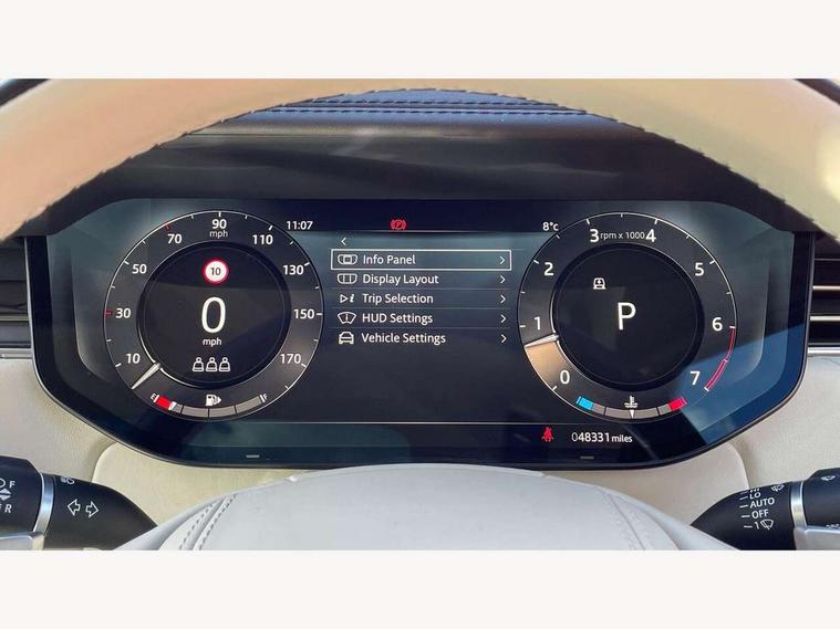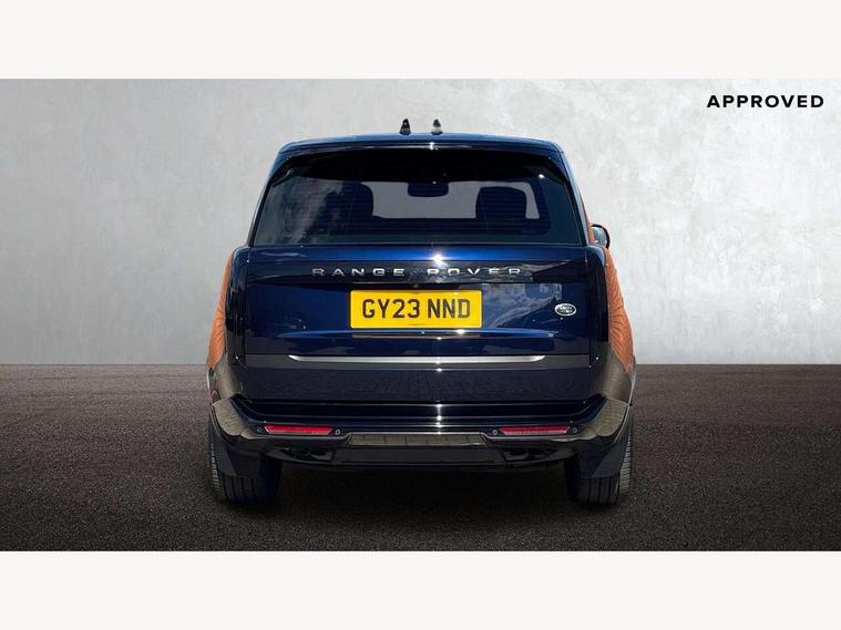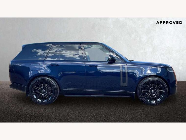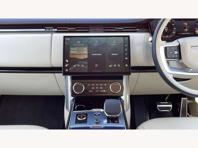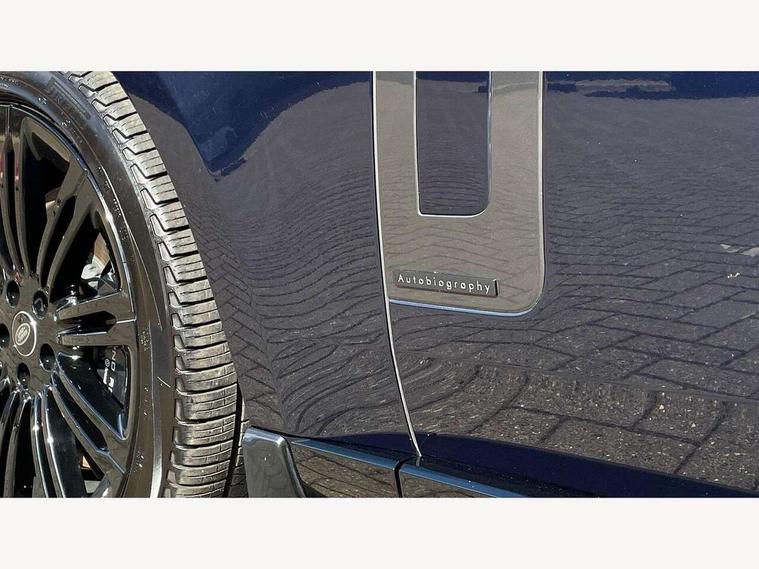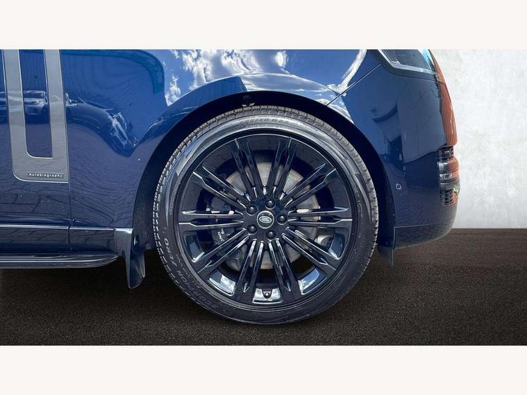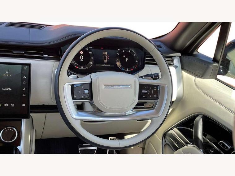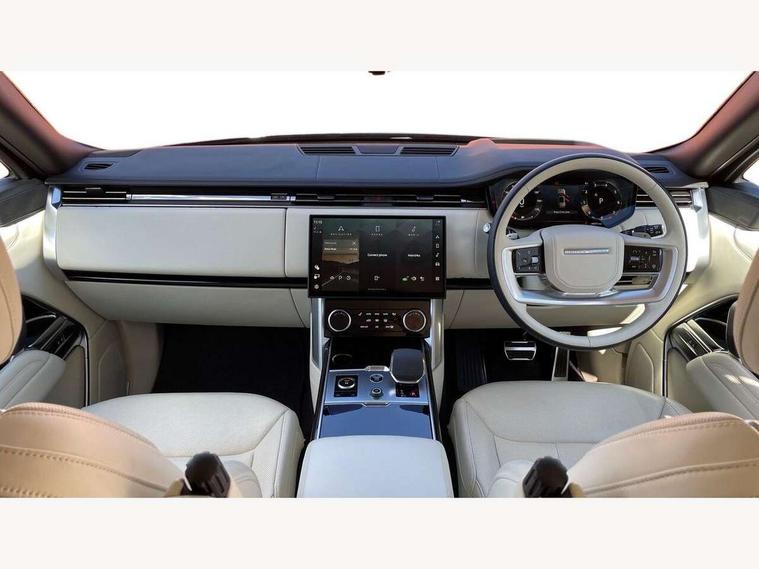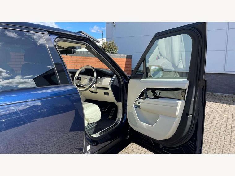 13.1" Touchscreen, 3D surround camera inc frwd traffic detection, vehicle clearance guidance, 3D view, clearsight ground view, manoevure light, 360 parking aid, wade sensing, Adaptive cruise control with steering assist, All Terrain Info Centre, All wheel steering, Android Auto, Apple car play, Blind spot assist, Bluetooth connectivity streaming, Configurable programs, Driver condition response, Eco mode, Electric power assisted steering (EPAS), Emergency call service, Front and rear parking aid, Head up Display, Interactive driver display, Lane keep assist, Powered gesture tailgate/boot lid, Rear collision monitor, Rear traffic monitor, Remote, Traffic sign recognition with adaptive speed limiter, Wi-Fi Enabled with data plan, Wireless device charging with phone signal booster, 8 speed automatic transmission, Active damper technology system, Adaptive dynamics, All terrain progress control, All Wheel Drive (AWD), Automatic access height, Electronic active differential with torque vectoring by braking, Electronic air suspension with dynamic response, Terrain Response 2 Auto, Twin speed transfer box, Digital Audio Broadcast radio-DAB, Meridian 1600W signature sound system, Pivi pro including smart settings, Connected navigation pro, nuance speech, USB socket, Acoustic laminated windscreen, Animated directional indicators, Automatic headlights, Automatic levelling headlights, Centre high mounted stop light, ClearSight interior rear view mirror, Electric windows with one touch open/close and anti trap, Flush deployable exterior door handles, Front and rear recovery eyes, Front fog lights, Headlamp power wash, Heated rear window, Heated washer jets, Illuminated metal treadplates with Autobiography script, Laminated front and rear side glass, LED tail lights, Power fold, auto-dimming, heated door mirrors with approach lights, Rain sensing windscreen wipers, Rear boot, Rear fog lights, Rear side wing doors, Rear wash/wipe, Side repeater indicators in mirror, Solar attenuating windscreen, Trailer stability assist, Winter wiper park position, 12V power sockets, 3 seat bench in 2nd row, Air quality sensor, Auto folding loadspace cover, Bright metal pedals, Cabin air purification pro, Cabin lighting, Customer configurable single point entry, Driver and passenger front seat armrests, Easy boot loading, Ebony Carpet, Electric rear side window sunblinds, Four zone climate control, Front and rear cupholders, Front and rear grab handles, Front head restraints, Gearshift paddles, Heated steering wheel, Hook in load space, Loadspace light, Luggage tie down in loadspace, Multifunction steering wheel, Rear centre armrest, Rear head restraints, Rear ISOFIX, Single front passenger seat, Soft close doors, SV bespoke carpet mats, Twin blade sunvisors with Illuminated vanity mirrors, Upper and lower glovebox, Versatile loadspace floor in tailgate, Online pack with data plan - Range Rover, 3x3 point rear seat belts, Anti-lock braking system (ABS), Black brake calipers, Brake hold function, Cornering brake control (CBC), Customer configurable autolock, DSC - Dynamic Stability Control, Electronic brake force distribution, Electronic parking brake, Electronic traction control, Emergency brake assist, Emergency braking, Front airbags with passenger seat occupant detector, Front side airbags, Hill descent control, Hill launch assist, Illuminated seat belt buckles, Low traction launch, Occupant protection assist, Power operated child locks, Roll stability control, Tyre pressure monitoring system (TPMS), Immobiliser, Intrusion sensor and alarm, Keyless entry, Locking wheel nuts, Remote central locking, Noble chrome controls,