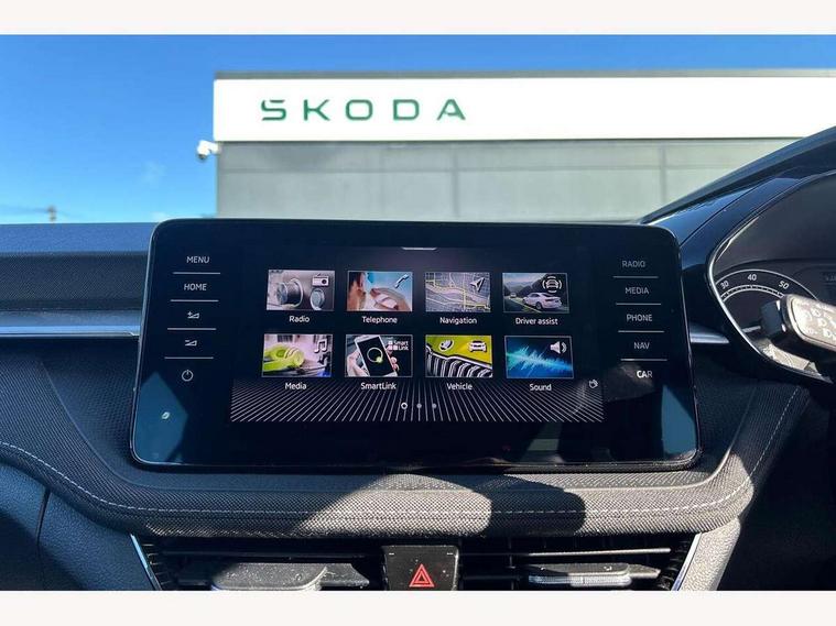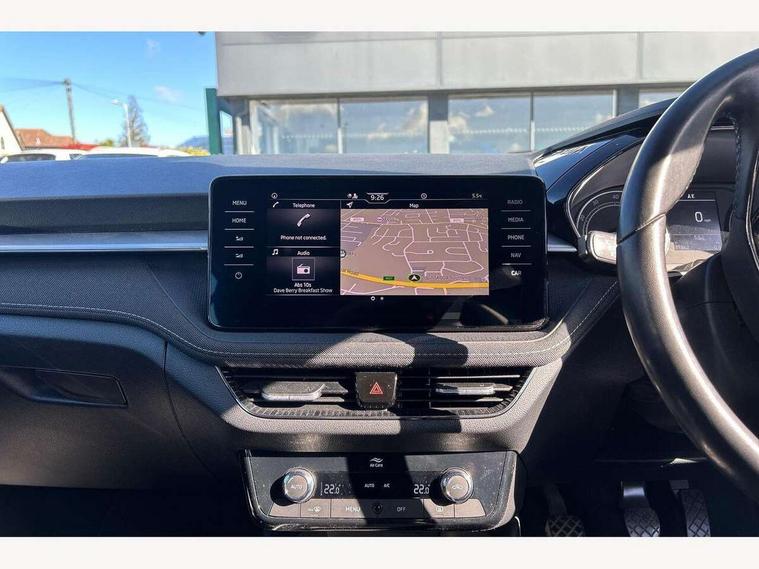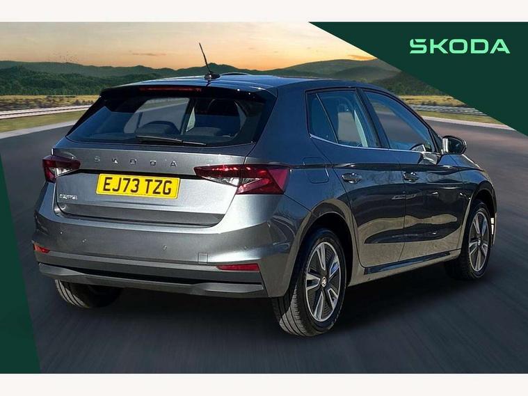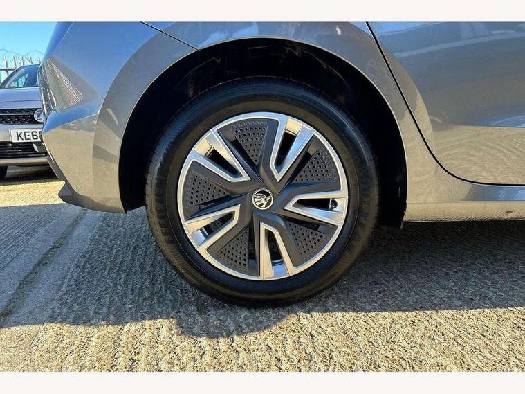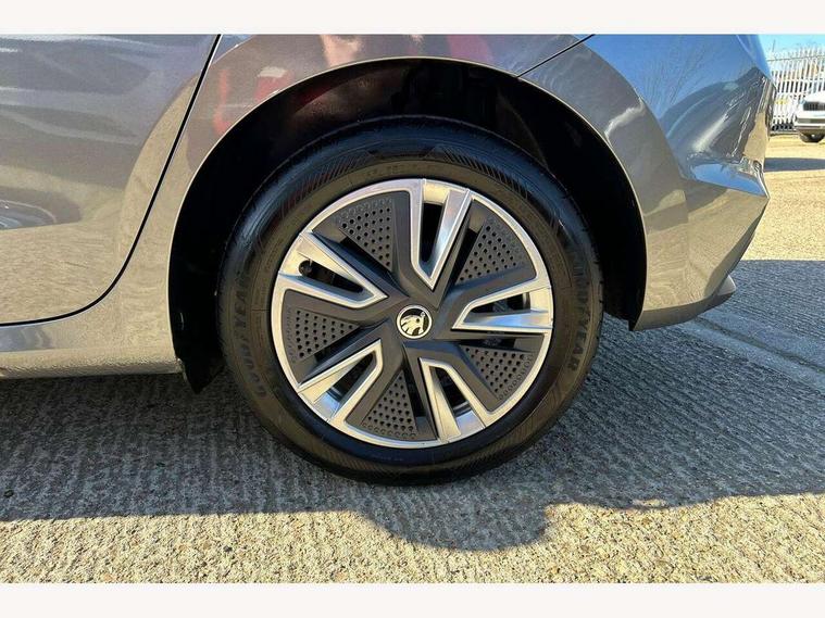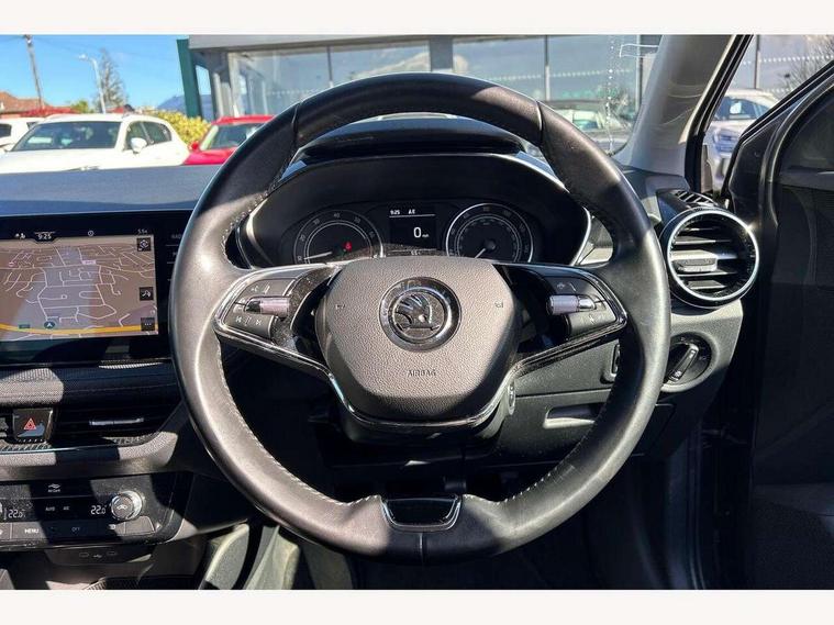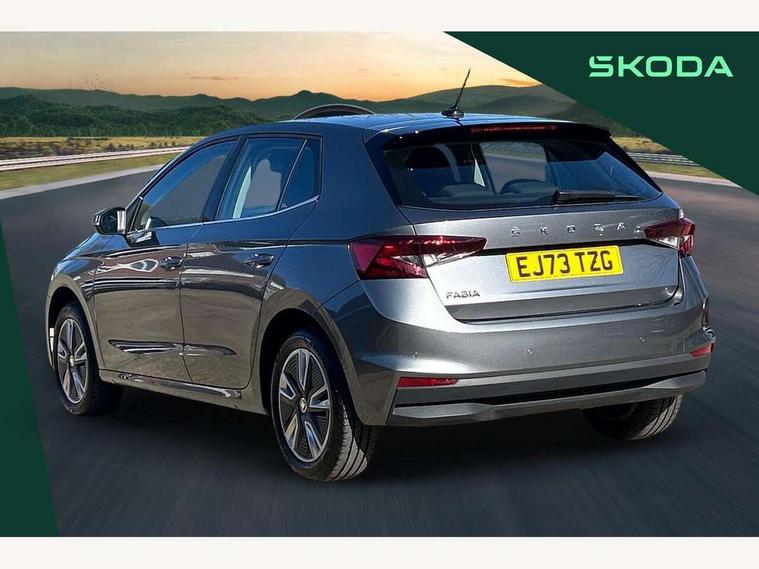 Bluetooth connection, Driver alert system - DAS, Electromechanical power steering, Exterior temperature gauge, Service interval indicator, 2x USB-C in the front (for data transmission and charging), 6 Speakers (4 in front and 2 in rear), Auxiliary socket for external MP3 player, DAB digital radio reception, Web radio, Auto dimming rear view mirror, Body colour door mirrors, Body coloured bumpers, Chrome window surround, Door mirror integrated indicators, Electrically adjustable and heated door mirrors, Front and rear electric windows, Front window wiper intermittent control, Headlight range control - Automatic, Ice scraper in fuel cap, LED daytime running lights with coming and leaving home feature, Rear LED fog light, Rear side wing doors, Rear window wiper with washing nozzles, Roof mounted spoiler, SKODA tailgate lettering in chrome, Third brake light, 3 rear headrests, Backrest split and folding, Central console with fixed cup holder and storage box, Chrome handbrake release button, Comfort seats, Fabric upholstery, Front centre armrest, Gearshift knob/handle in leather, Hand brake lever handle in leather, Height adjustable front headrests, Height adjustable front seats, Height adjustable steering wheel, ISOFIX and TopTether anchorage points to the outer rear seats, ISOFIX and TopTether on the front passenger seat, Luggage compartment lighting, Manually adjustable lumbar support in front seats, Pollen filter, Rear seat bench unsplit, Removable cup holder, Single front passenger seat, Storm grey headlining, Sun visors with mirror and airbag label on passenger side, Textile floor mats, Ticket holder, Umbrella in drivers door, Ambient lighting pack 2 - Fabia Hatchback, 3-point height adjustable front seats belts with pretensioner and force limiter, Automatic warning lights in case of crash, Driver and passengers airbag with switch off function, e-Call+, ESC including ABS, MSR, ASR, EDS, HBA and XDS, Front and rear seat belt warning, FRONT ASSIST (AEB City and AEB Inter Urban), Front side airbags, Head airbags, One tone horn, Pedestrian protection, Three rear 3-points safety seat belts with pretensioner and force limiter including stop function for outer rear seat belts, Tyre pressure monitoring system, Anti-theft alarm system including immobiliser, interior monitoring, backup horn, and towing protection, Chrome edged air vents, Satin black door and side trim panel in front, Anti-theft wheel bolts protection, Super-low rolling resistance tyres,
