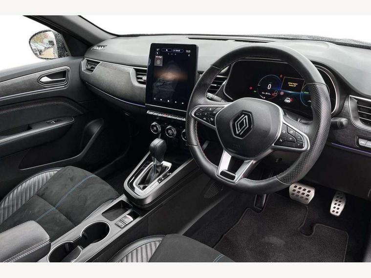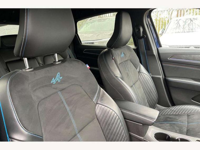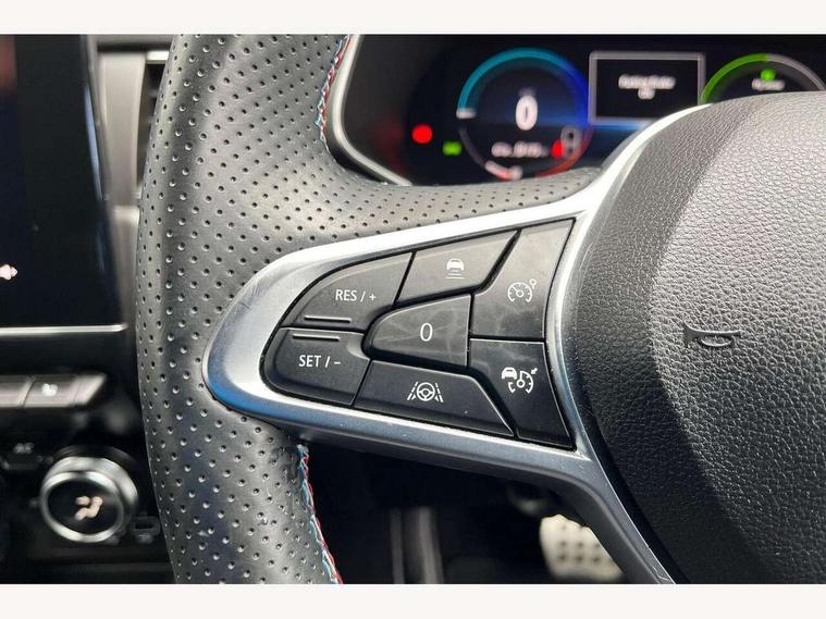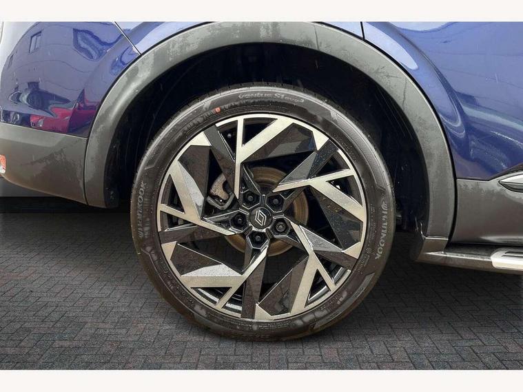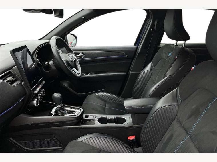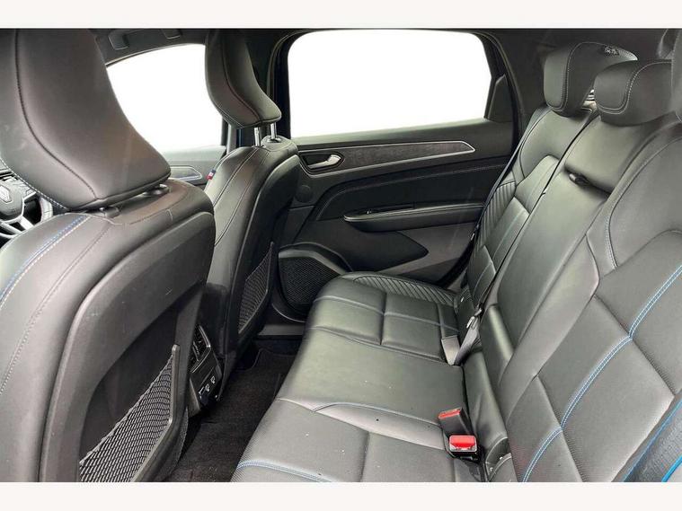 10" TFT Driver information display, Adaptive cruise control with Stop and Go, Blind spot warning, Bluetooth system, Driver drowsiness alert system, EASY LINK 9.3" portrait touchscreen with 3D navigation, hybrid voice recoginition and applications store, Eco mode, EV button to activate pure mode, Fixed speed limiter 180km/h, Front and rear parking sensors, Gear change indicator, Lane departure warning, Lane keep assist, Multi-sense - 3 driving modes and 8 ambient lighting, Rear cross traffic alert, Rear view camera, Renault automatic emergency assist, Start/stop system, Traffic sign recognition with over speed prevention, Trip computer, Variable assistance electric power steering, Wireless phone charger, Wireless Smartphone Integration includes Apple CarPlay and Android auto, Arkamys classic sound system with 6 speakers, DAB radio, USB port, 3rd brake light, Auto dimming rear view mirror, Automatic full LED headlights, Automatic high / low beam, Automatic windscreen wipers with rain sensor, Black door mirrors, Black side door protection with chrome insert, Body colour rear boot spoiler, Body coloured bumpers, C-shaped LED front signature lighting (333 high), Chrome decopart on wing (fender molding), Chrome window lower lining, Double exhaust glossy black tailpipes elements, Electrically adjustable and foldable door mirrors with defrosting, temperature sensor and automatically fold when vehicle closure, Esprit alpine exterior styling, Esprit alpine F1 blade bumper, Exterior chrome enhancement, Extra tinted rear windows and tailgate, Frameless rear view mirror, Front and rear electric windows, Front driver window with one touch facility and anti-pinch function, Front grille with chrome on upper part, Grey front and rear skid plates, Heated rear window, Rear windscreen wiper, Shiny black shark fin antenna, Variable front intermittent wipers, 1/3-2/3 foldable fixed bench, 3 seat bench in 2nd row, Automatic climate control with combined filter, humidity sensor and AQS, Black interior roof lining, Central console with storage, Esprit alpine interior styling, Esprit alpine TEP artificial leather/suede upholstery, Foldable armrest with 2 cup holder in rear passenger seats, Front and rear head restraints, Heated front seats, Heated steering wheel, Height and reach adjustable steering wheel, ISOFIX child seat fixing points on rear outermost seats, LED front and rear roof lights, Power adjustable driver and passenger seat with lumbar adjustable drivers seat, Rear air vents, Single front passenger seat, Sun visor with enlighted vanity mirror, Synthetic leather steering wheel, Variable boot floor, 3x3 point rear seat belts, Active emergency braking system, Anti-lock braking system (ABS), B Brake Mode - One pedal driving with increased regenerative braking, Distance warning alert, Driver airbag, Driver and passenger front and side airbag deactivation, Driver and passenger side airbags, Driver height adjustable seat belt, Electronic brake distribution, Electronic parking brake with auto hold, ESC (Electronic Stability Control), Front and rear no seatbelt warning sound, Front curtain airbags, Front head airbags, Front seatbelt pretensioner, Hill start assist, Passenger airbag, Sound for pedestrian (1 to 30 kph), Tyre pressure warning light, Anti drill door locks and locking fuel cap, Central door locking, Deadlocking system, Hands free keycard with Keyless access and start, RAID (Renault Anti-Intruder Device) automatic door locking, Rear side wing door and window child locking function (front driver door control panel), Thatcham alarm, 19" Esprit alpine(elixir) diamond cut alloy wheels,