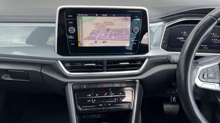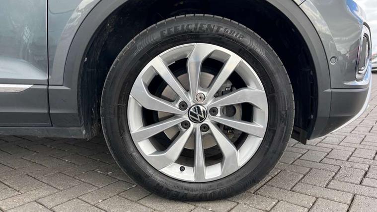 10.25" Digital cockpit pro, Bluetooth mobile phone interface, Driver alert system with fatigue detection, Driver tips and journey analysis, Emergency call service, Lane keeping system Lane Assist, Modified key software - reduce switch off time for key status change to Long no motion, Online services, Park assist including front and rear parking sensors, Service interval indicator, Tailgate/trunk lid release from outside, Think blue trainer driver tips and journey analysis, Warning sound and light for front seatbelts unfastened, Wireless app connect, Battery regeneration during braking, Start/stop function with battery regeneration, Diversity antenna for FM reception, Front and rear 6 speakers, Music playback - MP3, WMA and AAC files, Premium USB cable in choice of either Apple or Android smartphone compatibility, SD card slot, Simultaneous pairing of 2 compatible mobile devices, Title and cover art display, We Connect and We Connect Plus functionality, 3rd brake light, Auto dimming interior rear view mirror, Automatic hazard lights activation under emergency braking, Automatic headlight control with LED separate daytime running lights with coming/leaving home function, Body colour sports bumpers with silver metallic underbody fascia, Dynamic headlight range control with self adjusting whilst driving, Extended roof spoiler, Exterior mirrors aspherical on driver side, convex on front passenger side, External USB type C socket and charging sockets, Front windscreen wiper with intermittent wipe and 4 position delay, Heated rear window, LED Plus headlamps, LED rear combination lamps, LED rear number plate lights, LED tail lamp rear comination lamps, Light mode for poor weather, rain, fog or snow, Power windows with comfort operation and circuit breaker, Rain sensor, Rear exhaust tailpipe, Rear fog light on one side and reversing lights on both sides, Rear side wing doors, Rear wash/wipe with intermittent wipe setting, Remote electrically foldable door mirrors, puddle lights and reverse activated passenger's door mirror, 12V power socket in centre console, 3 rear head restraints, 3 seat bench in 2nd row, 4 load lashing points in luggage compartment, Air care climatronic air conditoning system with active combination filter and 2-zone temperature control, Chrome plated radiator grille inserts, air vent surrounds and light switch surrounds, Door and side trim panel with leatherette insert, Drawer under drivers seat, Front + rear carpet mats, Front centre armrest, Front comfort sports seats, Front cupholders x 2, Front footwell illumination, Instrument lighting, white adjustable panel illumination, Interior ambient lighting and surround lighting, Interior light delay, Isofix child seat preparation, Leather gearshift handle, LED interior light with switch off delay/dimmer and 2 front/rear LED reading lights, Load-through provision with cup holder when folded down ('Unsplit rear seat bench, split folding backrest, with centre armrest), Luggage compartment lighting, Non-folding front passenger seat backrest, Single front passenger seat, Storage compartment in left and right luggage area, Storage compartment in rear doors, Storage compartments in driver and front passenger doors, Sunvisors with illuminated vanity mirrors, Variable boot floor, height adjustable and removable, Driver assistance pack without proactive passenger protection - T-Roc, 3 point height adj front seatbelts + pretensioners, 3 point seatbelts in outer rear with ECE label, ABS, Child locks on rear doors, Driver and front passenger airbag with front passenger airbag deactivation, Driver and front passenger safety-optimised head restraints, Drivers seatbelt reminder, Electronic parking brake, Electronic Stability Control (ESC) inc EDL (Electronic Differential Lock) and ASR (Traction Control), Front and rear passengers curtain airbag system including front side airbags, Front assist with city emergency braking and pedestrian monitoring, Front seat side impact airbags, Predictive pedestrian protection, Rear disc brakes, Single tone horn, Tyre pressure loss indicator, Volkswagen roadside assistance, Alarm with interior protection, Anti-theft alarm system with interior monitoring, backup horn, and towing protection, Remote central locking with SAFELOCK, radio remote control with 2 remote control folding keys, Trims for alloy wheels,