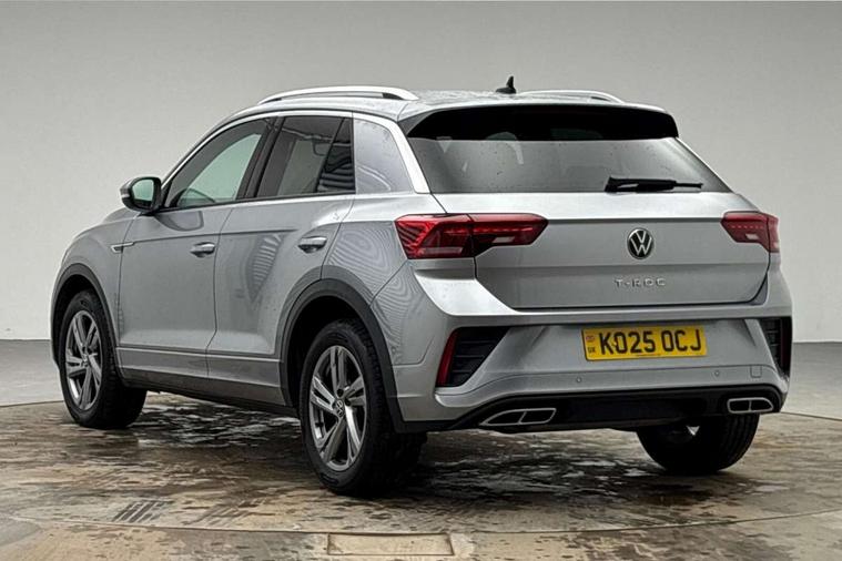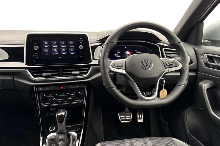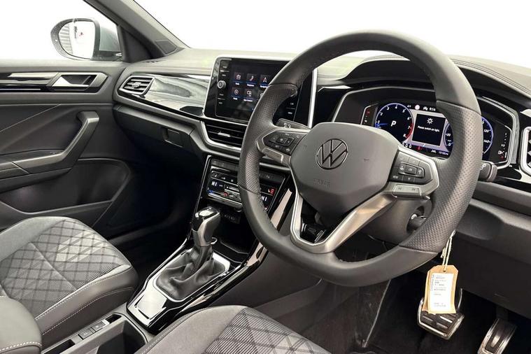 10.25" Digital cockpit pro, Advanced driver attention and drowsiness monitor, Emergency call service, Lane keeping system Lane Assist, Mobile phone interface, Modified key software - reduce switch off time for key status change to Long no motion, Online services, Park assist including front and rear parking sensors, Service interval indicator, Tailgate/trunk lid release from outside, Think blue trainer driver tips and journey analysis, Warning sound and light for front seatbelts unfastened, Wireless app connect, Battery regeneration during braking, Start/stop function with battery regeneration, DAB Digital radio, Diversity antenna for FM reception, Front and rear 6 speakers, Music playback - MP3, WMA and AAC files, Premium USB cable in choice of either Apple or Android smartphone compatibility, SD card slot, Simultaneous pairing of 2 compatible mobile devices, Title and cover art display, We Connect and We Connect Plus functionality, Auto dimming interior rear view mirror, Automatic hazard lights activation under emergency braking, Automatic headlight control with LED separate daytime running lights with coming/leaving home function, Body coloured exterior mirror housings and door handles, Electrically adjustable and heated door mirrors, Extended roof spoiler, Exterior mirrors aspherical on driver side, convex on front passenger side, External USB type C socket and charging sockets, Front windscreen wiper with intermittent wipe and 4 position delay, Heated rear window, LED 3rd brake light, LED rear combination lamps, LED rear number plate lights, Power windows with comfort operation and circuit breaker, Privacy glass for rear side windows and rear window, R-Line design body coloured bumpers, Rain sensor, Rear exhaust tailpipe, Rear fog light on one side and reversing lights on both sides, Rear side wing doors, Rear wash/wipe with intermittent wipe setting, Remote electrically foldable door mirrors, puddle lights and reverse activated passenger's door mirror, 12V power socket in centre console, 3 rear head restraints, 3 seat bench in 2nd row, 4 load lashing points in luggage compartment, Air care climatronic air conditoning system with active combination filter and 2-zone temperature control, Black roof lining, Chrome plated decorative trims, Chrome plated radiator grille inserts, air vent surrounds and light switch surrounds, Door and side trim panel with leatherette insert, Front + rear carpet mats, Front centre armrest, Front cupholders x 2, Front footwell illumination, Front reading light, Front scuff plates with R Line logo, Front seat back storage pockets, Glove compartment door with light, Instrument lighting, white adjustable panel illumination, Interior ambient lighting and surround lighting, Interior light delay, Isofix child seat preparation, Leather gearshift handle, Load-through provision with cup holder when folded down ('Unsplit rear seat bench, split folding backrest, with centre armrest), Luggage compartment lighting, Single front passenger seat, Stainless steel pedals, Storage compartment in left and right luggage area, Storage compartment in rear doors, Storage compartments in driver and front passenger doors, Sunvisors with illuminated vanity mirrors, Variable boot floor, height adjustable and removable, Driver assistance pack without proactive passenger protection - T-Roc, 3 point height adj front seatbelts + pretensioners, 3 point seatbelts in outer rear with ECE label, ABS, Child locks on rear doors, City emergency braking and pedestrian monitoring, Driver and front passenger airbag with front passenger airbag deactivation, Driver and front passenger safety-optimised head restraints, Drivers seatbelt reminder, Electronic parking brake, Electronic Stability Control (ESC) inc EDL (Electronic Differential Lock) and ASR (Traction Control), Front and rear passengers curtain airbag system including front side airbags, Hill start assist, Predictive pedestrian protection, Rear disc brakes, Two tone horn, Tyre pressure loss indicator, Volkswagen roadside assistance, Piano black decorative inserts in dashboard and front door trim panels, Trims for alloy wheels,