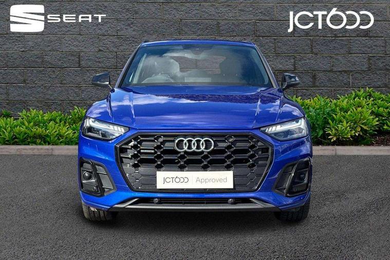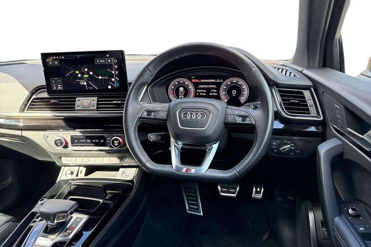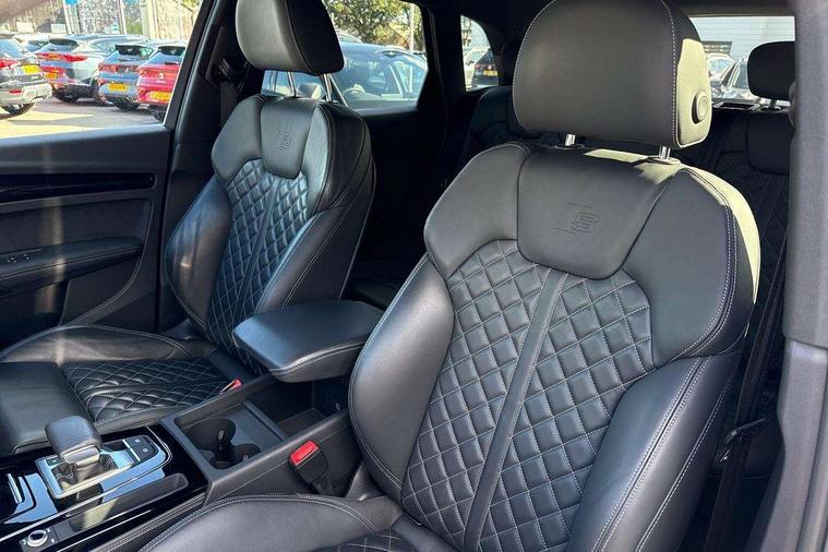 Audi connect safety and service (e-call), Audi connect with Amazon Alexa Integration, Audi drive select, Audi virtual cockpit plus with 12.3" screen and three different layout designs, Audi wireless smartphone interface, Automatic start-stop system with coasting functionality and efficiency programme, Bluetooth interface, Electro - mechanical power assisted steering, MMI navigation plus with 10.1" touch screen, Power tailgate, Reversing camera, Service interval indicator, Voice control system with Audi hotword activation "Hey Audi", Quattro on demand, S line sports suspension, 2 x USB charging port with aux input socket, DAB Digital radio, Acoustic windscreen, Audi beam with Audi rings logo, Audi matrix LED headlights with dynamic front and rear indicators, Audi rings at front and rear in black, Audi rings decal on rear doors, Auto dimming door mirrors, Auto dimming rear view mirror, Automatic headlights and windscreen wipers, Black door mirrors, Black roof rails, Body colour bumpers, Body colour underbody protection, Chrome plated exhaust trims, Daytime running lights, Door sills in Selenite silver, Electric adjustable/heated/folding door mirrors, Front air inlet surrounds in titanium black, Front and rear electric windows, Headlight washers, High gloss black B pillar trims and triangular rear door trim, High level LED brake light, Rear chrome trim strip below lights, Rear privacy glass and rear side windows, Rear side wing doors, Rear spoiler, Rear wiper, Roof bars, Without model and engine badging at rear, 3 rear headrests, 4 way electric lumbar support for driver and front passenger, 40:20:40 split folding 3 rear bench seat in 2nd row with rear centre armrest, Black cloth headlining, Comfort front centre armrest, Contrast stitching on seats, steering wheel and gear lever gaiter, Deluxe 3 zone electronic climate control, Electrically adjustable front seats, Fine Nappa leather upholstery with diamond pattern contrast stitching + front sport seats with S embossed logo, Front/rear floor mats, Gear lever in black leather, Heated front seats, Height adjustable front head restraints, Height/reach adjustable steering column, Illuminated door sill trims with S logo, ISOFIX child seat mounting and top tether, Luggage compartment cover, Rear seat bench plus, Removable luggage compartment floor, Single front passenger seat, Stainless steel pedals, Sunvisors with vanity mirrors, Black styling package - Q5 Edition 1, Extended interior upholstery pack - Q5, Extended LED Interior multi coloured Lighting Pack - Q5, 3 point seatbelts on all seats, 6 airbags - Driver, front passenger, curtain and side airbags, Electrically operated child locks on rear doors, Electromechanical parking brake, Electronic stabilisation control including ABS, ASR and EDL, Front and rear brake calipers painted in red, Front passenger airbag deactivation, Hill descent control, Hill hold assist, Multi collision brake assist, Pop-up bonnet for pedestrian protection, Pre sense city, Seat belt force limiter, Seatbelt monitoring, Tyre pressure warning, Warning triangle and first aid kit, Anti theft alarm, Anti-theft wheel bolts, Keyless Go access/ignition system, Remote central locking, Piano black finish inlay,