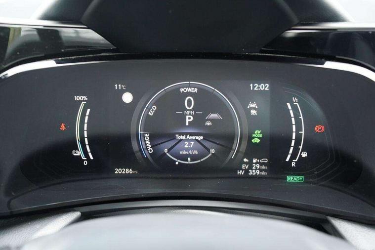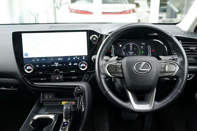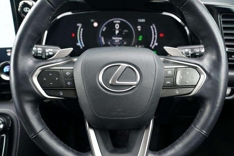 360 degree panoramic view monitor, 4 driving modes EV/Eco/Normal/Sport, 7" display in instrument binnacle, Blind spot monitoring with rear cross traffic alert, Bluetooth telephone connectivity, eCall emergency system, Electric speed sensitive power steering, Extended lexus safety+ system includes front cross traffic alert and lane change assist, Fully automated parking, Head up Display, Intelligent parking sensors - 4 front and 4 rear, Lane change flasher function, Lexus link connect - Cloud based navigation, cloud based voice assistant, always online, 14" HD touchscreen, embedded nav and faster CPU, Push button starter, Reversing camera with back guidelines, Service interval indicator, Tazuna cockpit with 7" improved meters display, 10" HUD and capacitive touch steering wheel switches, Wireless Apple CarPlay and wired Android Auto, Wireless Smartphone charger, 6.6 kW onboard charger, All Wheel Drive (AWD), Hybrid automatic transmission, Vehicle Dynamics Integrated Management (VDIM), Vehicle Stability Control (VSC), 10 speakers, 4 USB ports - 2 front, one USB C, 2 rear USB C, DAB Digital radio, 4 eye LED headlight with adaptive high beam, Automatic headlights, Digital rear view mirror, Double hidden exhaust pipes, Electric sunroof, Front and rear one touch power windows, with anti-jam protection, Headlight cleaners, Heated, auto-folding, auto-dimming outside mirrors with reverse tilt function and turn indicators, Illuminated door handles with puddle light, LED brake lights and rear lights with emergency brake signal, LED cornering lights, LED daytime running lights, LED front fog lights, LED Indicators, Power back door with kick sensor, Privacy glass, rear doors and tailgate, Rain sensor windscreen wipers, Rear side wing doors, Rear wiper, 12V accessory port centre console and luggage compartment, 2 cupholders in front centre console, 2 x fixed shopping bag hooks in boot, 2 x sun visors with vanity mirror and lamp, 3 seat bench in 2nd row, 4 way electrical lumbar adjustment for driver, 4 x tie down hooks in the boot, 60/40 split folding rear seat, 8 way driver/passenger electrically adjustable front seats, Adjustable rear seat backrest, Card holder installed in driver and passengers sun visors, Centre armrest with storage box, Door courtesy lights, Driver seat memory function, Dual zone climate control air conditioning system with humidity sensor, Front and rear head restraints, Front and rear textile carpet mats, Front passenger seat, Heated and ventilated front seats, Heated rear seats, Heated steering wheel, Leather gear lever, LED ambient lighting, LED interior illumination, Power adjustable leather steering wheel with paddle shifts, Rear centre armrest with 2 cupholders, Smooth leather upholstery, Whiplash Injury Lessening (WIL) feature (active headrest) for seats, 2 x Isofix child rear seat restraints, 3 point ELR front seatbelts with pretensioners, 3x3 point rear seat belts, ABS, Adjustable seat belt anchor points, Driver and front passenger 2 stage airbag, Driver/front passenger side airbags, Drivers knee airbag, E-Latch with safe exit assist, EBD + Brake Assist, ECB (Electronically Controlled Brake System), Electronic parking brake, Front and rear curtain shield airbags, Front center airbag, Front passenger seat cushion airbag, Hill assist control, Lexus safety system - dynamic radar cruise control, pre collision system day and night, lane tracing assist, road sign, OTA, Manual rear child locks, Passenger airbag cut-off device, Traction control, Tyre pressure warning, 2 x remote key fobs, Anti-theft system with alarm, intrusion sensor, glass breakage sensor, tilt sensor and engine immobiliser, Locking wheel nuts, Smart card key, Smart keyless entry, Speed sensitive auto door locking, Two motion door lock with double lock, VIN Window etching, Sumi blackwood inlay,