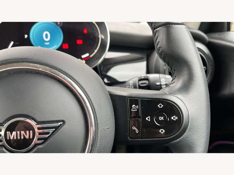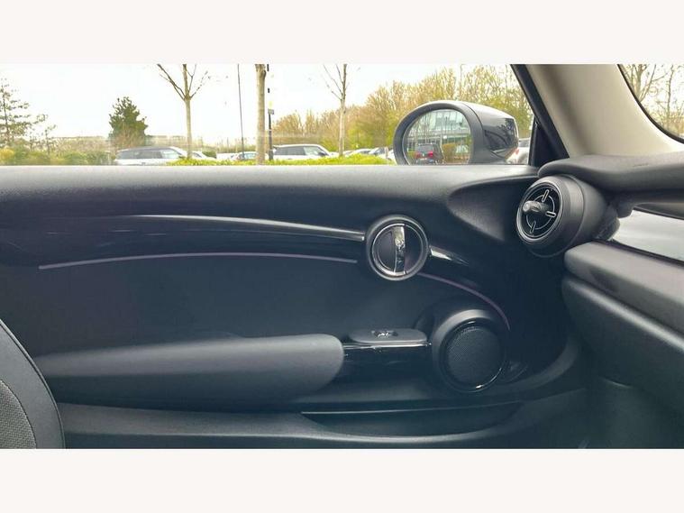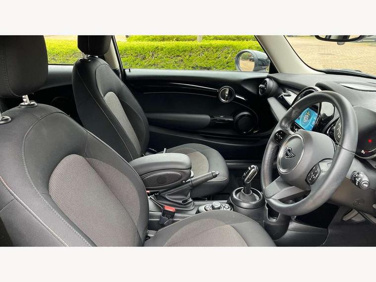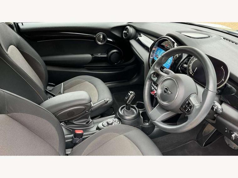 Apple CarPlay, Automatic start/stop function with brake energy recuperation, Compatible mobile phone bluetooth with audio streaming, Cruise control with brake assist, Electro-mechanical speed dependant steering assistance, Flexible car sharing preparation, Instrument cluster, Mini E-call, MINI TeleServices, On board computer, Service interval indicator, Double Vanos system, Fully variable valve control, High precision injection, Performance Control, Steptronic transmission with double clutch, 8.8" touchscreen with LED ring, FM tuner and DAB digital radio, 3rd brake light, Automatic headlight activation switch, Body colour fuel filler cap, Chrome border high gloss black slats radiator grille, Dynamic brake lights, Electric front windows, Exhaust tailpipe on left with chrome finisher, Heated rear window, Heated windscreen washer jets, LED headlight with closed ring and daytime driving lights, Metal door sill strips with MINI imprint, Model logo Cooper on right of tailgate, Rain sensor window wipers, Rear fog lights, Rear LED lights with union jack design, Rear window wiper, Side scuttle panel with integrated indicator, Sun/heat protection glass, White indicator lenses, 12V Accessory socket in centre console, 2 seat bench in 2nd row, 4 lashing eyes in luggage compartment, 60/40 split folding rear seat, Ambient lighting, Carbon black colour line - Knee roll and door armrest, Chrome interior highlights, Cupholders, Front and rear head restraints, Front and rear isofix with front passenger airbag deactivation, Front floor mats in velour, Glove compartment, Height and length steering column adjustment, Interior lighting with 12 different colours across the dashboard, underneath door bezel with illuminated laser-engraved design on central display, Leatherette gearshift lever and handbrake gaiters, LED reading lights, vanity mirror lights, front foot well light and spotlight on front seats, Manual air conditioning, Mechanical seat adjustment - forward/back & backrest for front seats and driver seat height adjust, Multifunction steering wheel, Passenger seat height adjuster, Satellite grey headlining including grab handles and clothes hooks, Single front passenger seat, Sport leather steering wheel with speed limiter and audio/communication controls, Storage compartments in doors, Sunvisors with vanity mirrors, 3 point seatbelts on all four seats, 6 Airbags - front, side, head and seat belt tensioners, Anti-lock braking system (ABS), DSC - Dynamic Stability Control, Front and rear disc brakes, Single tone fanfare horn, Tyre pressure monitoring system, Alarm system with tilt sensor, monitoring doors, bonnet interior and tailgate, Electronic vehicle immobiliser, Start/stop toggle with keyless go, Piano black interior trim, Tool kit, Tyre repair kit,
