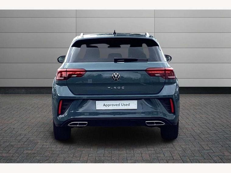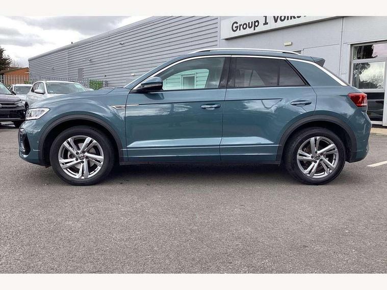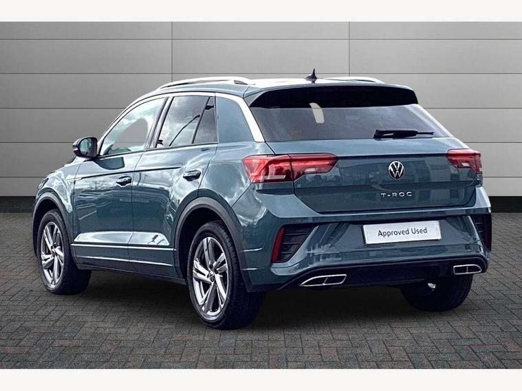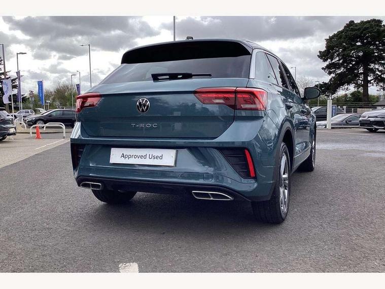 10.25" Digital cockpit pro, Advanced driver attention and drowsiness monitor, Bluetooth mobile phone interface, Emergency call service, Lane keeping system Lane Assist, Modified key software - reduce switch off time for key status change to Long no motion, Online services, Park assist including front and rear parking sensors, Service interval indicator, Tailgate/trunk lid release from outside, Think blue trainer driver tips and journey analysis, Warning sound and light for front seatbelts unfastened, Wireless app connect, Battery regeneration during braking, Start/stop function with battery regeneration, Diversity antenna for FM reception, Music playback - MP3, WMA and AAC files, Premium USB cable in choice of either Apple or Android smartphone compatibility, SD card slot, Simultaneous pairing of 2 compatible mobile devices, Title and cover art display, We Connect and We Connect Plus functionality, 3rd brake light, Auto dimming interior rear view mirror, Automatic hazard lights activation under emergency braking, Automatic headlight control with LED separate daytime running lights with coming/leaving home function, Electrically adjustable and heated door mirrors, Extended roof spoiler, Exterior mirrors aspherical on driver side, convex on front passenger side, External USB type C socket and charging sockets, Front windscreen wiper with intermittent wipe and 4 position delay, Heated rear window, LED rear combination lamps, LED rear number plate lights, Power windows with comfort operation and circuit breaker, R-Line design body coloured bumpers, Rain sensor, Rear exhaust tailpipe, Rear fog light on one side and reversing lights on both sides, Rear side wing doors, Rear wash/wipe with intermittent wipe setting, Remote electrically foldable door mirrors, puddle lights and reverse activated passenger's door mirror, 12V power socket in centre console, 3 rear head restraints, 3 seat bench in 2nd row, 4 load lashing points in luggage compartment, Air care climatronic air conditoning system with active combination filter and 2-zone temperature control, Black roof lining, Chrome plated radiator grille inserts, air vent surrounds and light switch surrounds, Door and side trim panel with leatherette insert, Front + rear carpet mats, Front centre armrest, Front cupholders x 2, Front footwell illumination, Front reading light, Front scuff plates with R Line logo, Front seat back storage pockets, Glove compartment door with light, Instrument lighting, white adjustable panel illumination, Interior ambient lighting and surround lighting, Interior light delay, Isofix child seat preparation, Leather gearshift handle, Load-through provision with cup holder when folded down ('Unsplit rear seat bench, split folding backrest, with centre armrest), Luggage compartment lighting, Single front passenger seat, Stainless steel pedals, Storage compartment in left and right luggage area, Storage compartment in rear doors, Storage compartments in driver and front passenger doors, Sunvisors with illuminated vanity mirrors, Variable boot floor, height adjustable and removable, Driver assistance pack without proactive passenger protection - T-Roc, 3 point height adj front seatbelts + pretensioners, 3 point seatbelts in outer rear with ECE label, ABS, Child locks on rear doors, City emergency braking and pedestrian monitoring, Driver and front passenger airbag with front passenger airbag deactivation, Driver and front passenger safety-optimised head restraints, Drivers seatbelt reminder, Electronic parking brake, Electronic Stability Control (ESC) inc EDL (Electronic Differential Lock) and ASR (Traction Control), Front and rear passengers curtain airbag system including front side airbags, Hill start assist, Predictive pedestrian protection, Rear disc brakes, Two tone horn, Tyre pressure loss indicator, Volkswagen roadside assistance, Anti-theft alarm system with interior monitoring, backup horn, and towing protection, Remote central locking with SAFELOCK, radio remote control with 2 remote control folding keys, Trims for alloy wheels,