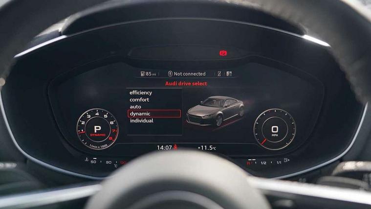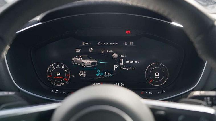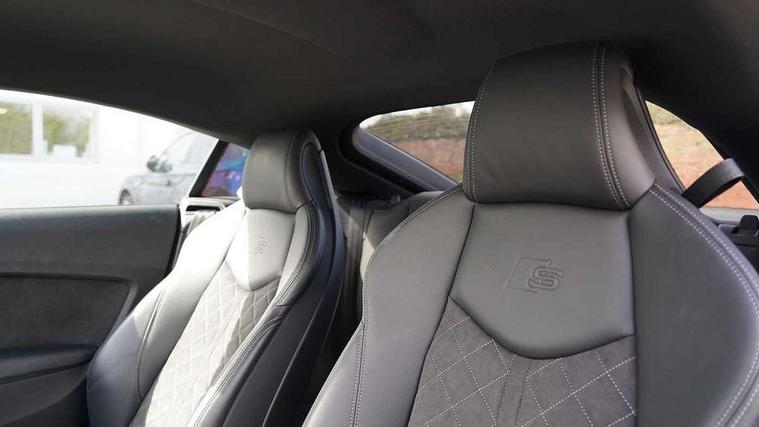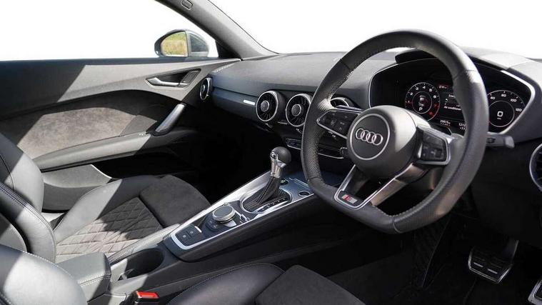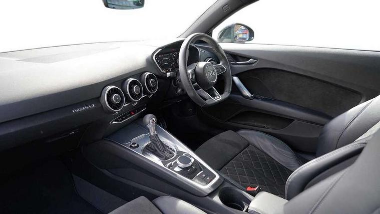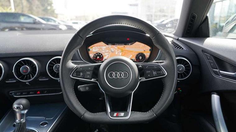Audi drive select with 4 Pre configured modes, Audi smartphone interface, Cruise control + speed limiter, MMI touch panel, Mobile phone preparation with bluetooth interface, Progressive power assisted steering, Service interval indicator, Start/Stop system with energy recuperation, TP memo, S line sports suspension, AM/FM radio, Bluetooth audio streaming, DAB Digital radio, MMI Radio with CD player and SD/XC card slot, Auto dimming rear view mirror, Auto headlight range control, Body colour bumpers, Body colour electrically adjustable and heated door mirrors with built in LED side indicators, Dynamic rear indicators, Electric folding door mirrors, Electric front windows, Front fog lights, Green tinted heat insulating glass, Headlight wash system, High gloss black radiator grille, LED daytime running lights, LED headlights with LED rear lights + dynamic rear indicators, Light and rain sensors, Retractable rear boot spoiler, S line badges on front wings, S Line front and rear bumpers, S line rear diffuser with platinum grey insert, S line side sills, Sunband for windscreen, 12V socket, 3 spoke flat bottomed high multi-function leather sport steering wheel with gearshift paddles, 4 way electric lumbar support for driver and front passenger, Black headlining, Door sill trims with S line logo, Extended aluminium look with stainless steel pedals, Front centre armrest, Front super sports seats, Heated front seats, Height adjustable driver's seat, Height adjustable front head restraints, Height/reach adjust steering wheel, ISOFIX child seat mounting for front passenger seat with airbag deactivation, Perforated leather gearknob in black, Rear head restraints, Rear top tether child seat ISOFIX attachment, S Line badge on steering wheel, Split folding rear seat, Non smoking pack - TT/TT RS, 3 point front seat belts, ABS, ASR traction control, Brake energy regeneration, Curtain airbags, Driver and front passenger airbag with front passenger airbag deactivation, EDL traction control, Electromechanical parking brake, ESP, First aid kit, Front side airbags, Head airbags, Hill hold assist, Seatbelt warning, Tyre pressure warning, Warning triangle, Anti theft alarm, Anti theft wheel bolts, Immobiliser, Keyless Go, Remote central locking, Matt brushed aluminium inlays, Tool kit, Tyre repair kit,