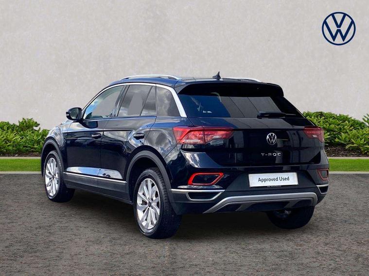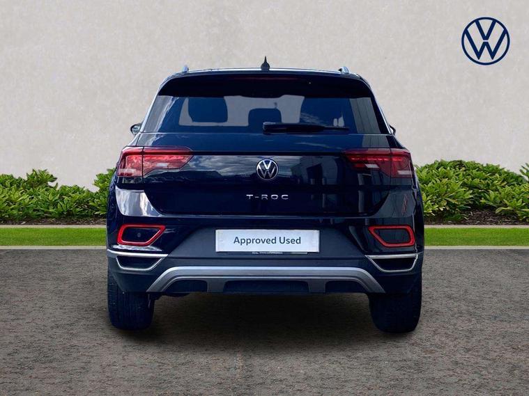 10.25" Digital cockpit pro, Bluetooth mobile phone interface, Driver alert system with fatigue detection, Driver tips and journey analysis, Dynamic road sign display, Emergency call service, Lane keeping system Lane Assist, Modified key software - reduce switch off time for key status change to Long no motion, Online services, Park assist including front and rear parking sensors, Power assisted speed sensitive steering, Service interval indicator, Tailgate/trunk lid release from outside, Think blue trainer driver tips and journey analysis, Warning sound and light for front seatbelts unfastened, Wireless app connect, Battery regeneration during braking, Front shock absorption, Rear shock absorption chassis with increased ride height, Start/stop function with battery regeneration, Diversity antenna for FM reception, Front and rear 6 speakers, Music playback - MP3, WMA and AAC files, Premium USB cable in choice of either Apple or Android smartphone compatibility, SD card slot, Simultaneous pairing of 2 compatible mobile devices, Title and cover art display, We Connect and We Connect Plus functionality, 3rd brake light, Auto dimming interior rear view mirror, Automatic hazard lights activation under emergency braking, Automatic headlight control with LED separate daytime running lights with coming/leaving home function, Body colour sports bumpers with silver metallic underbody fascia, Dynamic headlight range control with self adjusting whilst driving, Extended roof spoiler, Exterior mirrors aspherical on driver side, convex on front passenger side, External USB type C socket and charging sockets, Front windscreen wiper with intermittent wipe and 4 position delay, Heated rear window, LED Plus headlamps, LED rear combination lamps, LED rear number plate lights, LED tail lamp rear comination lamps, Light mode for poor weather, rain, fog or snow, Power windows with comfort operation and circuit breaker, Rain sensor, Rear exhaust tailpipe, Rear fog light on one side and reversing lights on both sides, Rear side wing doors, Rear wash/wipe with intermittent wipe setting, Remote electrically foldable door mirrors, puddle lights and reverse activated passenger's door mirror, 12V power socket in centre console, 3 rear head restraints, 3 seat bench in 2nd row, 4 load lashing points in luggage compartment, Air care climatronic air conditoning system with active combination filter and 2-zone temperature control, Chrome plated radiator grille inserts, air vent surrounds and light switch surrounds, Door and side trim panel with leatherette insert, Drawer under drivers seat, Front + rear carpet mats, Front centre armrest, Front comfort sports seats, Front cupholders x 2, Front footwell illumination, Instrument lighting, white adjustable panel illumination, Interior ambient lighting and surround lighting, Interior light delay, Isofix child seat preparation, Leather gearshift handle, LED interior light with switch off delay/dimmer and 2 front/rear LED reading lights, Load-through provision with cup holder when folded down ('Unsplit rear seat bench, split folding backrest, with centre armrest), Luggage compartment lighting, Non-folding front passenger seat backrest, Single front passenger seat, Storage compartment in left and right luggage area, Storage compartment in rear doors, Storage compartments in driver and front passenger doors, Sunvisors with illuminated vanity mirrors, Variable boot floor, height adjustable and removable, Driver assistance pack without proactive passenger protection - T-Roc, 3 point height adj front seatbelts + pretensioners, 3 point seatbelts in outer rear with ECE label, ABS, Child locks on rear doors, Driver and front passenger airbag with front passenger airbag deactivation, Driver and front passenger safety-optimised head restraints, Drivers seatbelt reminder, Electronic parking brake, Electronic Stability Control (ESC) inc EDL (Electronic Differential Lock) and ASR (Traction Control), Front and rear passengers curtain airbag system including front side airbags, Front assist with city emergency braking and pedestrian monitoring, Front disc brakes, Front seat side impact airbags, Predictive pedestrian protection, Rear disc brakes, Single tone horn, Tyre pressure loss indicator, Volkswagen roadside assistance, Alarm with interior protection, Anti-theft alarm system with interior monitoring, backup horn, and towing protection, Remote central locking with SAFELOCK, radio remote control with 2 remote control folding keys, Trims for alloy wheels,