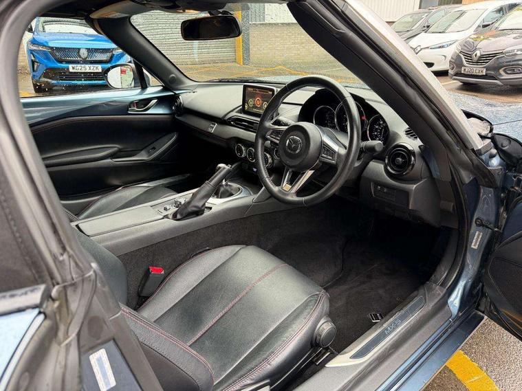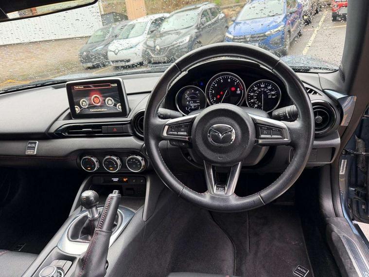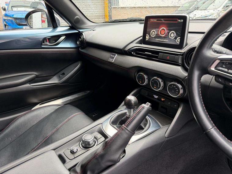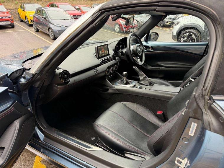 7" touchscreen with multimedia commander, Cruise control + speed limiter, Engine start/stop button, Integrated bluetooth with steering wheel mounted controls, PAS, Rear parking sensor, Remote boot release, Satellite navigation system, Trip computer, Water temperature gauge, 6 speakers, Auxiliary input socket, DAB Digital radio, MP3 compatible radio/single CD player, USB/iPod connection, Automatic headlamp levelling, Body colour bumpers, Coming/leaving home lighting function, Dual exhaust pipes, Dusk sensitive headlamps, Electric front windows/one touch facility, Electrically heated door mirrors, Front intermittent wipers, LED daytime running lights, LED Headlights, Mica paint, Premium cloth soft top with integrated heated glass window and soft top cover, Rain sensing front wipers, Silver door mirrors, 12V socket, Black leather trim with red stitching, Body coloured inner door trims, Centre console storage box, Climate control air conditioning, Front centre armrest, Front head restraints, Heated front seats, Height adjustable front seats, ISOFIX front passenger seat child seat compliance, Leather gear knob, Leather handbrake lever, Leather steering wheel, Lockable rear storage box, Silver cup holders, Sports seats, Tilt/slide reclining front seats, Unique floor mats, Windblocker, 3 point ELR front seatbelts with pretensioners, ABS+Electronic Brake force Distribution, DSTC-Dynamic Stability and Traction Control, Dual front airbags, Fasten seatbelt reminder, Hill hold assist, Manual passenger airbag deactivation function, Side airbags, Tyre pressure monitor, Alarm with interior movement sensor, Immobiliser, Remote central door locking, Remote keyless entry, Superlocking, 16" Silver alloy wheels, Tyre puncture repair kit,