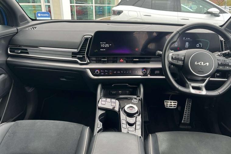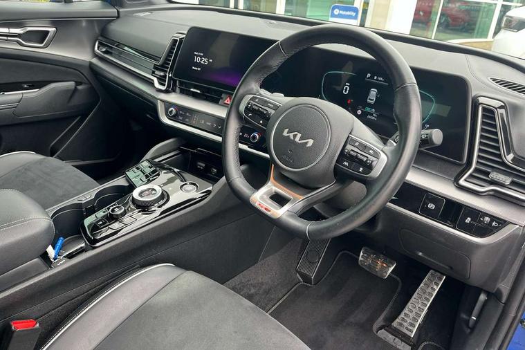 12.3" Display with navigation, 4.2" supervision colour cluster display, Apple car play/Android Auto with voice control, Drive mode selector, E-call, Forward collision avoidance assist (FCA) - city/pedestrian/cyclist/junction covering, Front and rear parking sensors, Highway Driving Assist (HDA), Intelligent speed limit assist, Kia Connect (UVO), Lane Following Assist (LFA), Lane keep assist, Low washer fluid warning, Rear view monitor, Reversing camera system integrated into centre fascia screen, Smart cruise control with stop and go functionality, Speed sensitive power steering, Trip computer, Windscreen washer level indicator, Intelligent Stop and Go, 6 speaker audio system, Bluetooth audio streaming, DAB Radio with MP3, Rear USB port, Steering wheel mounted audio controls, USB C type charging ports on centre console, USB C type charging ports on side of front seats, USB port for connection of a media device, All round electric windows with drivers and front passenger auto up/down function, Automatic headlight control system, Automatic window defogger, Backlite glass heated with timer, Body colour and black bumper with silver accents, Body colour exterior door handles, Body colour radiator upper garnish and door garnish, Electrically adjustable/heated/folding door mirrors with LED indicators, Front and rear skid plate - chrome, Gloss black door mirrors, Gloss black radiator grille, Gloss black side sill and wheel arch body mouldings, Glossy black roof rack, High beam assist, Interior electrochromic mirror, LED daytime running lights, LED front fog lamps, LED headlamps (low and high beam - MFR type), LED High mounted stop light, LED rear combination lamp, Rain sensing wipers with aero blades, Rear fog lamp, Rear privacy glass, Rear side wing doors, Rear spoiler, Rear wiper, Satin finished beltline, Silver coloured inserts to bumpers, Tinted rear glass, Trailer stability assist, 12V power socket in front centre fascia and luggage compartment, 2nd row personal lamps, 3 seat bench in 2nd row, 3 x passenger assist grips, 40/20/40 split folding rear seat, All-round height adjustable headrests, Black headlining, Centre console storage box, Cupholders in rear armrest, D-Shaped sports leather steering wheel and perforated inserts with GT-Line logo, Door courtesy lamps, Drink holder at centre armrest, Driver and front passenger side sunvisors with illuminated vanity mirrors, Driver's seat manual height adjust, Drivers seat power lumbar support, Front and rear door storage, Front seat and rear pockets, Front/rear centre armrests, Gear shift indicator, Glovebox illumination, Heated front seats, Heated steering wheel, Interior door lock/unlock function, ISOFIX Child seat top tethers and anchor fixings outer rear seats, Luggage area light, Luggage area load cover, Luggage net hooks, Metal paint interior door handles, Overhead console lamp, Paddle shift controls, Rear cabin light, Rear coat hooks, Single front passenger seat, Sports pedals, Suede leather upholstery, Three zone climate control, Tilt/telescopic adjustable steering wheel, Ventilation ducts to rear compartment, Active front headrests, All round 3-point seatbelts, Anti-lock braking system (ABS), Dual front side airbags, Dual horn, Electronic parking brake, Electronic stability control with downhill brake control, Front passenger airbag cut-off switch, Front seatbelt pretensioners + load limiters, Height adjustable front seatbelts, Hill start assist control (HAC), Impact sensing auto door unlocking, Multi collision brake assist, Rear door child safety locks, Rear seat alert system, Traction control, Twin curtain airbags, Twin front airbags, Tyre pressure monitoring system, Advanced anti-theft system including immobiliser and alarm, Door deadlocks, Engine Start/Stop Button with Smart Entry System, Locking wheel nuts, Speed sensitive auto door locking, Visible vehicle identification number, Aluminium pattern finish centre fascia and door garnish, 19" GT-Line alloy wheels, Tyre mobility kit,