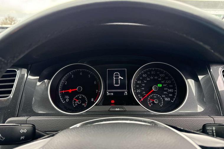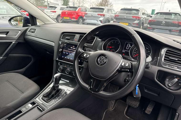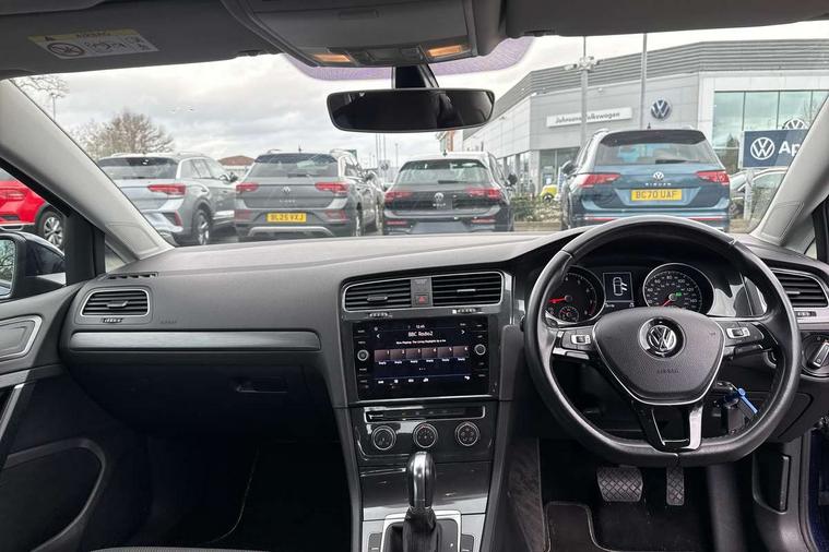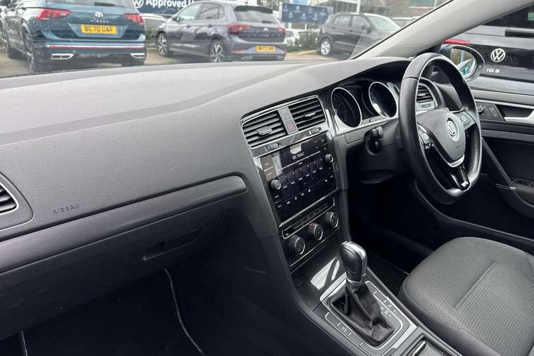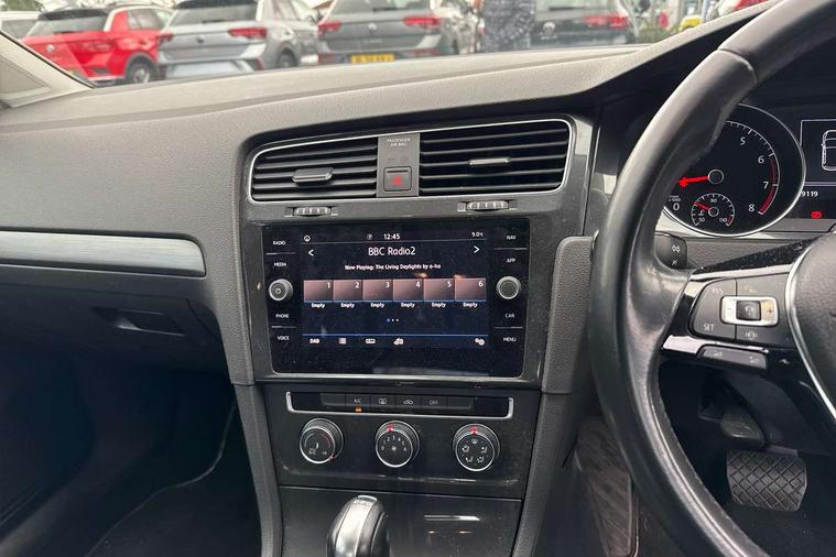 App-Connect, 'Lights On' Reminder warning buzzer, 8" colour touch screen, ACC - Adaptive cruise control with front assist, forward collision warning, distance monitoring, city emergency brake and speed limiter, Bluetooth telephone and audio connection for compatible devices, Brake pad wear indicator warning light, Drive mode selector, Driver alert system, Driver profile selection, Front assist, radar sensor controlled distance monitor, city emergency braking + predictive pedestrian protection, Front assistant collision mitigation, Instrument cluster in white, Misfuelling protection device, Multifunction computer with visual gear change recommendation for fuel consumption, Power assisted speed sensitive electro-mechanical steering, Speedo, rev counter, electronic odometer, trip, service interval display, exterior temperature and fuel gauge, Stop/start system, Ultrasonic front and rear optical and audible parking sensors, Warning buzzer and light for front seatbelts unfastened, Battery regeneration during braking, Diesel particulate filter, XDS electronic differential lock, 8 speakers, Composition media system, DAB Digital radio receiver, MP3/WMA compatability, SMS Functionality, USB and SD card connectivity, Automatic coming/leaving home lighting function, Automatic dimming rear view mirror/rain sensor, Black front air intake and radiator grille with chrome insert, Black rear diffuser, Body colour bumpers, Body colour door handles, Body colour door mirrors with integrated indicators, Electric front windows, Electric rear windows, Electrically adjustable and heated door mirrors, Glavanised body, Heated rear windscreen, High level 3rd brake light incorporating LED Technology, Range adjustable headlights via infotainment system with LED daytime running lights, Rear number plate lights incorporating LED technology, Rear window aerial, Rear window wash/wipe with intermittent wipe, Reflectors in all doors, Remote electrically foldable door mirrors, door mirror puddle lights and reverse activated kerb-view adjustment on passengers door mirror, Tailgate with integrated rear roof spoiler, Windscreen wipers/ intermittent wipe + 4 position delay, 12V socket in luggage compartment, 3 rear headrests, 4 load lashing points in luggage compartment, 60/40 split folding rear seat backrest, Bag hook in luggage compartment x 2, Cooled glovebox, Dust/pollen filter, Front and rear reading lights incorporating LED technology, Front centre armrest with storage compartment and two rear air vents, Front seat back storage pockets, Grab handles front x 2, rear x 2 with integrated coat hooks, Height and reach adjustable steering wheel, Illuminated vanity mirrors, Instrument lighting white adjustable panel illumination, Interior light delay, Isofix preparation for 2 rear child seats, Load through provision with rear centre armrest and cupholders x2, Luggage compartment light, Multifunction leather steering wheel with leather trimmed gear knob, Overhead storage box, Pearl grey headlining, Storage box in luggage compartment, Storage compartment in roof console with cover, Storage compartments in front doors, Storage compartments in rear doors, Stowable luggage compartment cover, Sun visors, Three spoke multi-function leather trimmed steering wheel and gearknob, Variable boot floor, height adjustable and removable, Mirror pack - Golf, 3 rear three point seatbelts, Airbags - Driver's and front passenger's, curtain airbag, Driver's knee, front side impact and passenger's airbag deactivation switch, Anti-lock Braking System (ABS) with Hydraulic Brake Assist (HBA), Automatic post collision braking system, Child locks on rear doors, Driver/Passenger optimised head restraints, Electronic parking brake with auto hold, Electronic stability control (ESC) including Electronic differential lock (EDL) and ASR (Traction control) with deactivation via infotainment system, Pre crash preventive occupant protection, Three point height adjustable front seatbelts with tensioners, Tyre pressure loss indicator, Alarm with interior protection, Electronic engine immobiliser, Remote central locking with 2 remote folding keys, Brushed dark silver decorative inserts in dash and door panels, Chrome plated air vent surround, Chrome-plated light switch surround, Polar night black centre console, Steel space saver spare wheel,